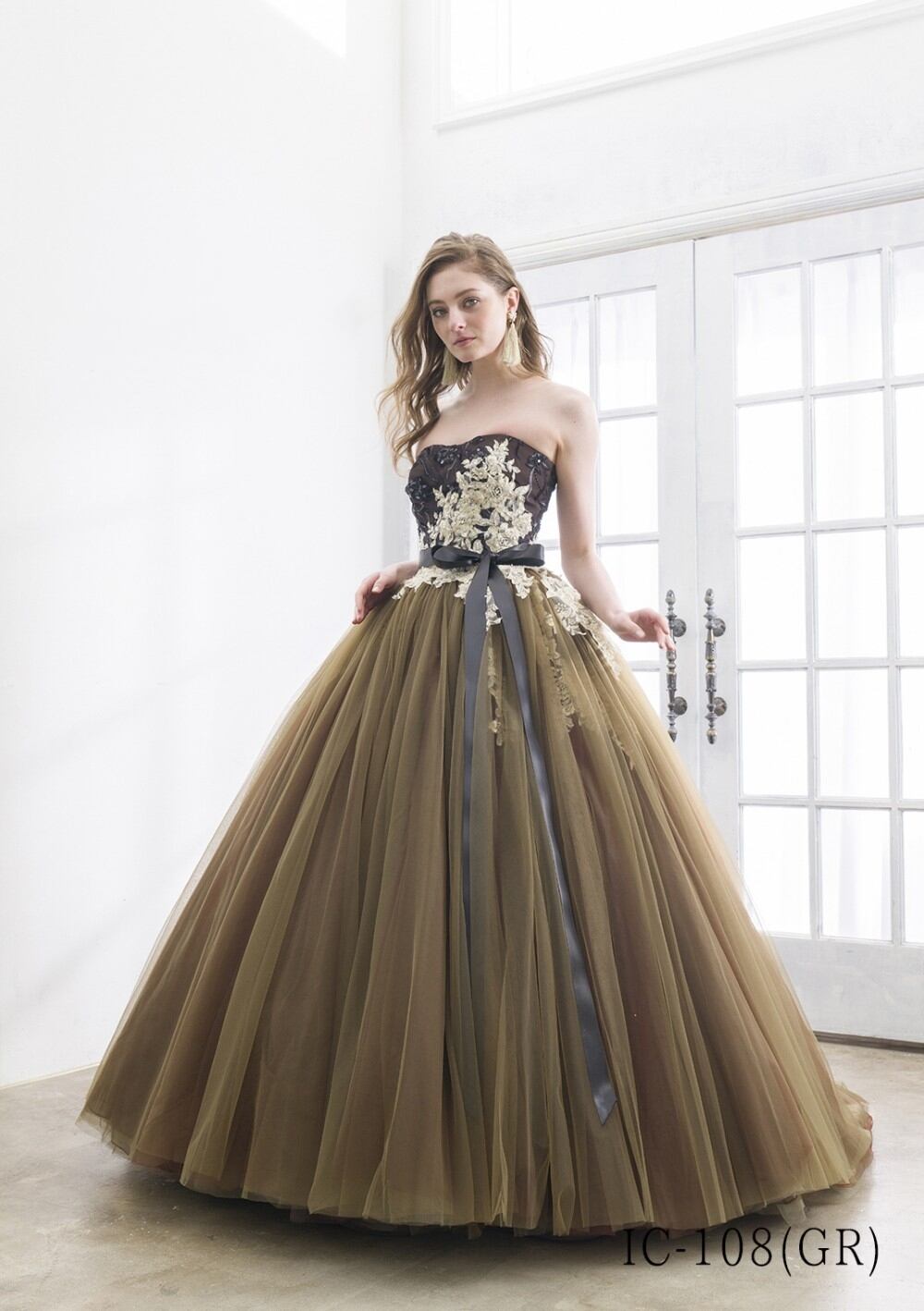 高品質!送料無料!カラードレス カーキ色 ソフトチュール 花モチーフ かわいい エレガント ハンドメイド パーティードレス トレーン オーダーメイド 花嫁 結婚式/前撮り | David1021k Dress(ダヴィドレス)