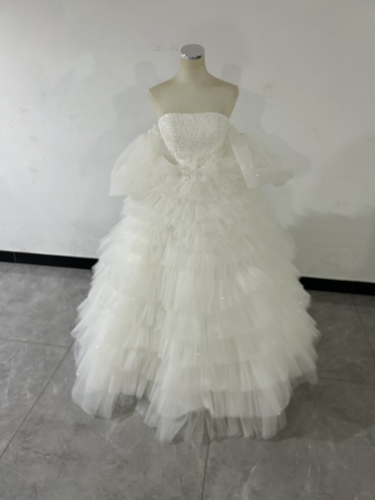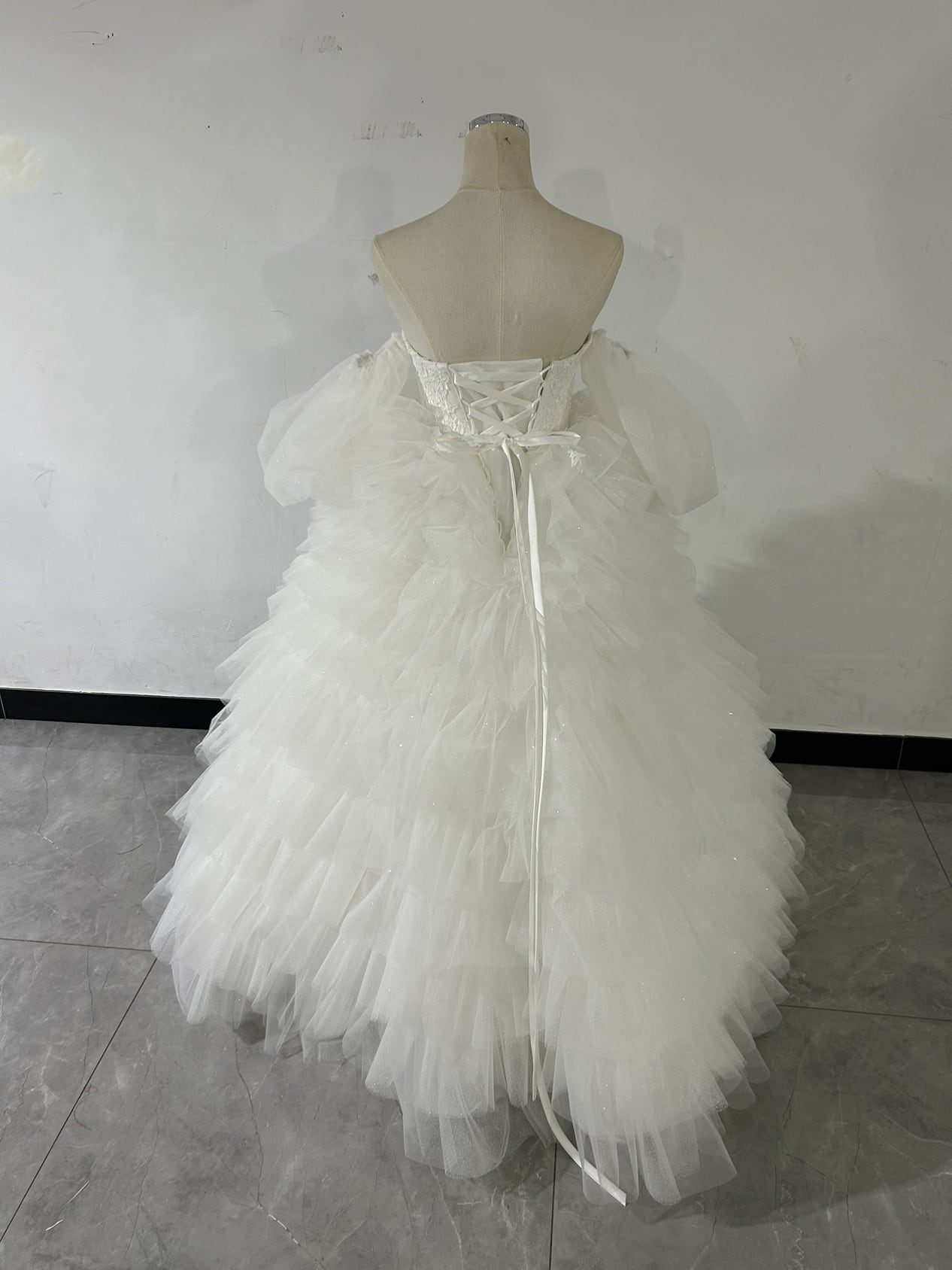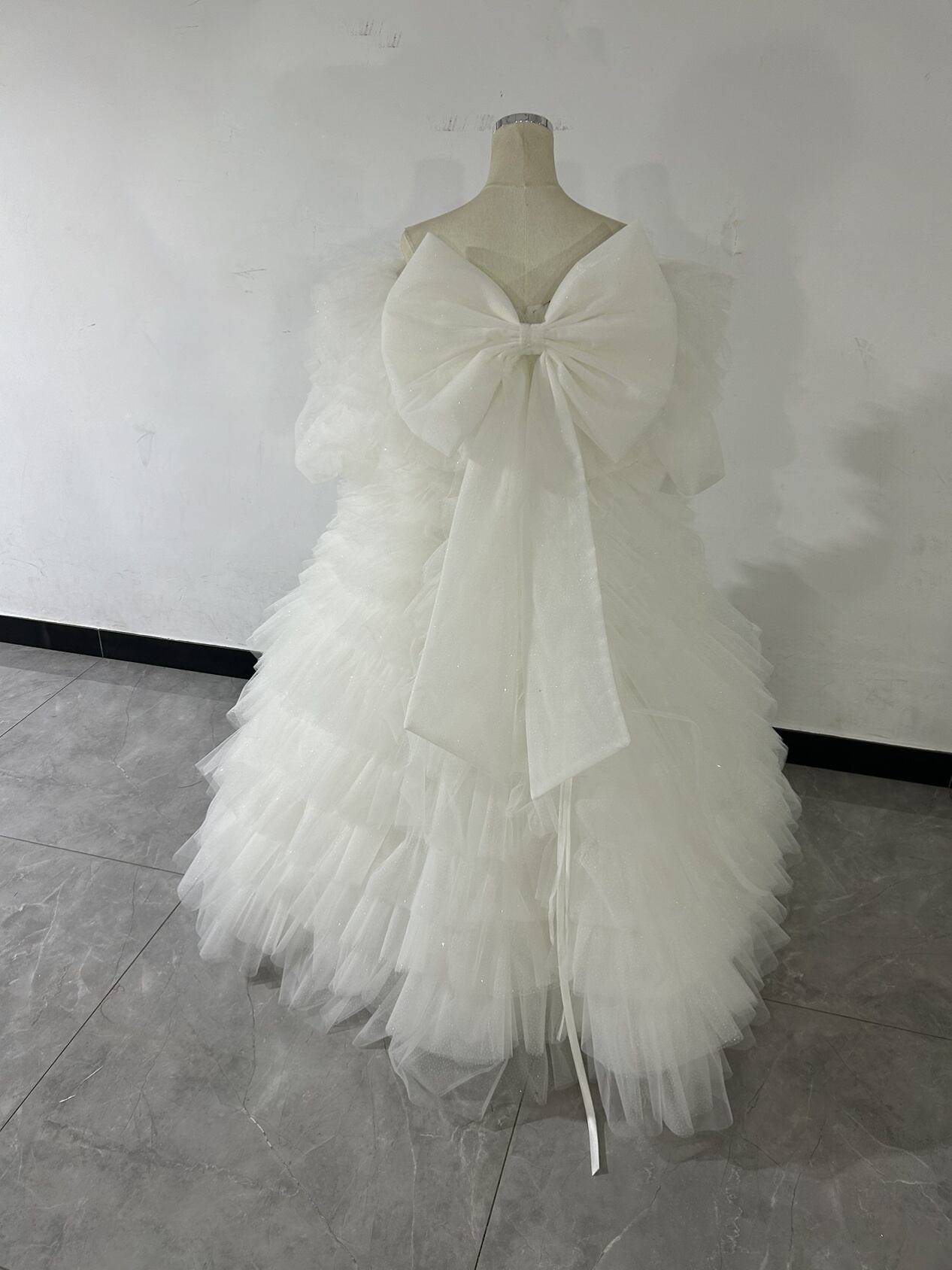 3waysもこもこウエディングドレス ソフトチュール バックリボン 柔らかく重ねたチュールスカート 花嫁/結婚式/前撮り