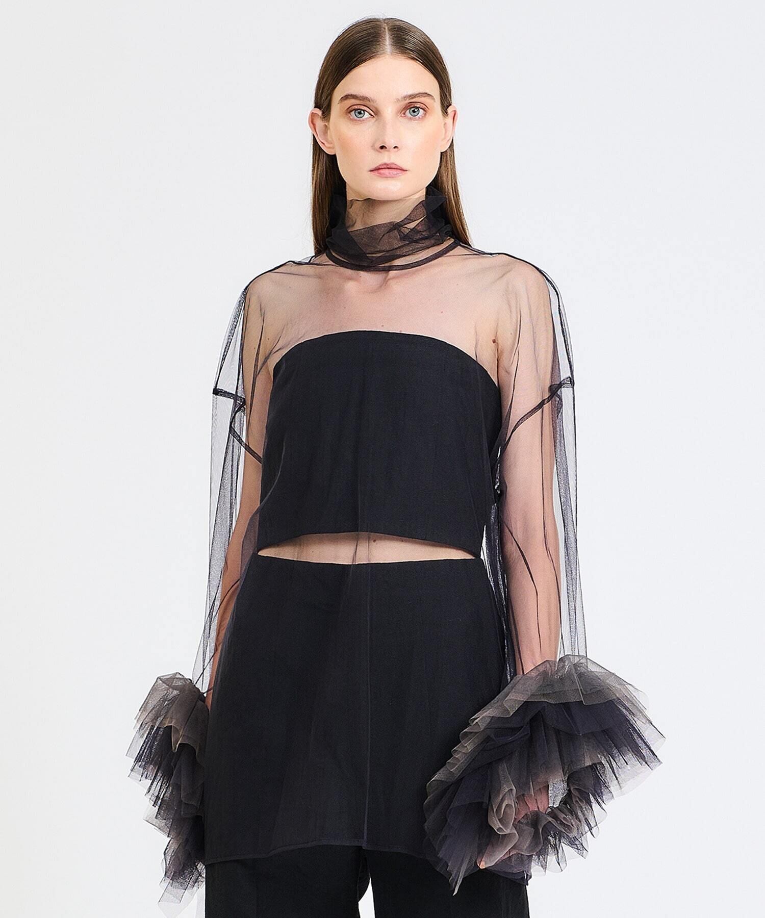 送料無料!ソフトチュールボレロ トップス ブラック/黒 色直し ドレスアレンジ お色直し ウエディングドレス