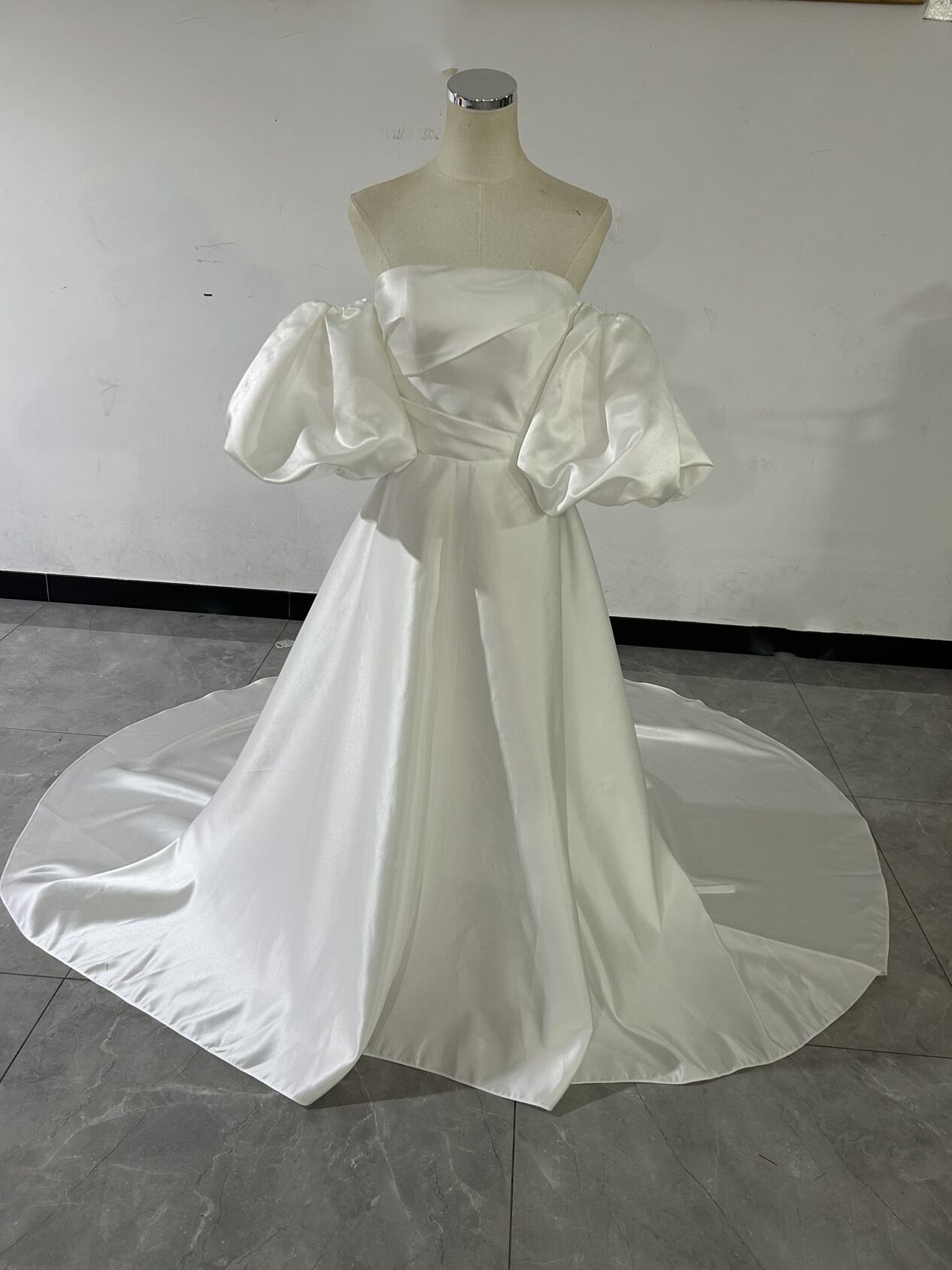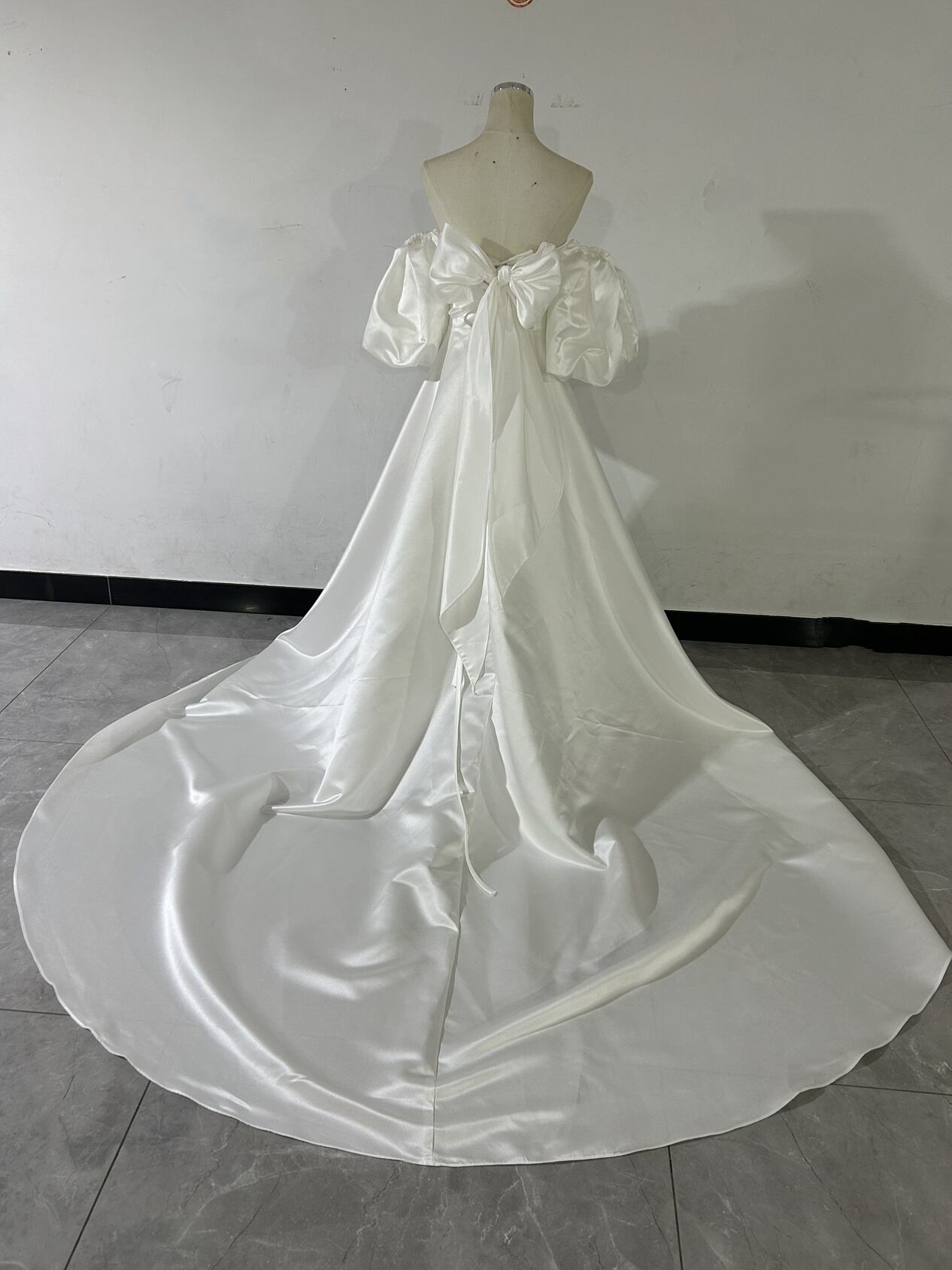 送料無料!人気上昇 オフショル ホワイト パーティードレス 二次会 前撮り 挙式 パフスリーブ