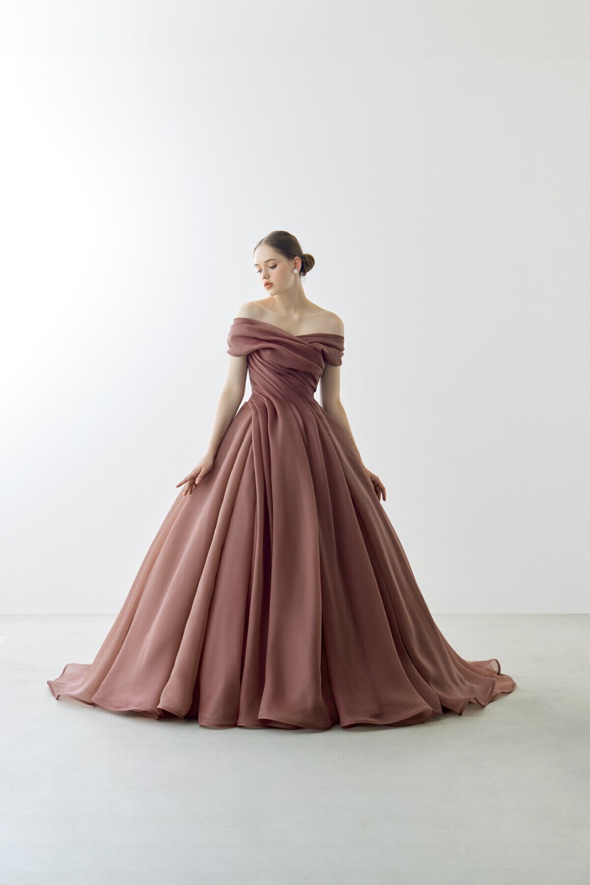 送料無料!2WAYカラードレス あずき色 オーバードレス オフショル ベルト 画像通りの仕上がり Aライン 高級サテン 優雅なシルエット トレーン ハンドメイド 花嫁/挙式/前撮り/結婚式/披露宴