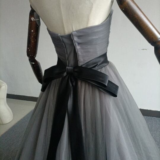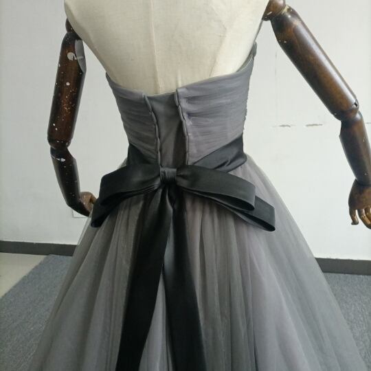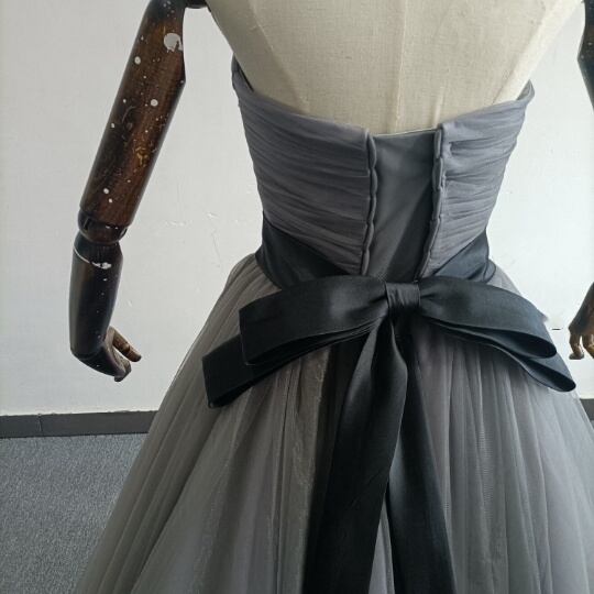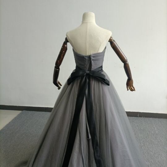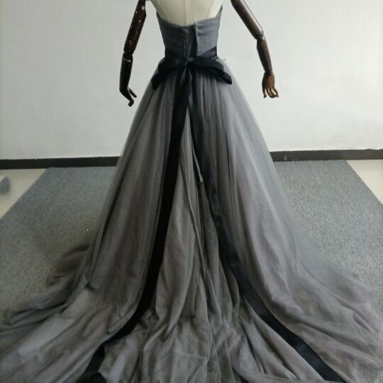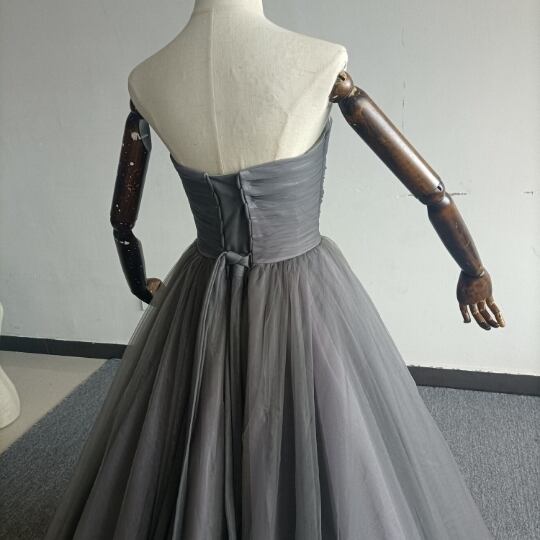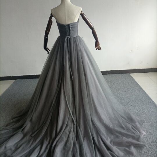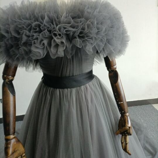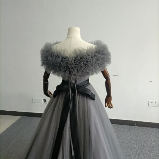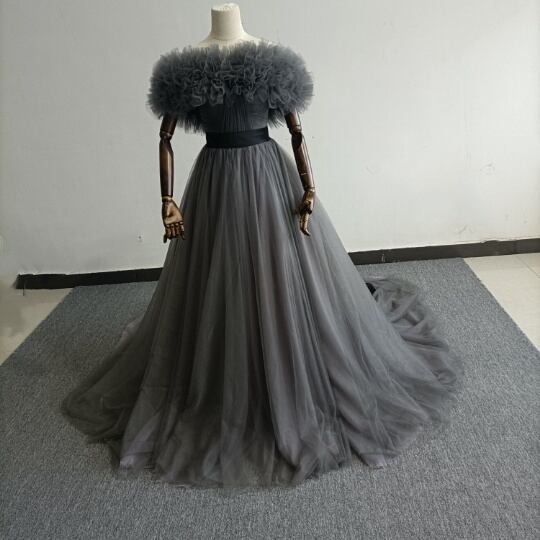 グレーカラードレス オフショルダーの2WAYドレス ロングトレーン パーティードレス お色直し