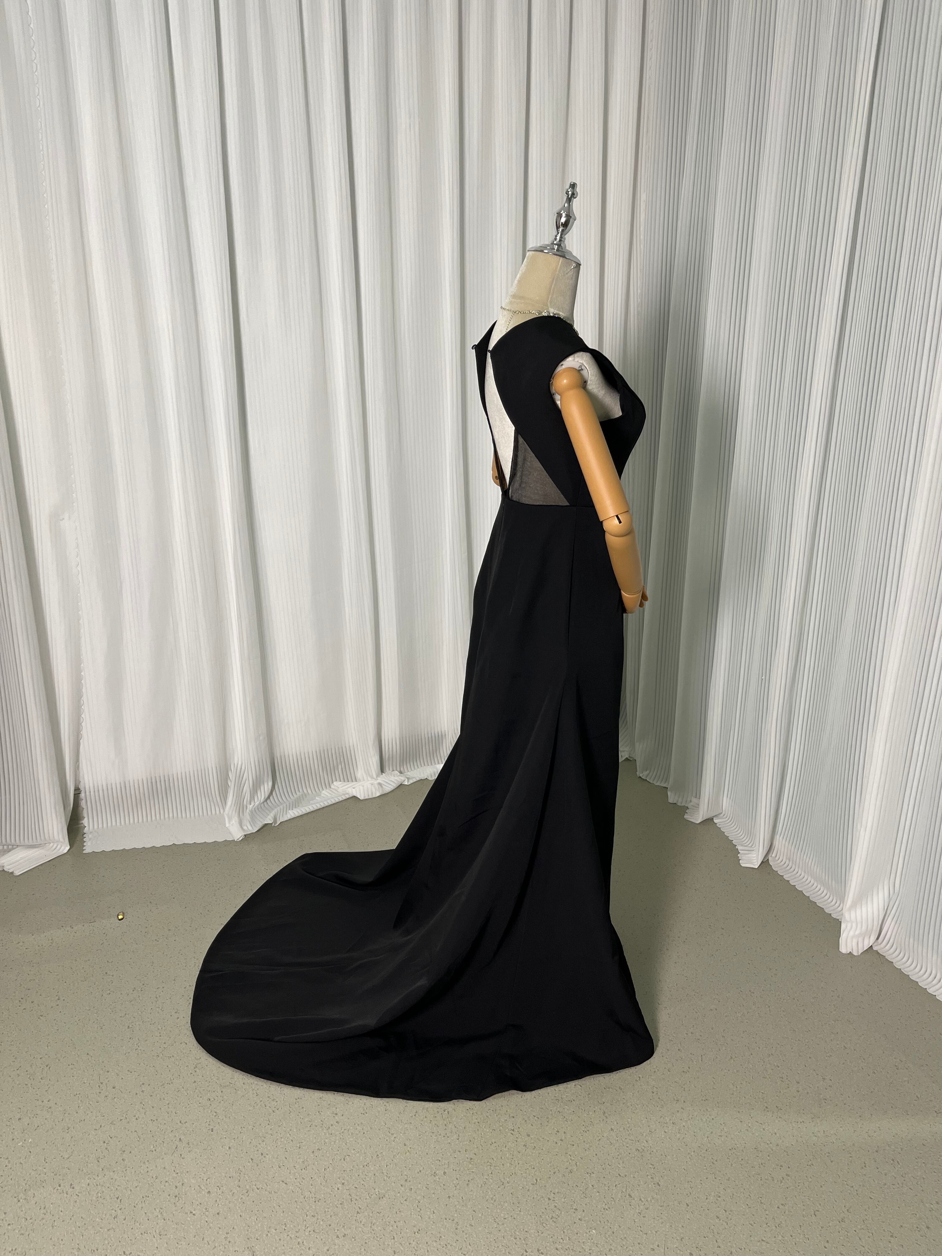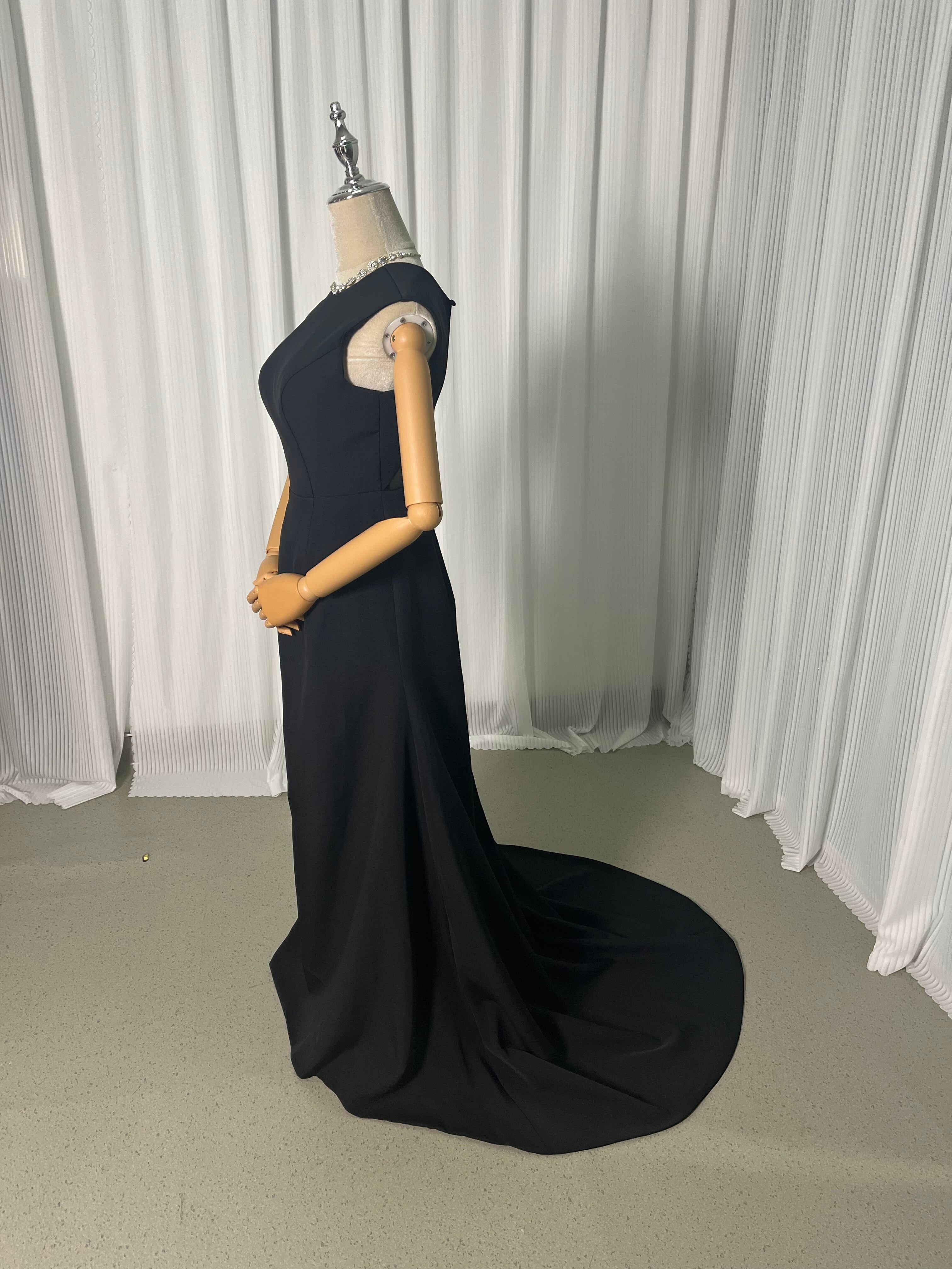 送料無料!ノースリーブ カラードレス 黒 オーバードレス ン 優雅なシルエット トレーン ハンドメイド 花嫁/挙式/前撮り/結婚式/披露宴