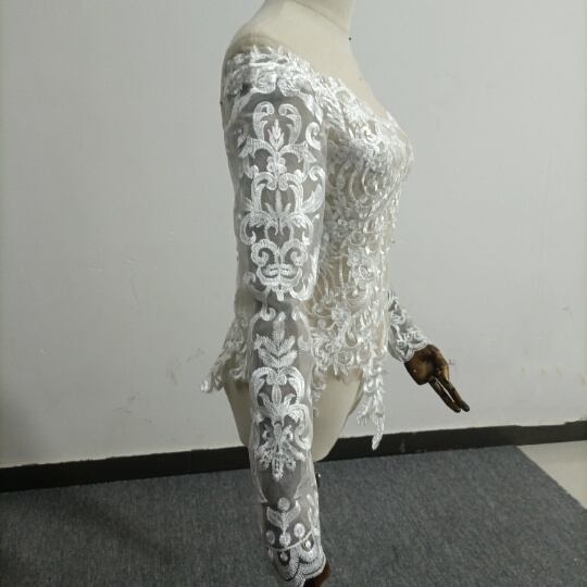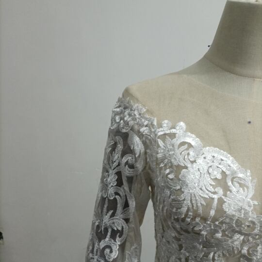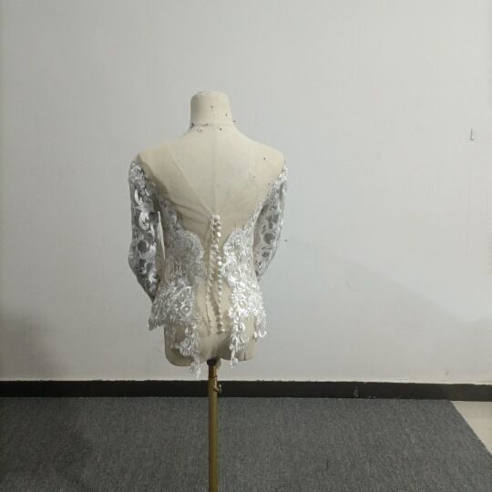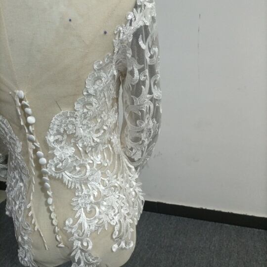高品質! ウエディングドレス中のボレロ 高級レース 背中見せ 長袖 結婚式 二次会 前撮り