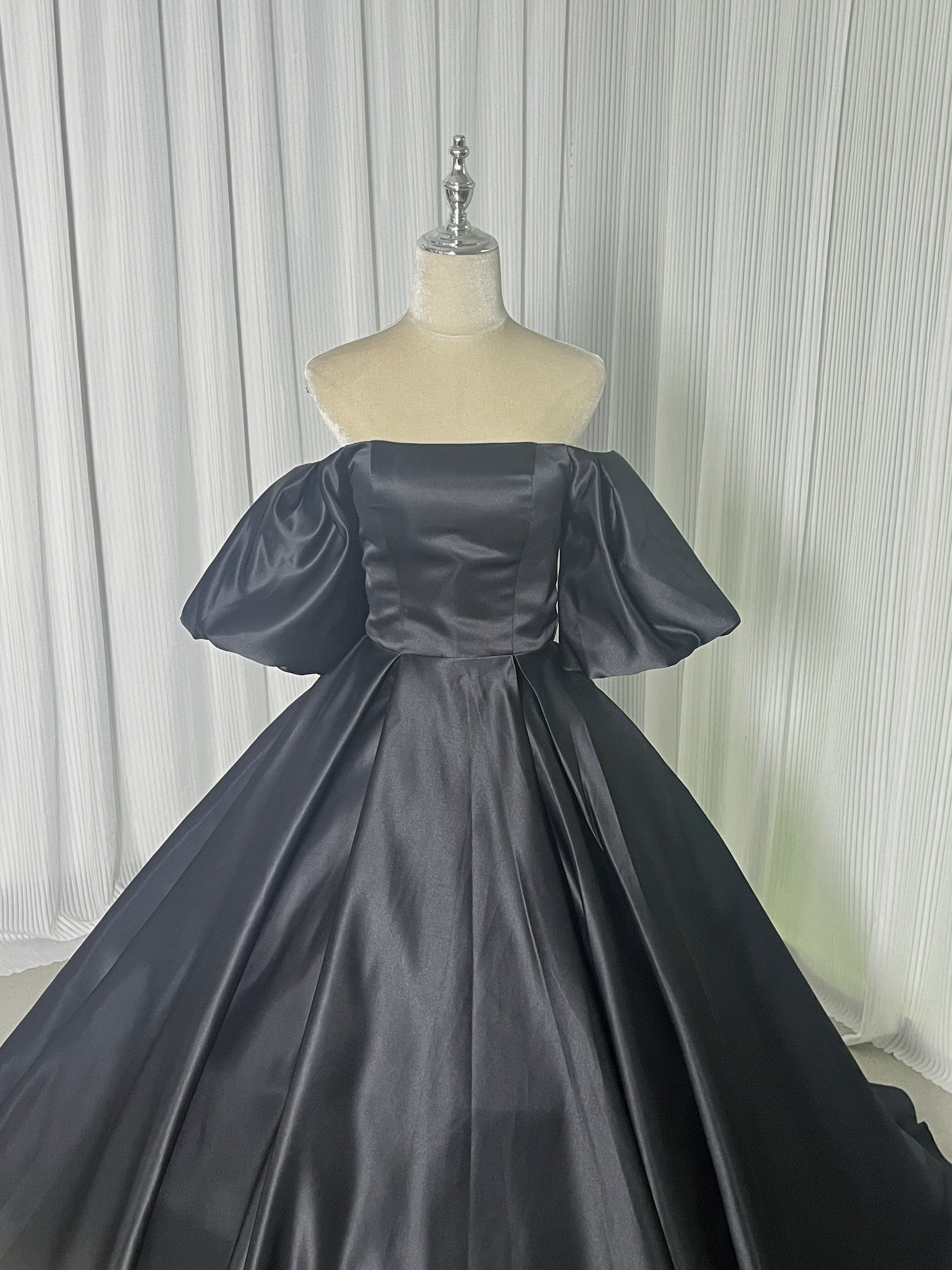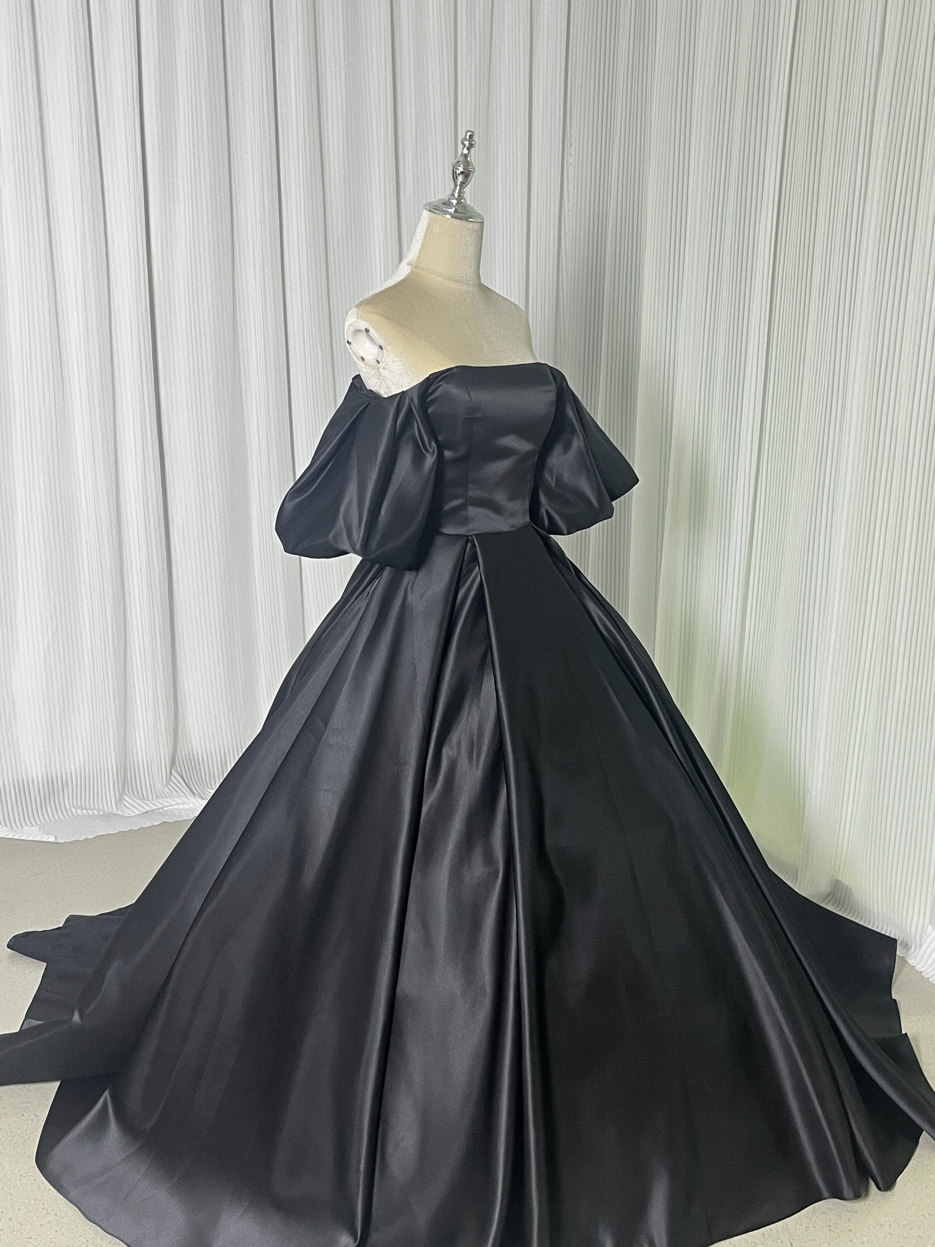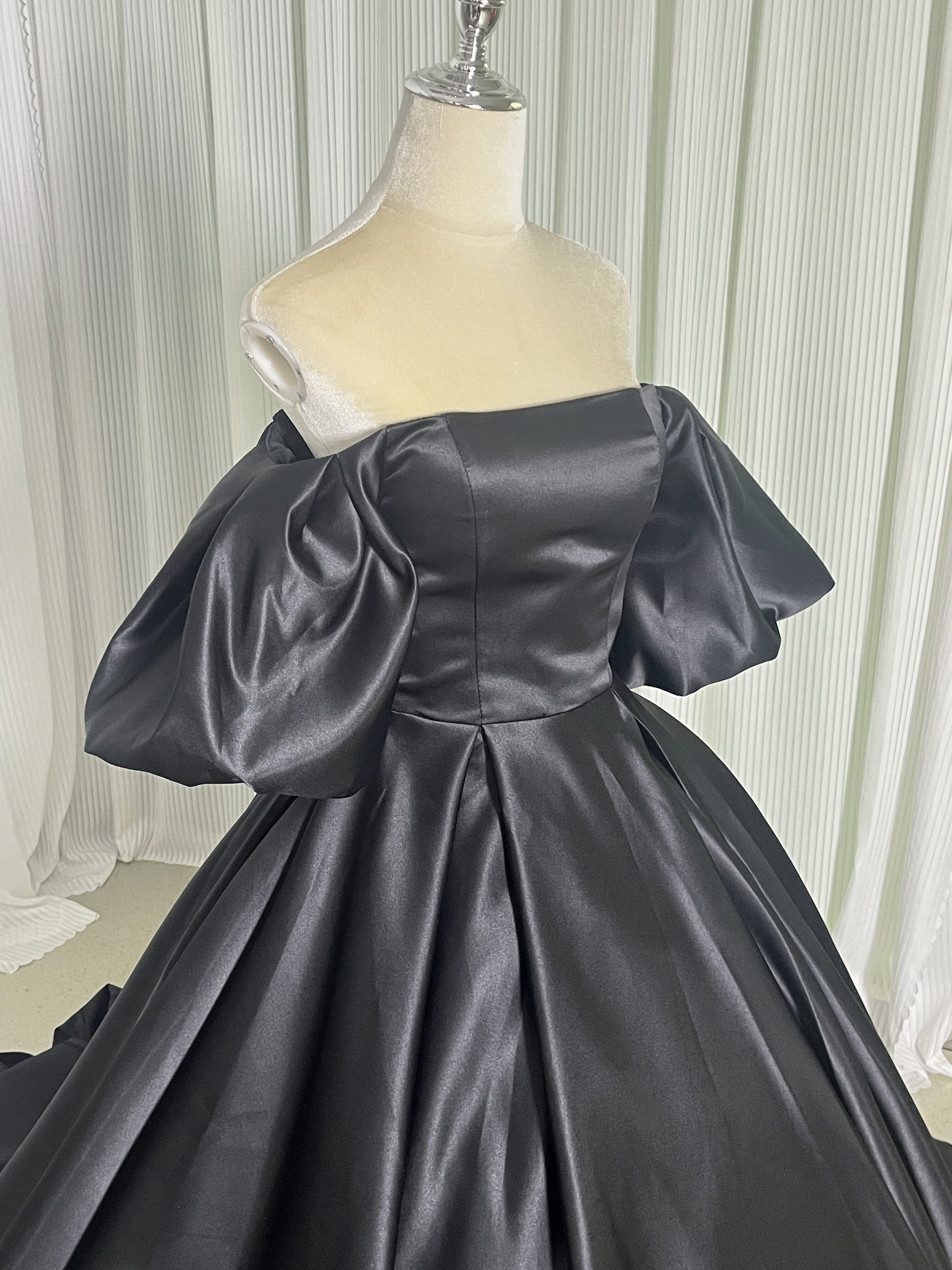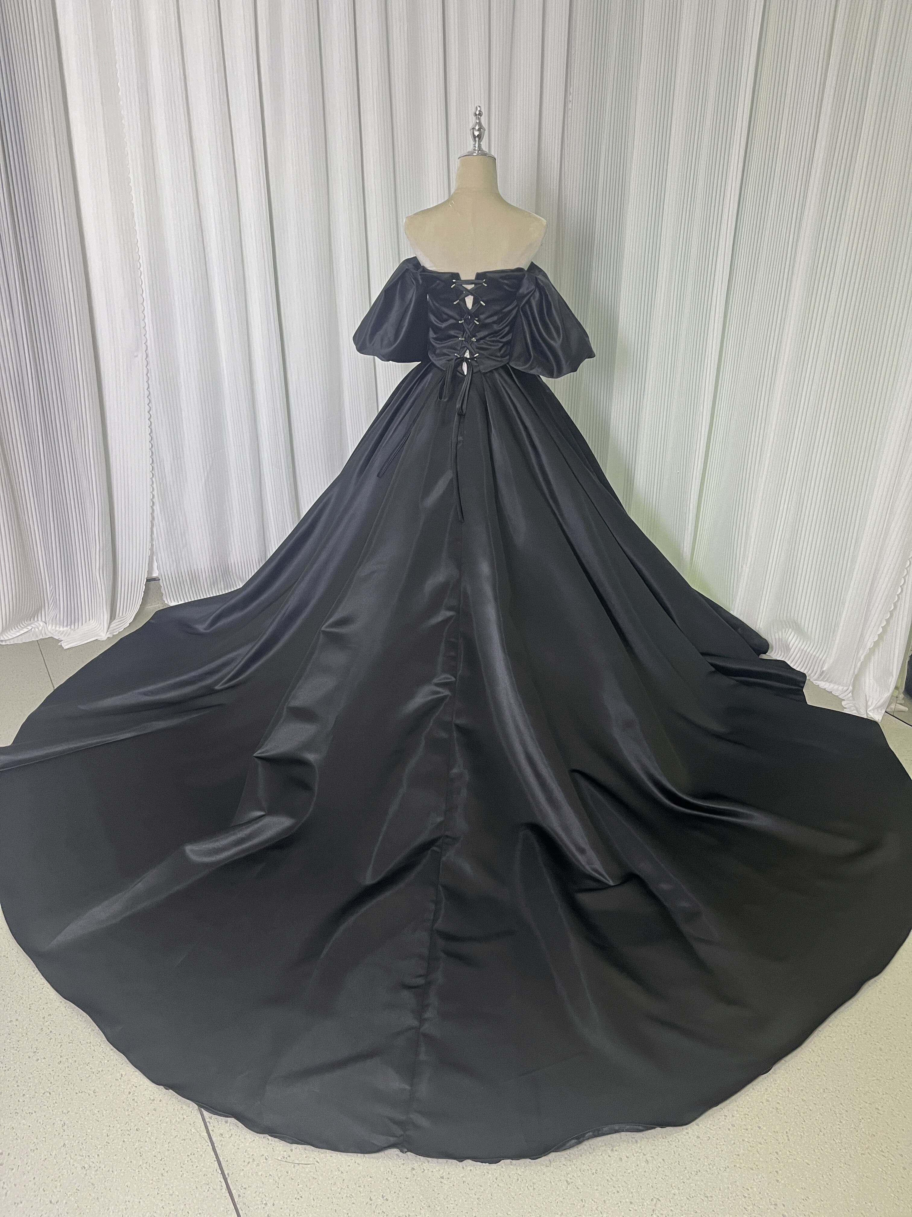 送料無料!黒 オフショルダー カラードレス 華やかなトレーン 花嫁/挙式/前撮り/結婚式/披露宴
