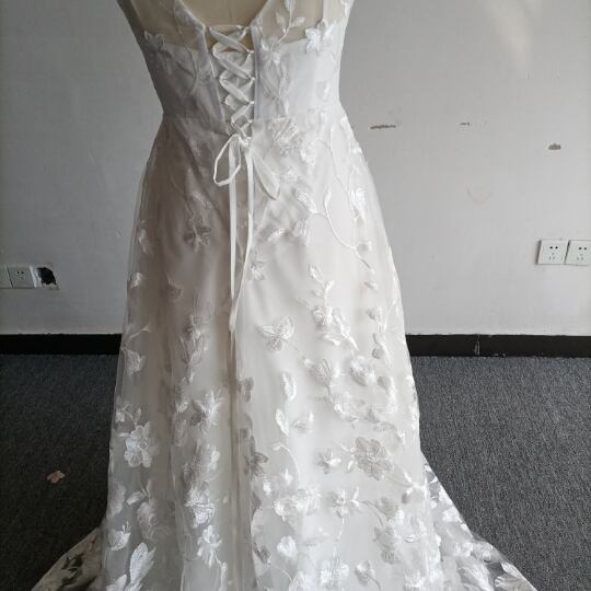 高品質!ウエディングドレス 贅沢な総レース 背中見せ マーメイドライン 編み上げ 結婚式/披露宴