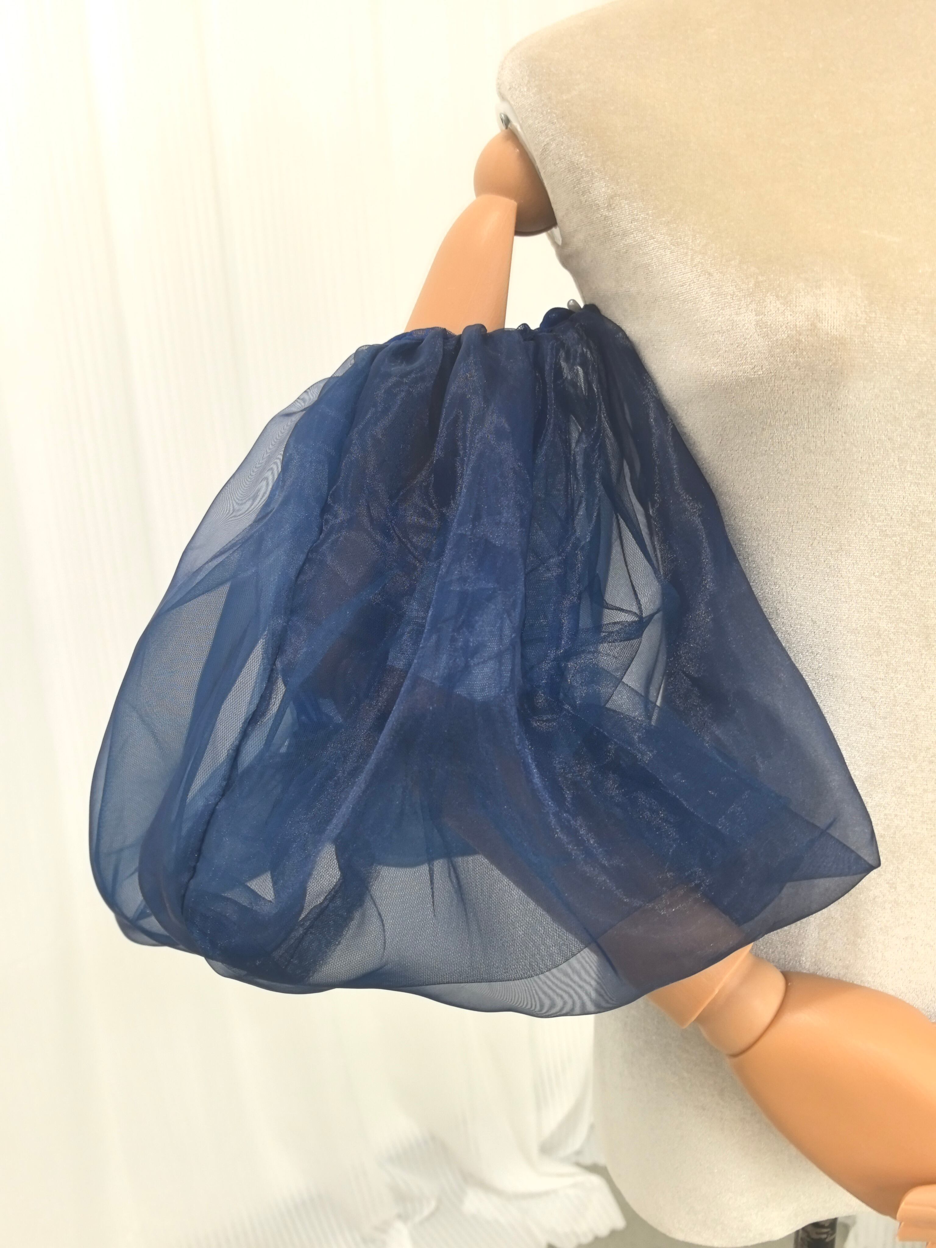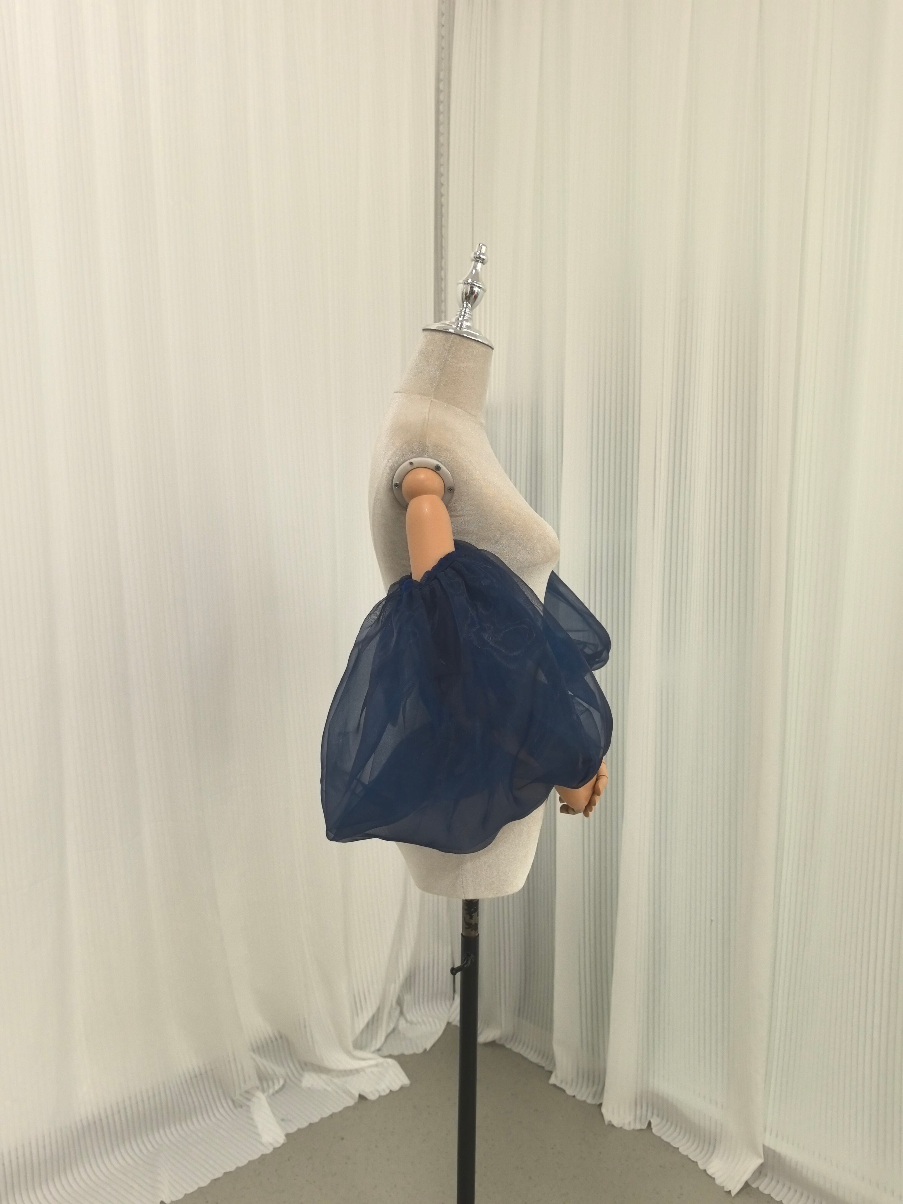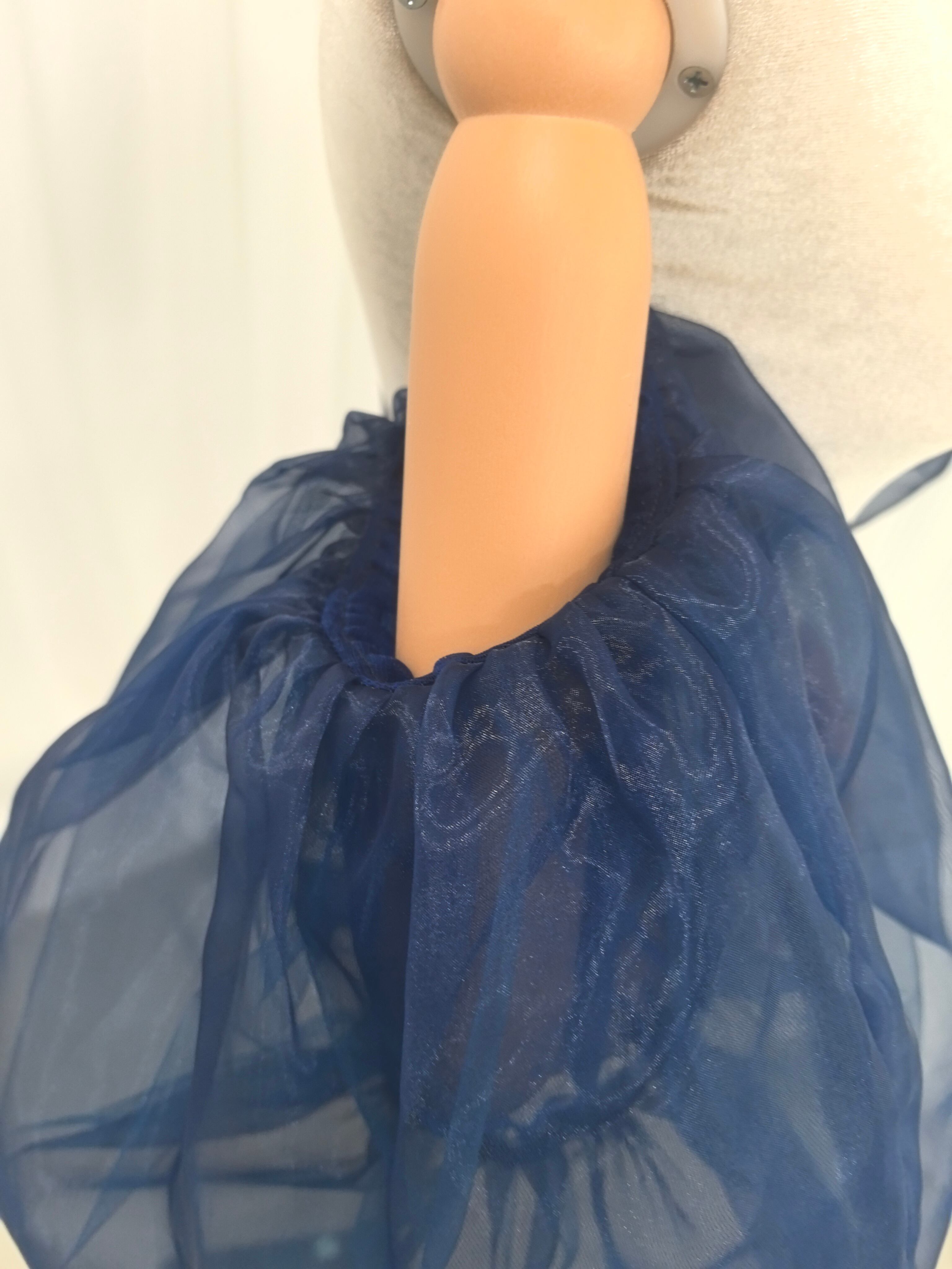 大人気上昇 紺 上質オーガンジー 取り外し袖 ショルダーの付け袖 パフスリーブ オーダー可能