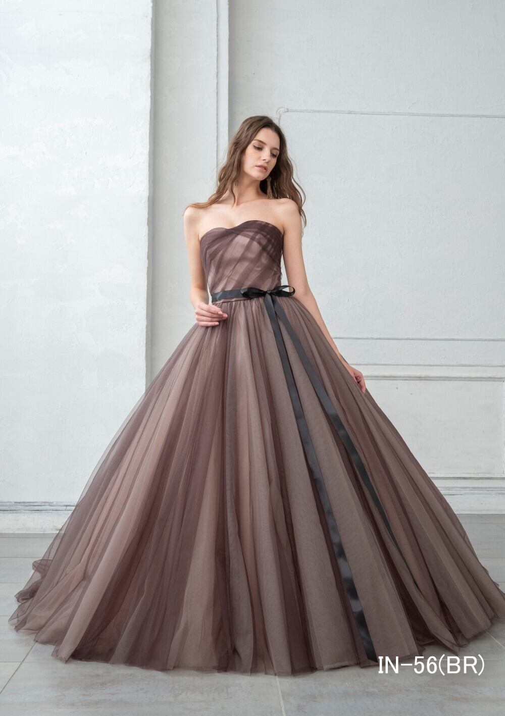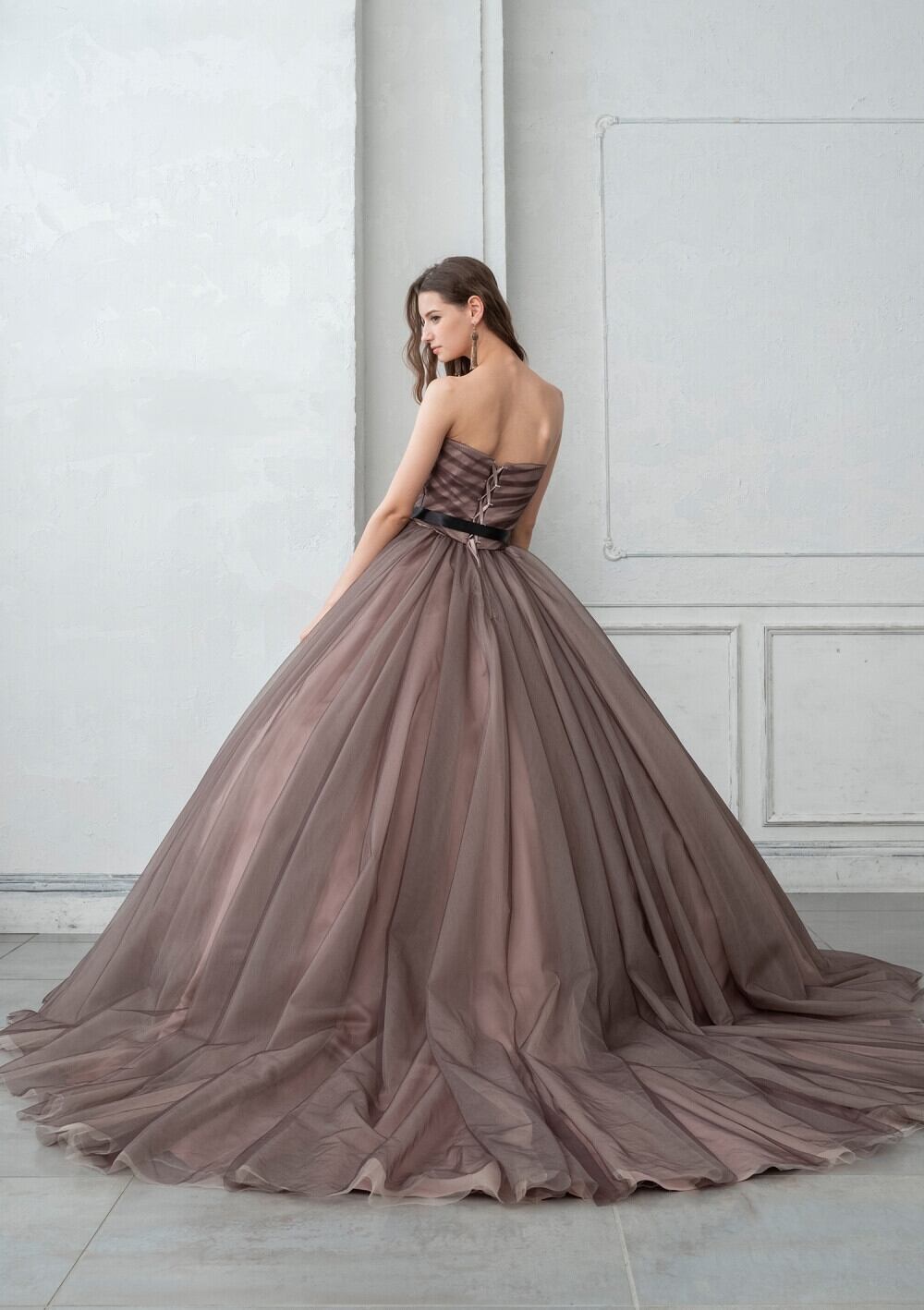 高品質!オーダーメイド!カラードレス パーティードレス ブラウン コーヒー色 Aライン エレガント ソフトチュール お色直し ステージ演出 演奏ドレス 花嫁/挙式/前撮り/結婚式 | David1021k Dress(ダヴィドレス)