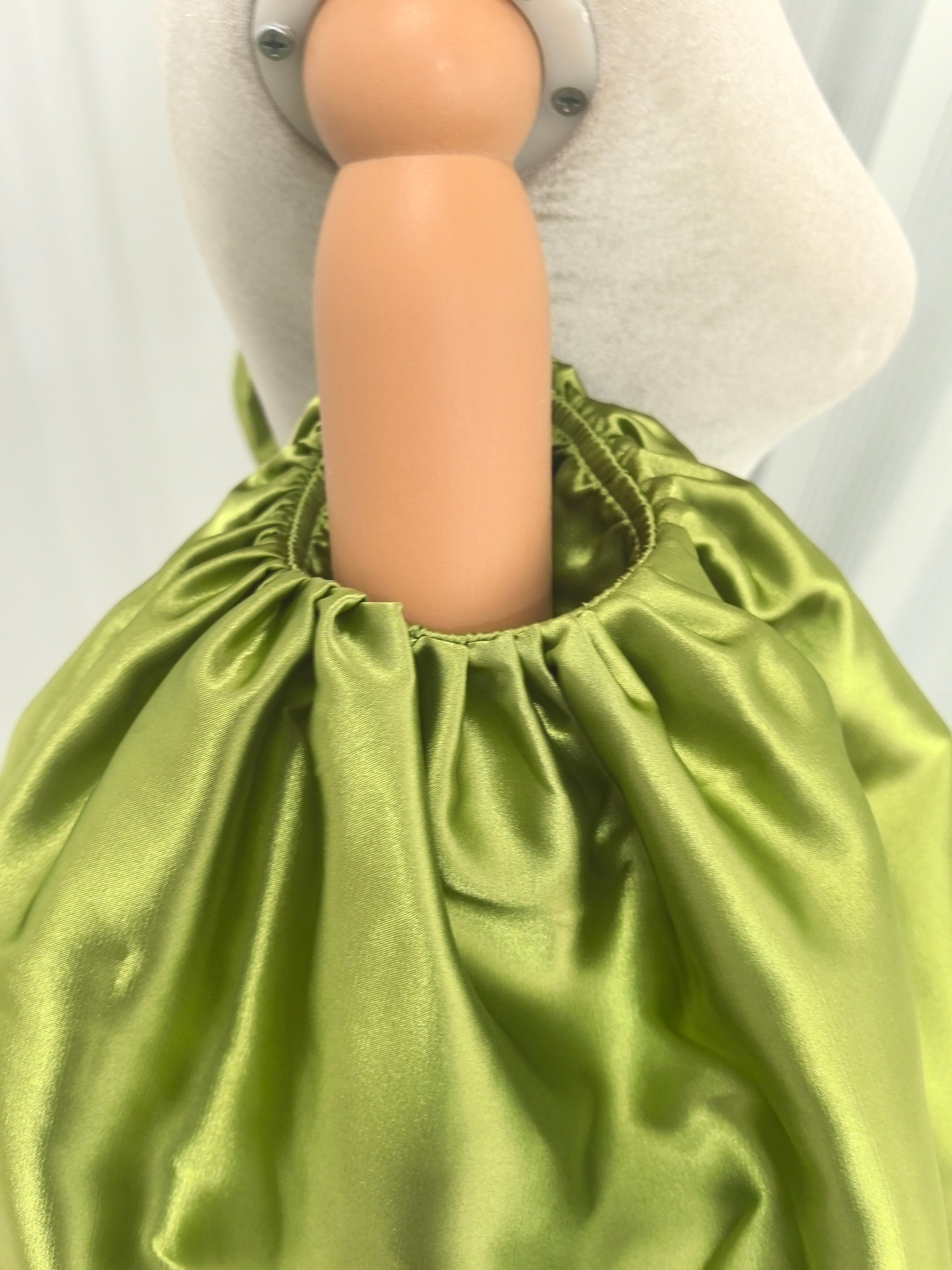高級サテン グリーン 取り外し袖 ショルダーの付け袖 パフスリーブ オーダー可能 二の腕を隠せるお袖
