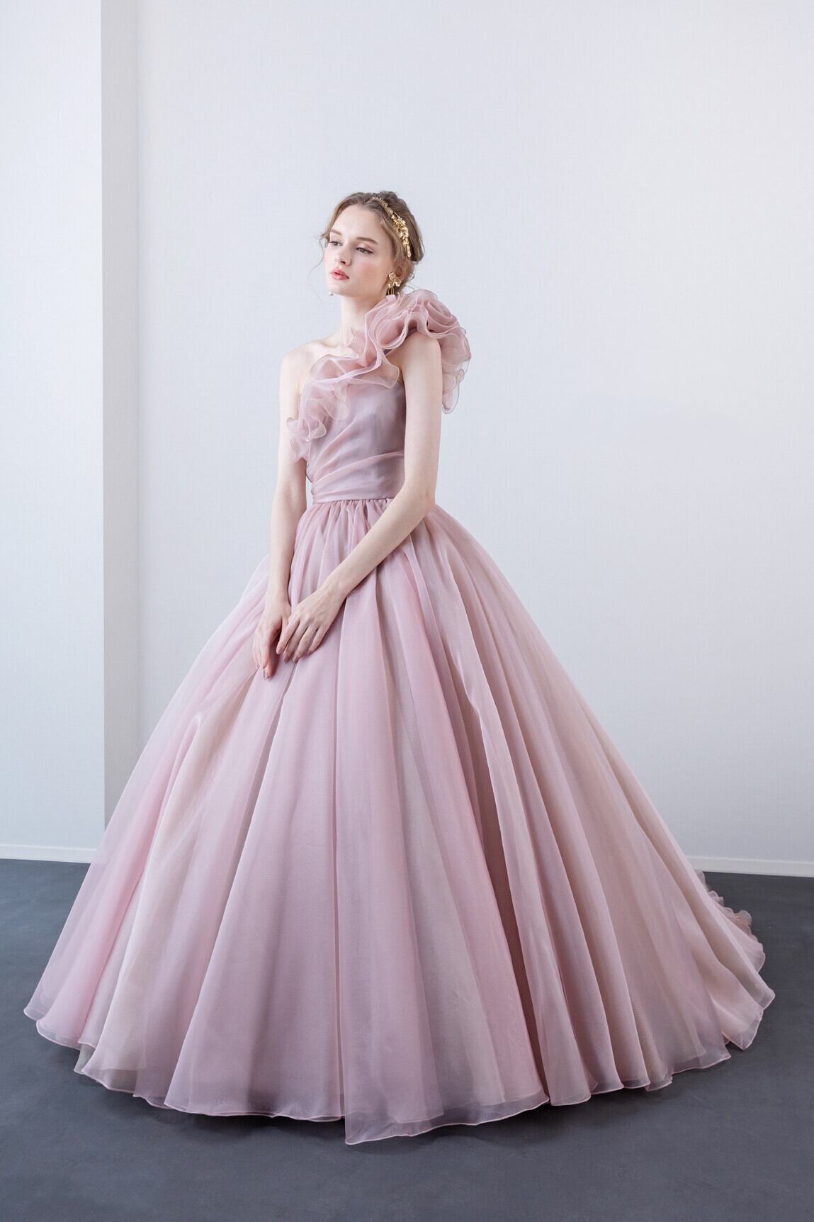 高品質!オーダーメイド!ピンク カラードレス パーティードレス フリフリワンショルダー ソフトチュール ダンスドレス ステージ演出 演奏ドレス 花嫁/挙式/前撮り/結婚式 | David1021k Dress(ダヴィドレス)