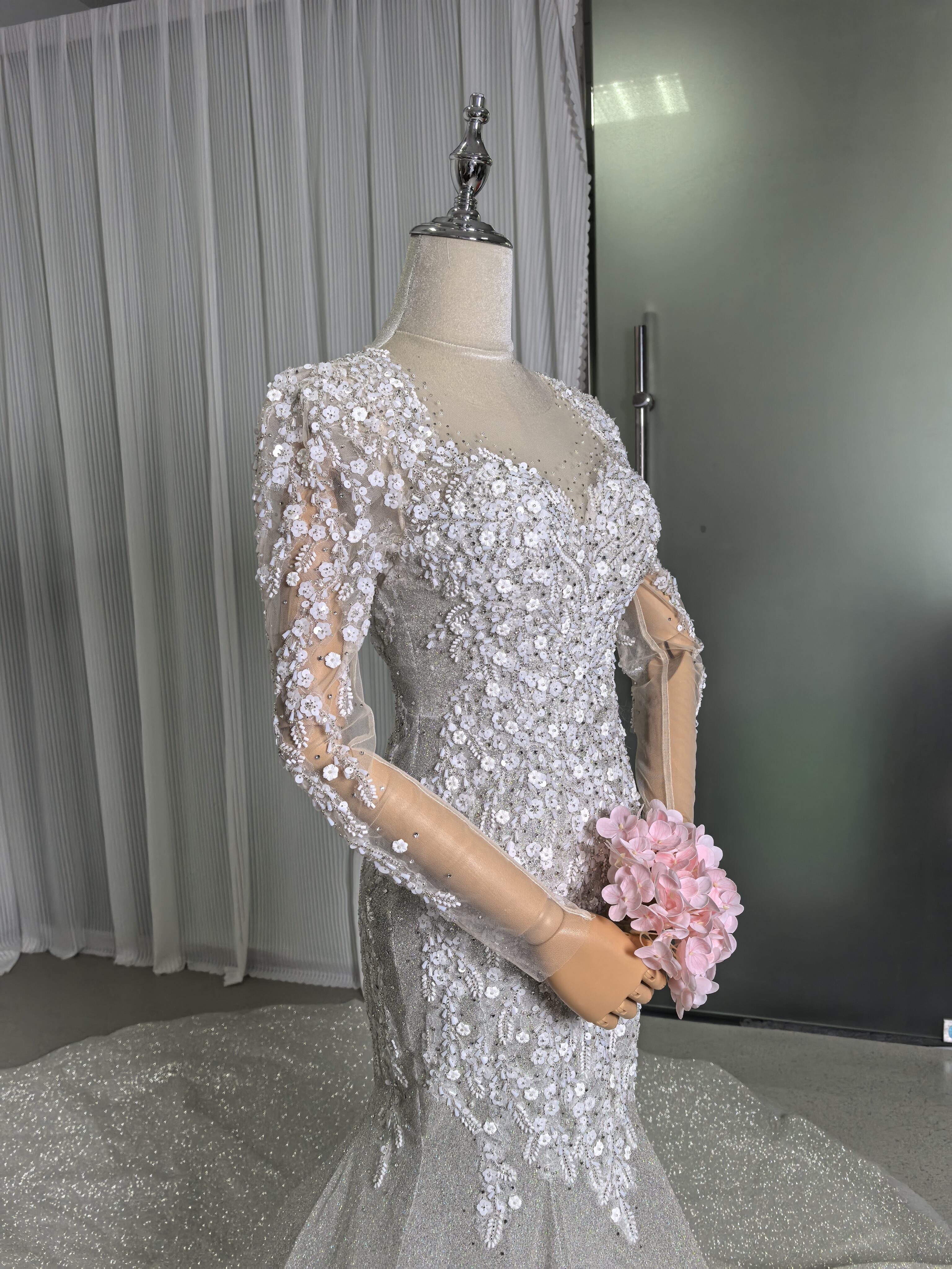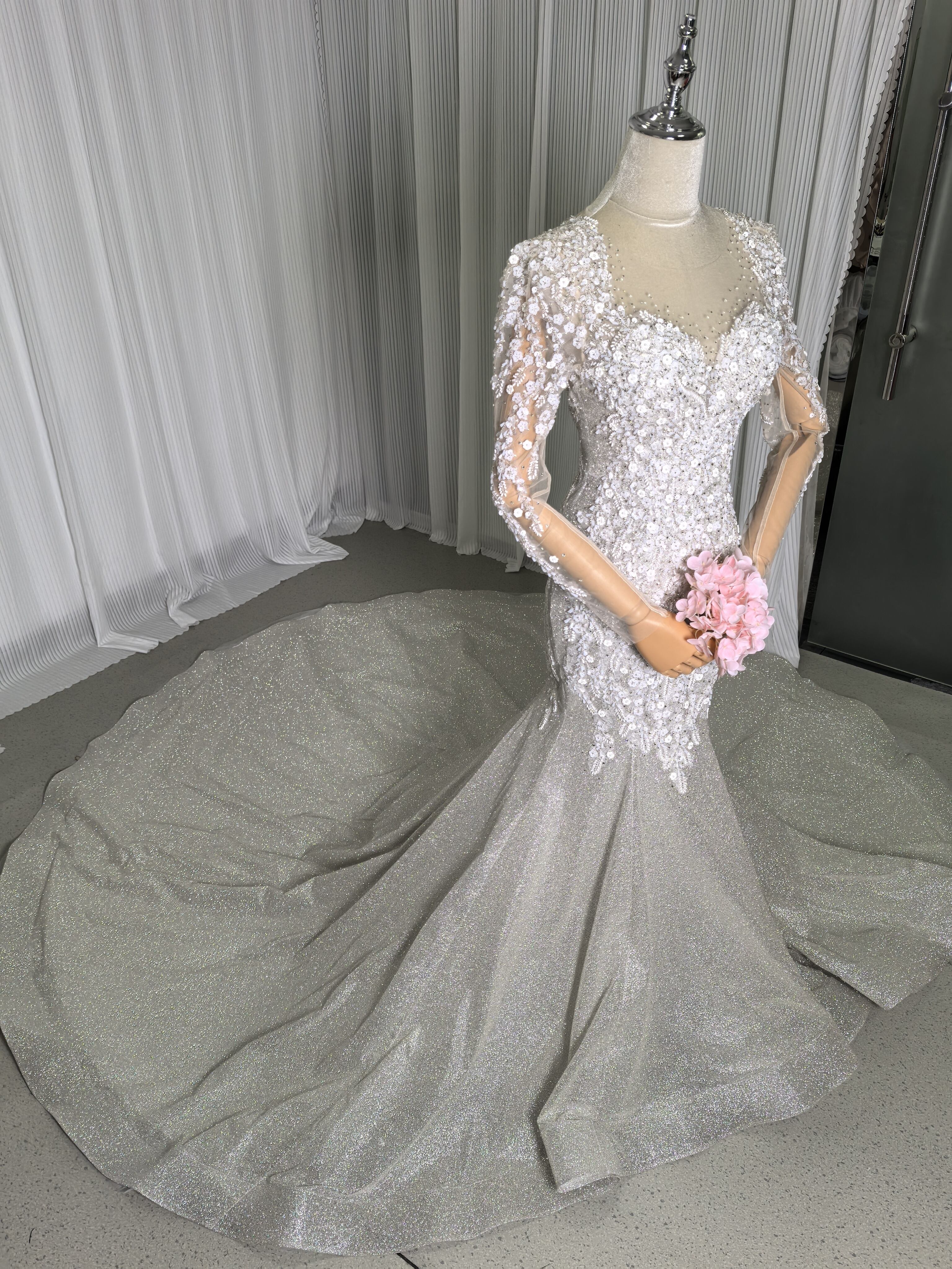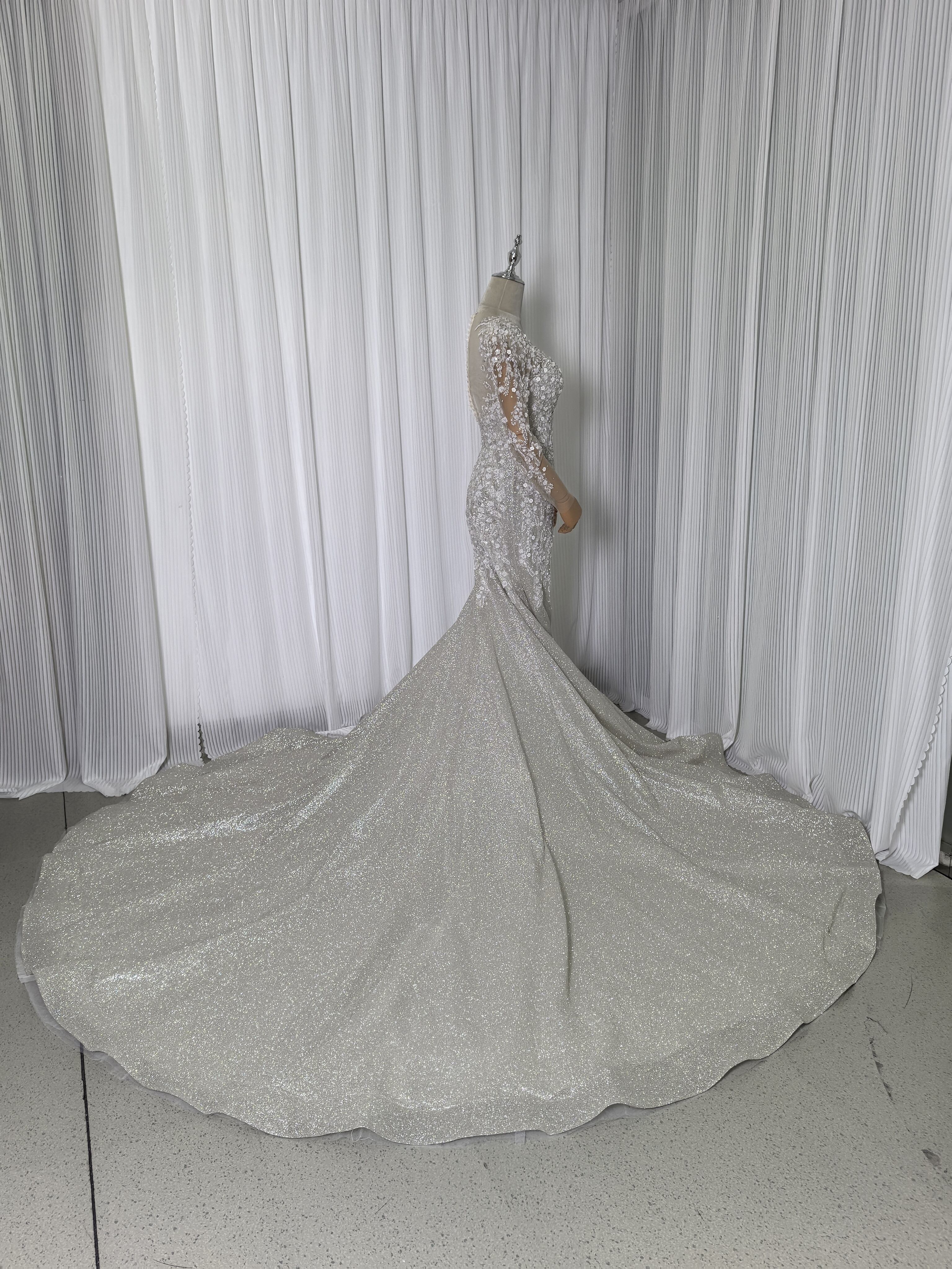 韓国風ビジュー ウエディングドレス マーメイド キラキラ グリッターエスエリドレス風 豪華なトレーン