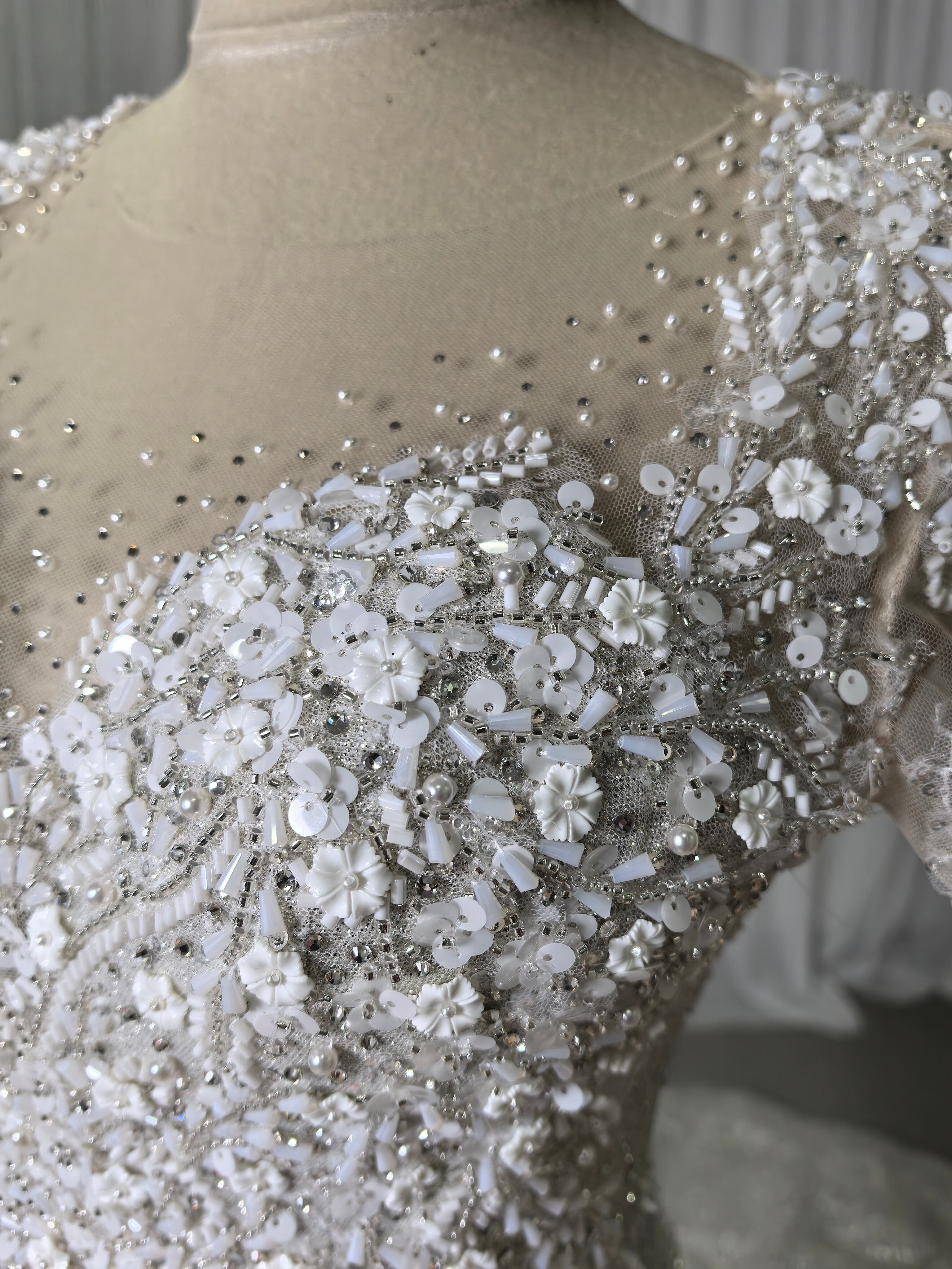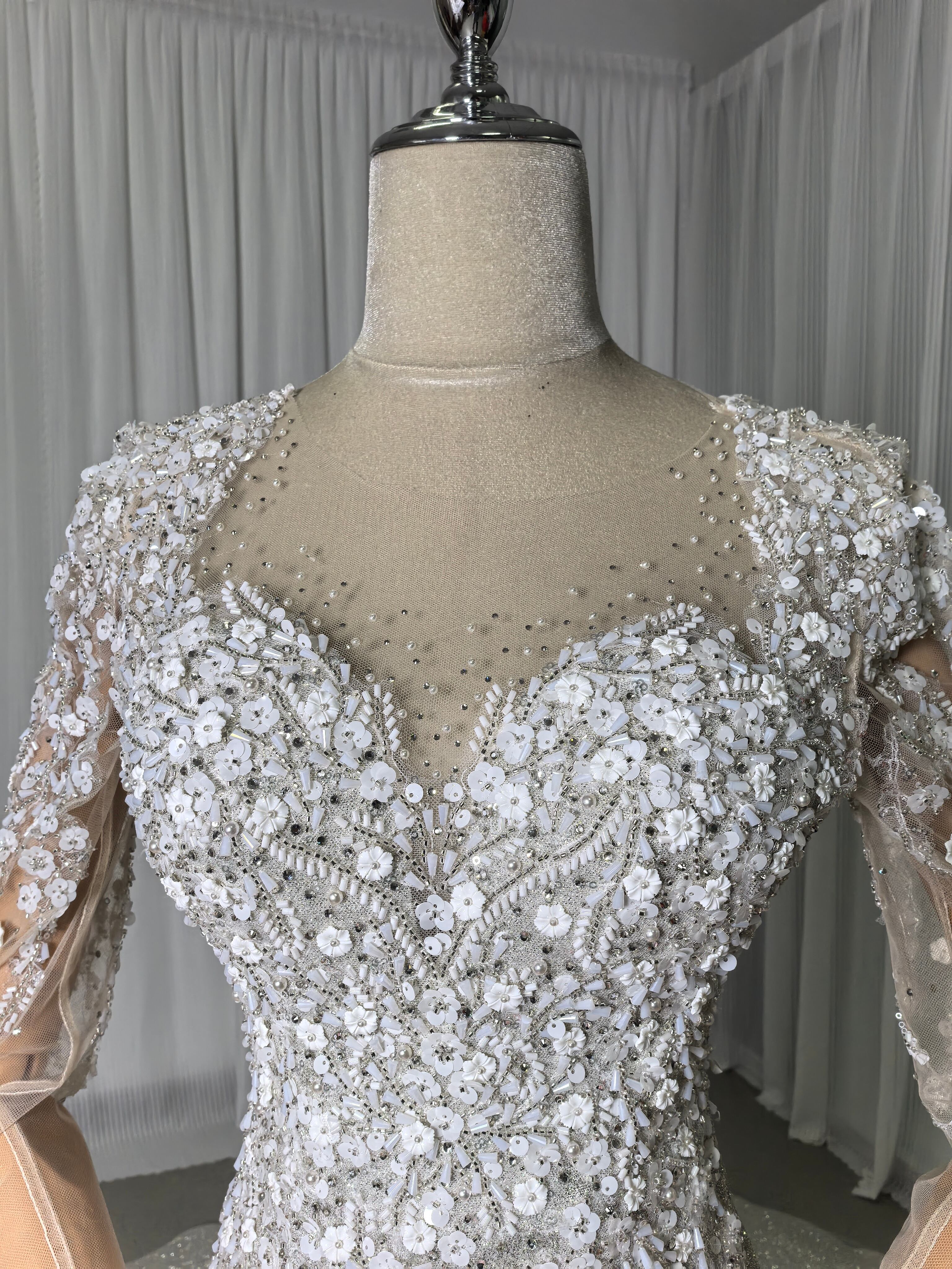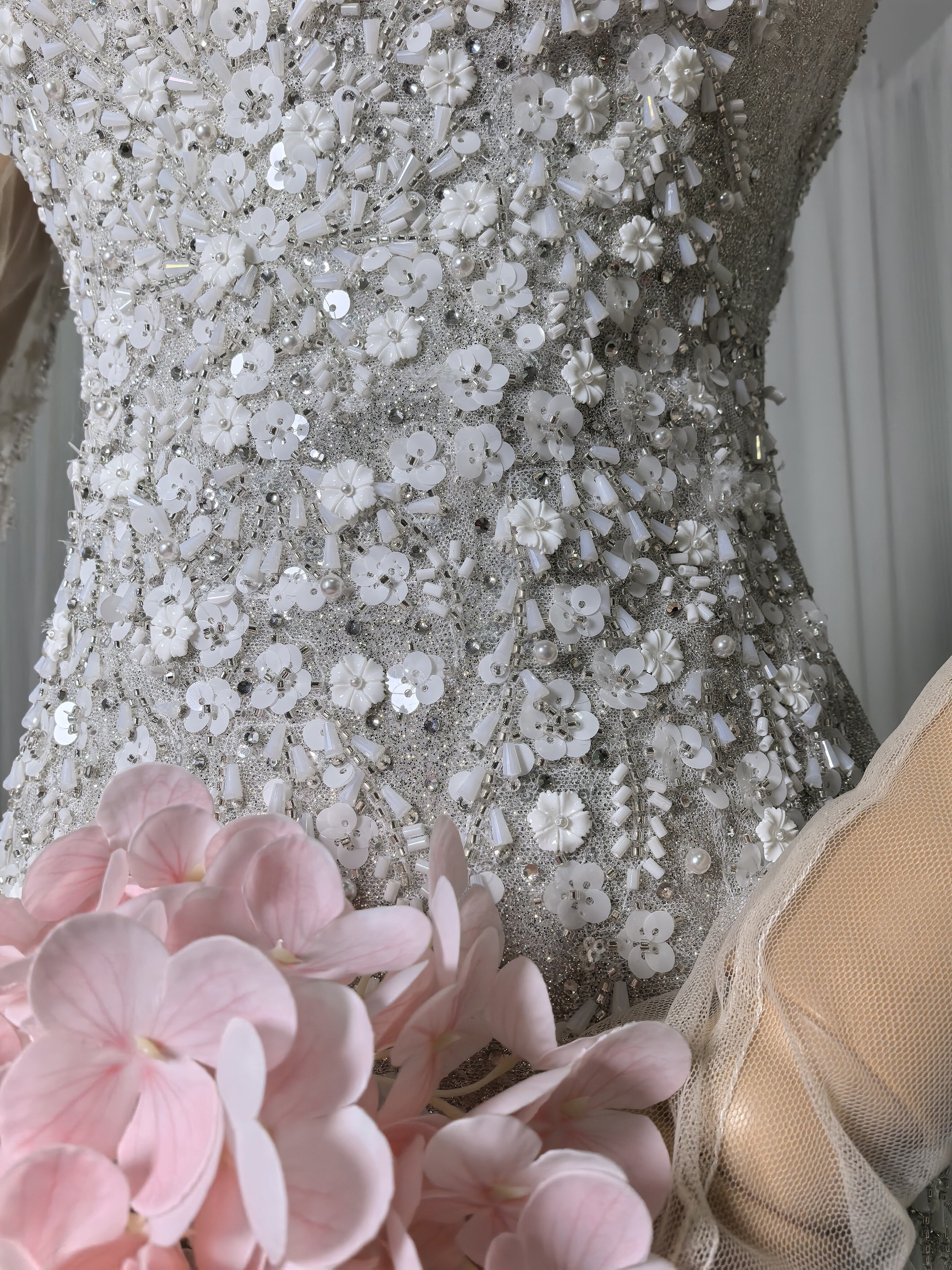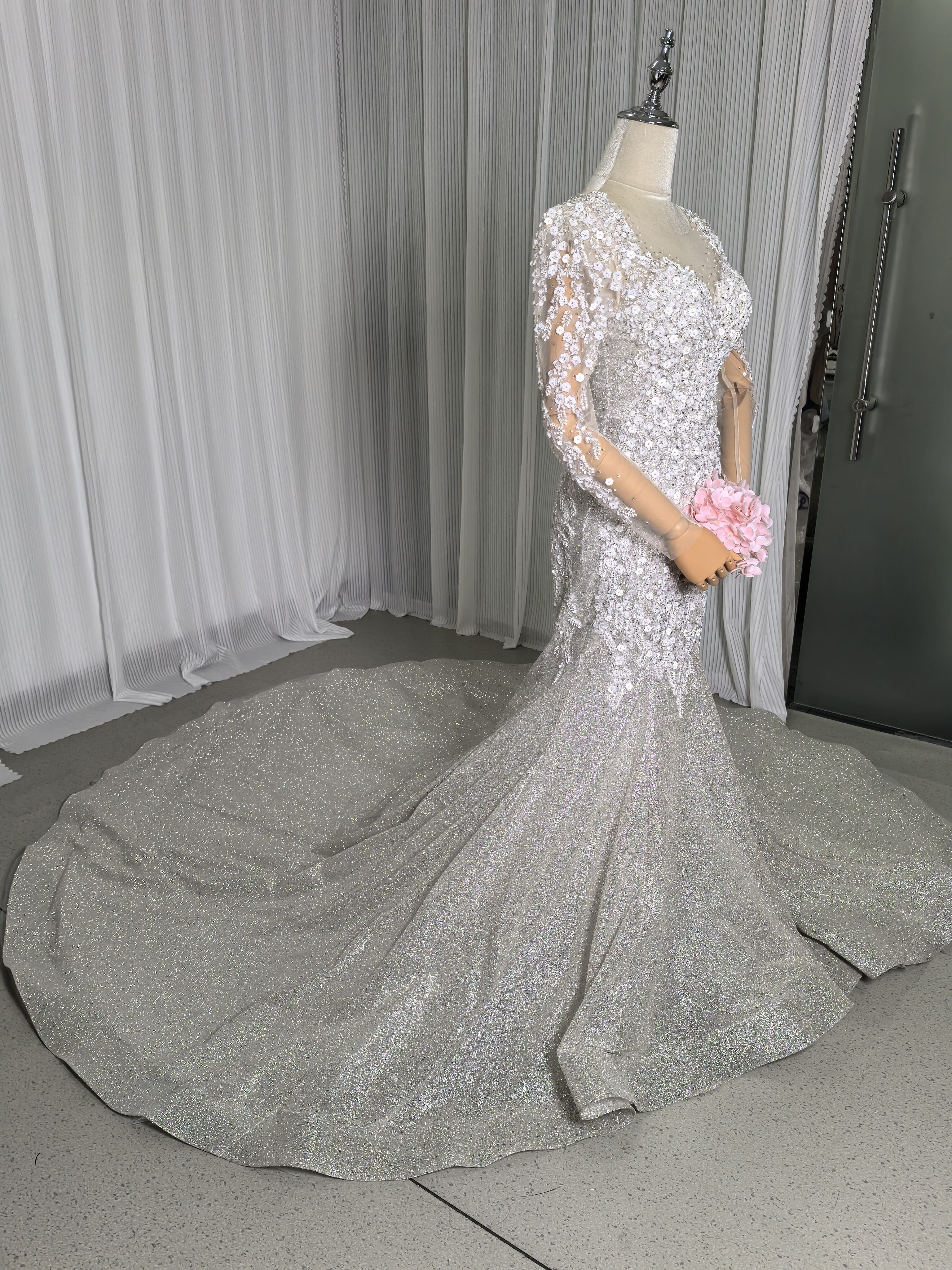 韓国風ビジュー ウエディングドレス マーメイド キラキラ グリッターエスエリドレス風 豪華なトレーン