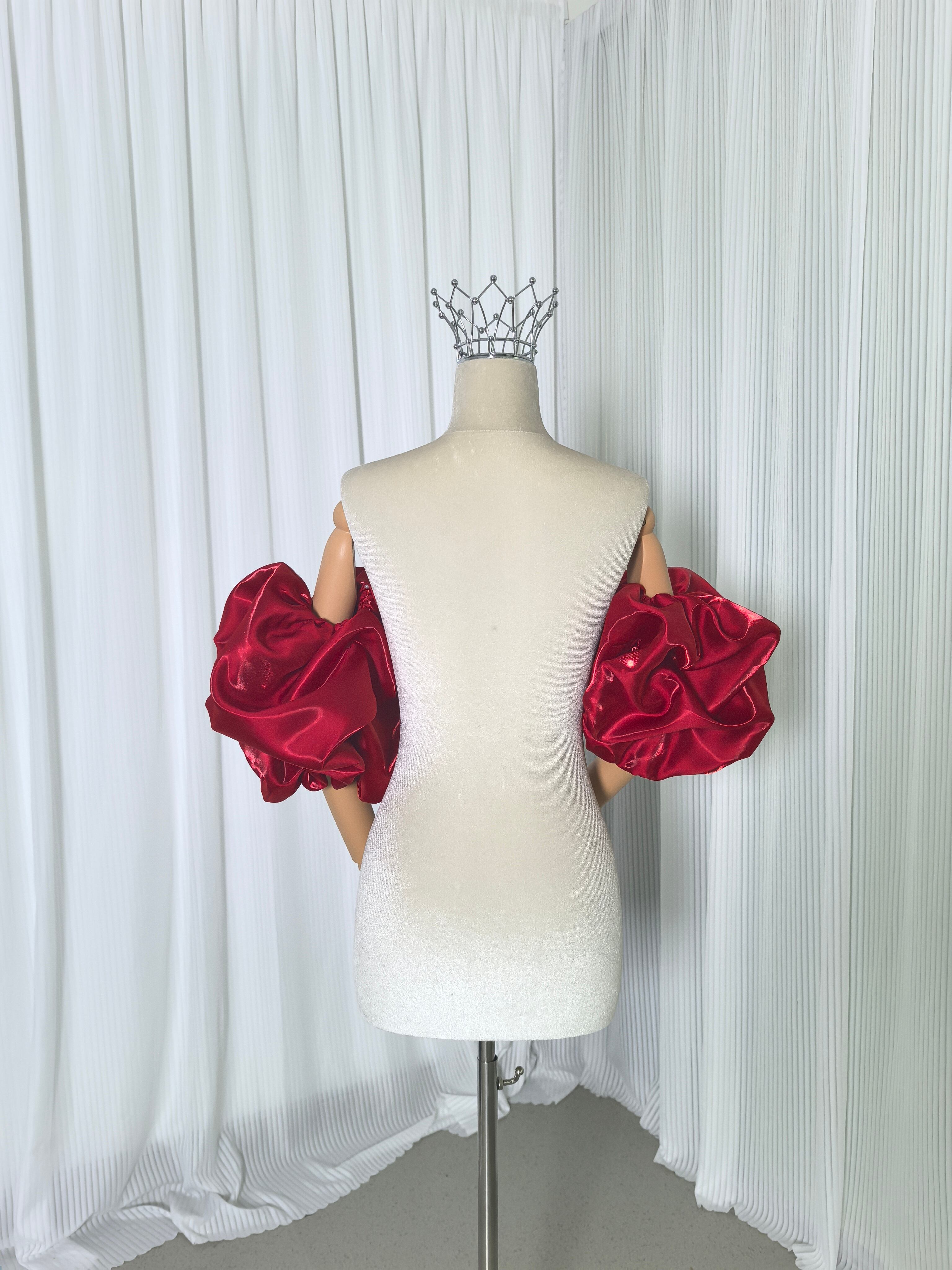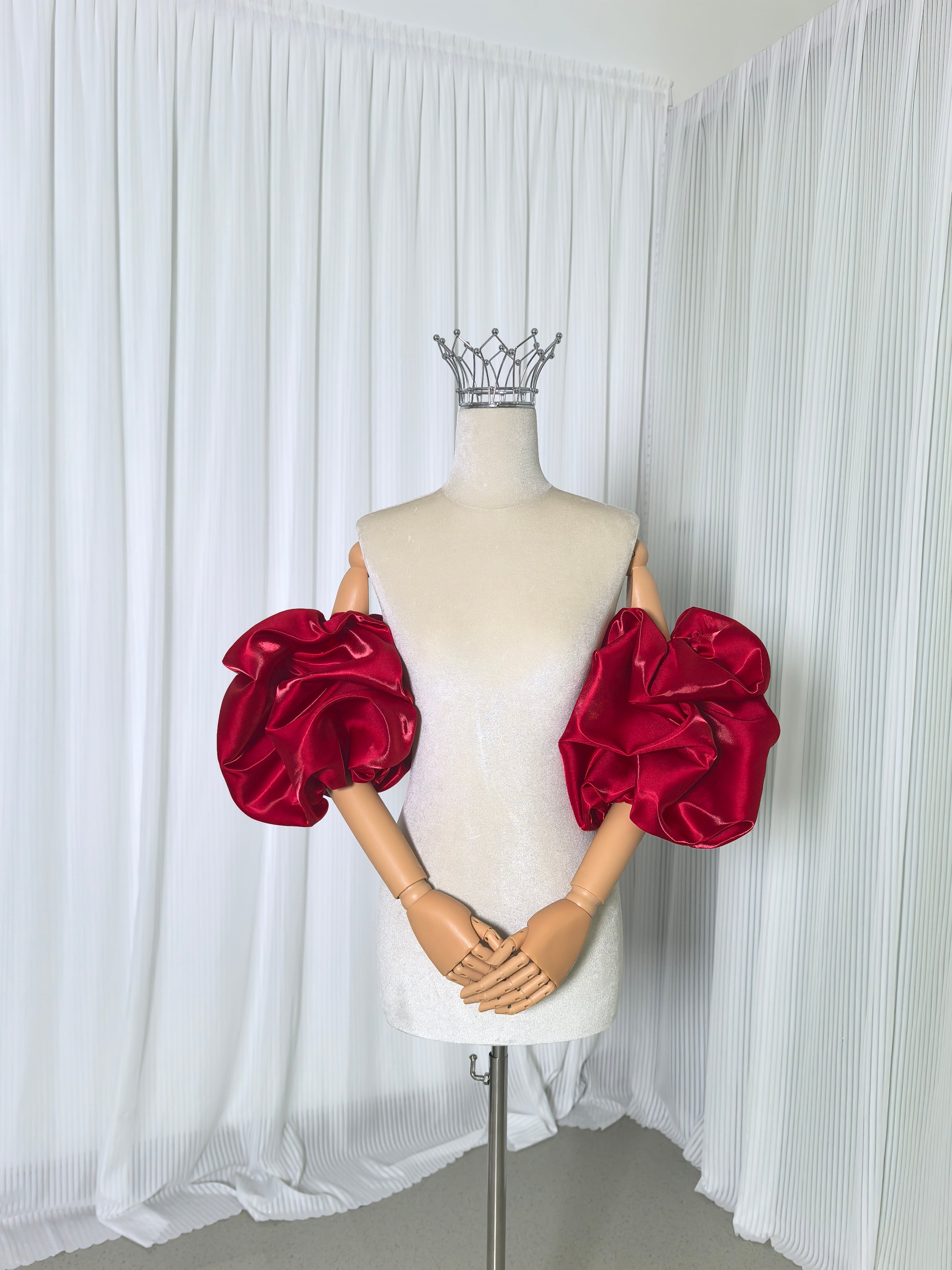 大人気上昇 ワインレッド 取り外し袖 ショルダーの付け袖 パフスリーブ オーダー可能 お色直し カラードレス付け袖