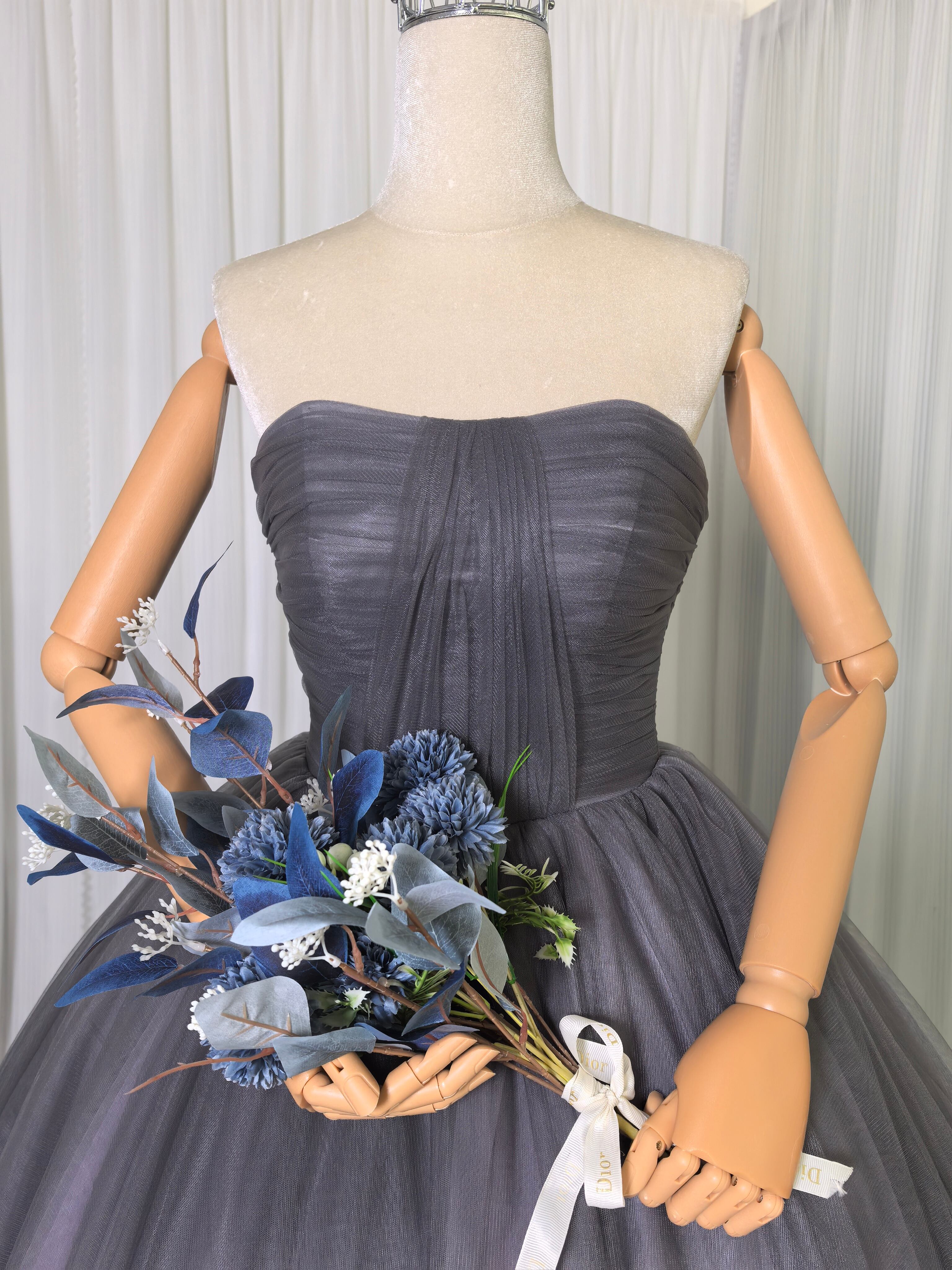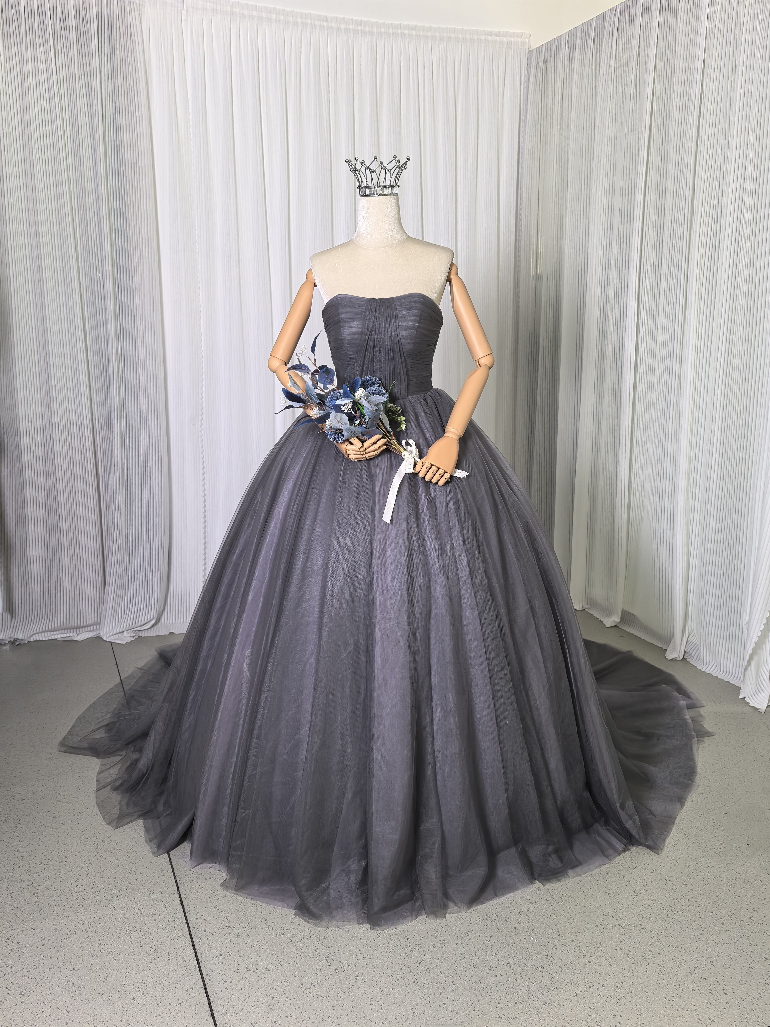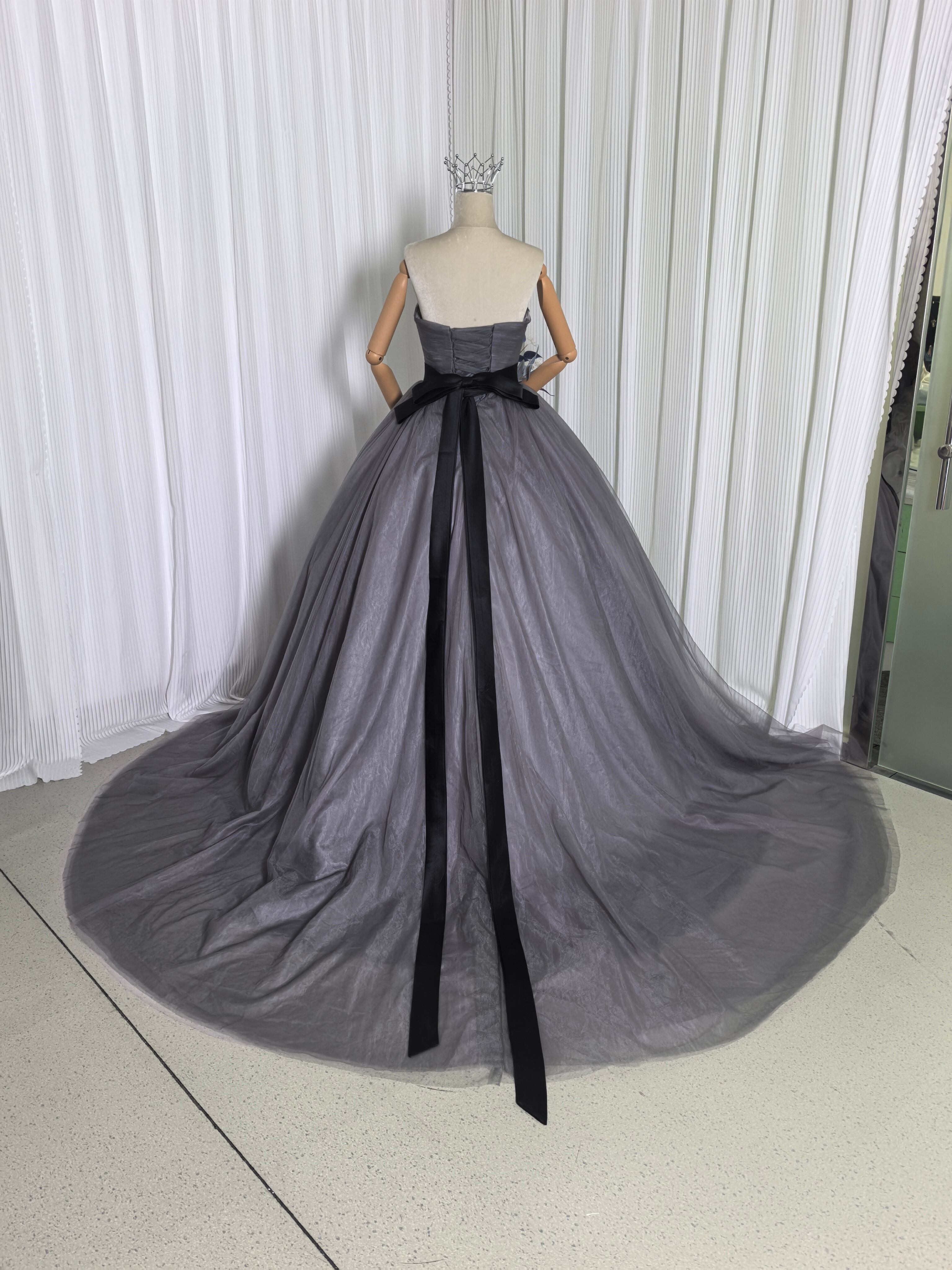 高品質! グレー ベアトップ カラードレス ロングトレーン パーティードレス お色直し