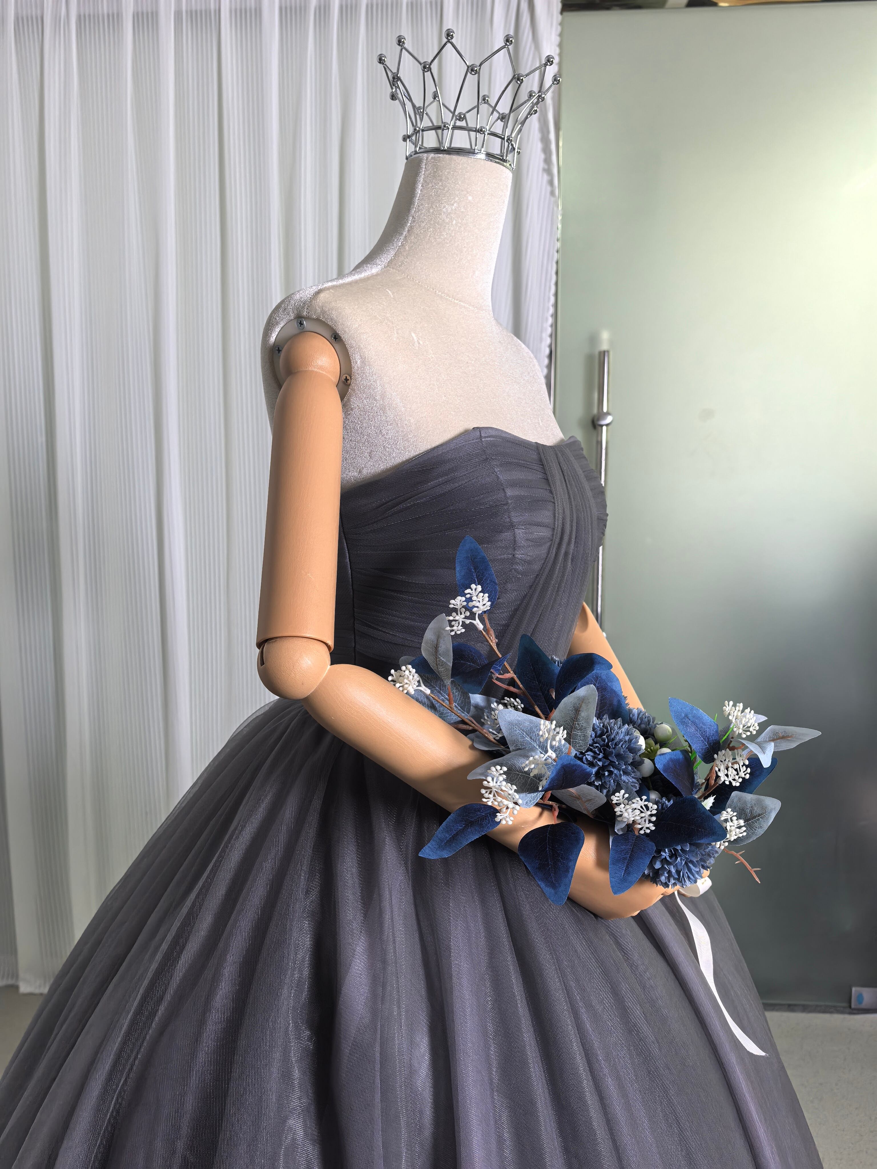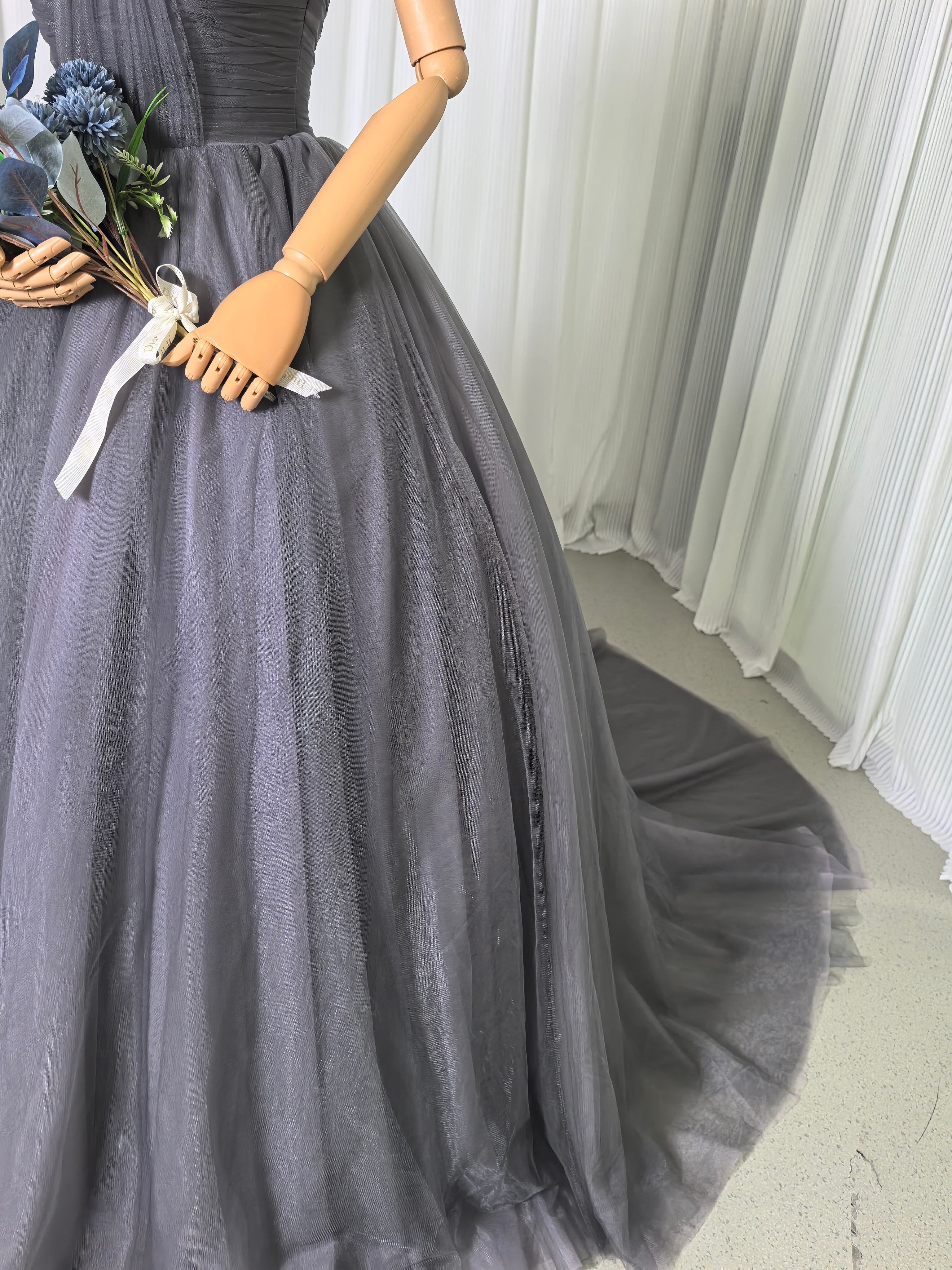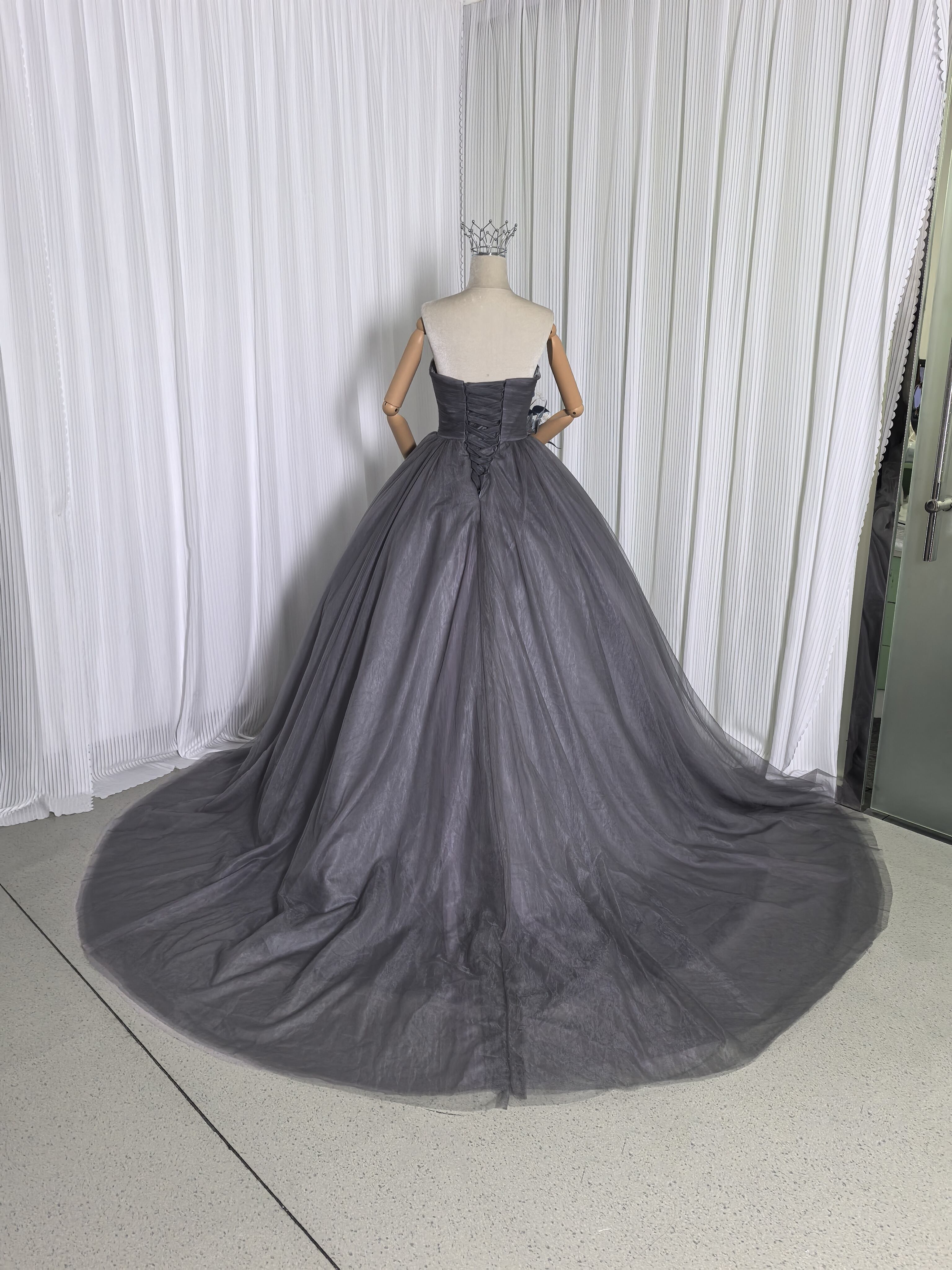 高品質! グレー ベアトップ カラードレス ロングトレーン パーティードレス お色直し
