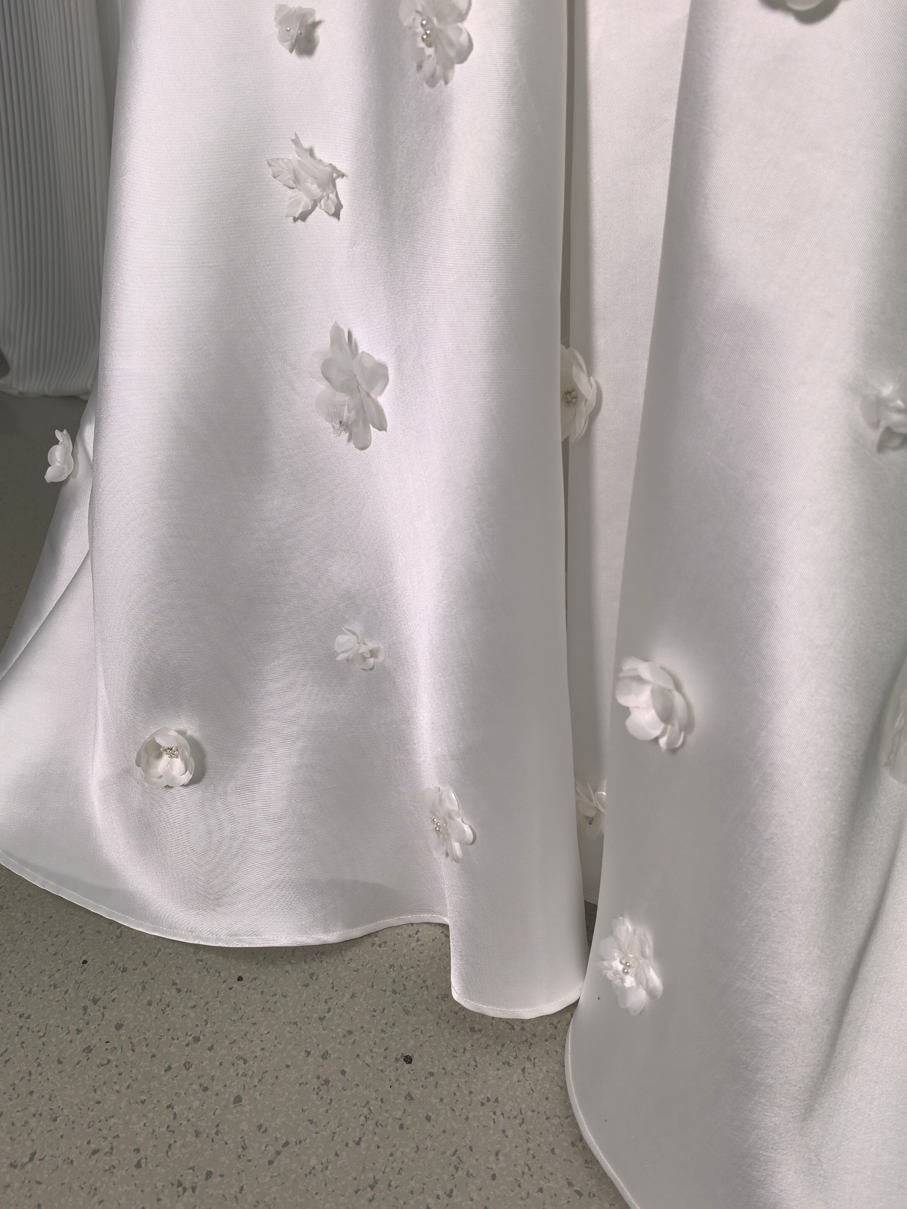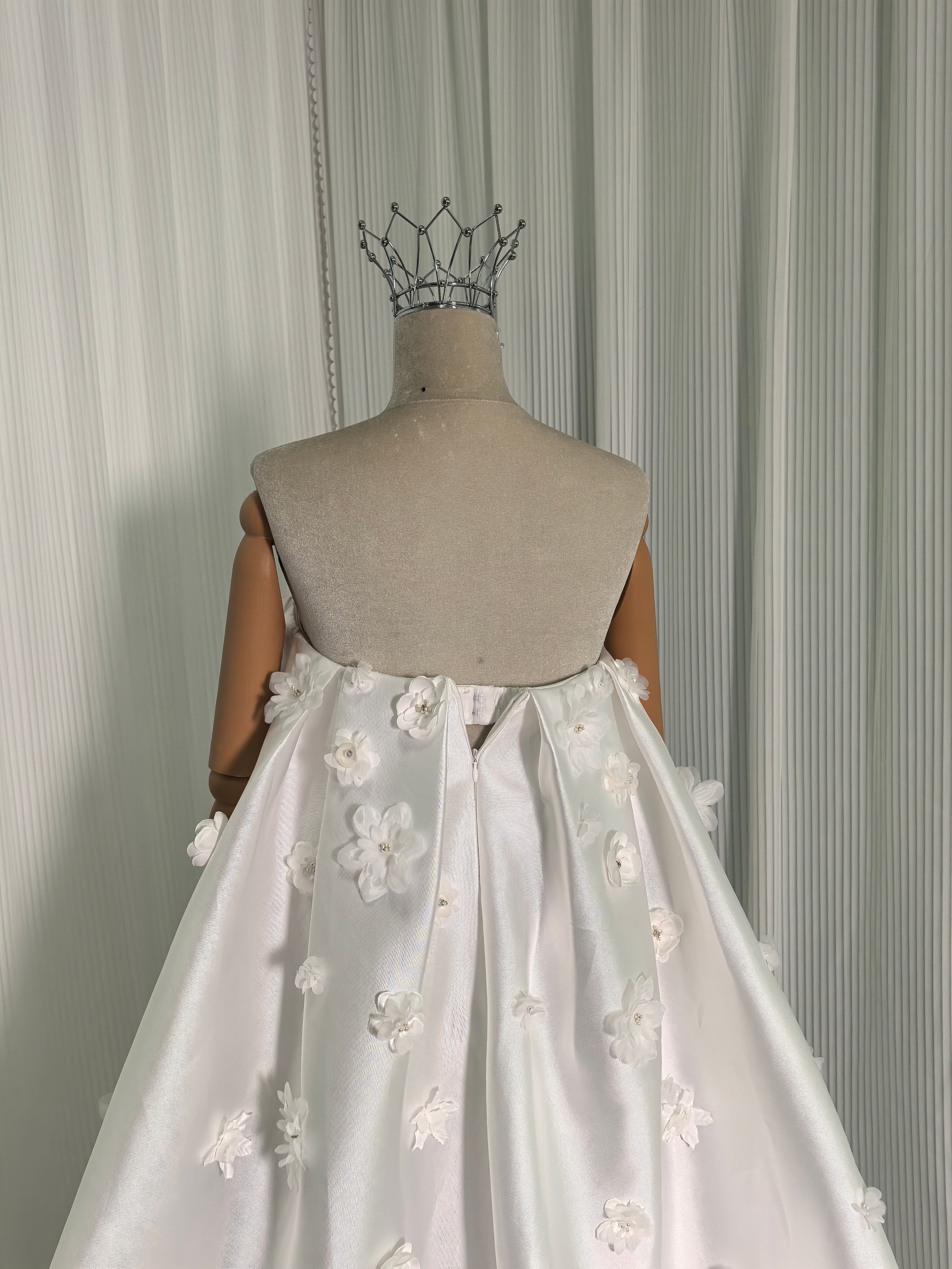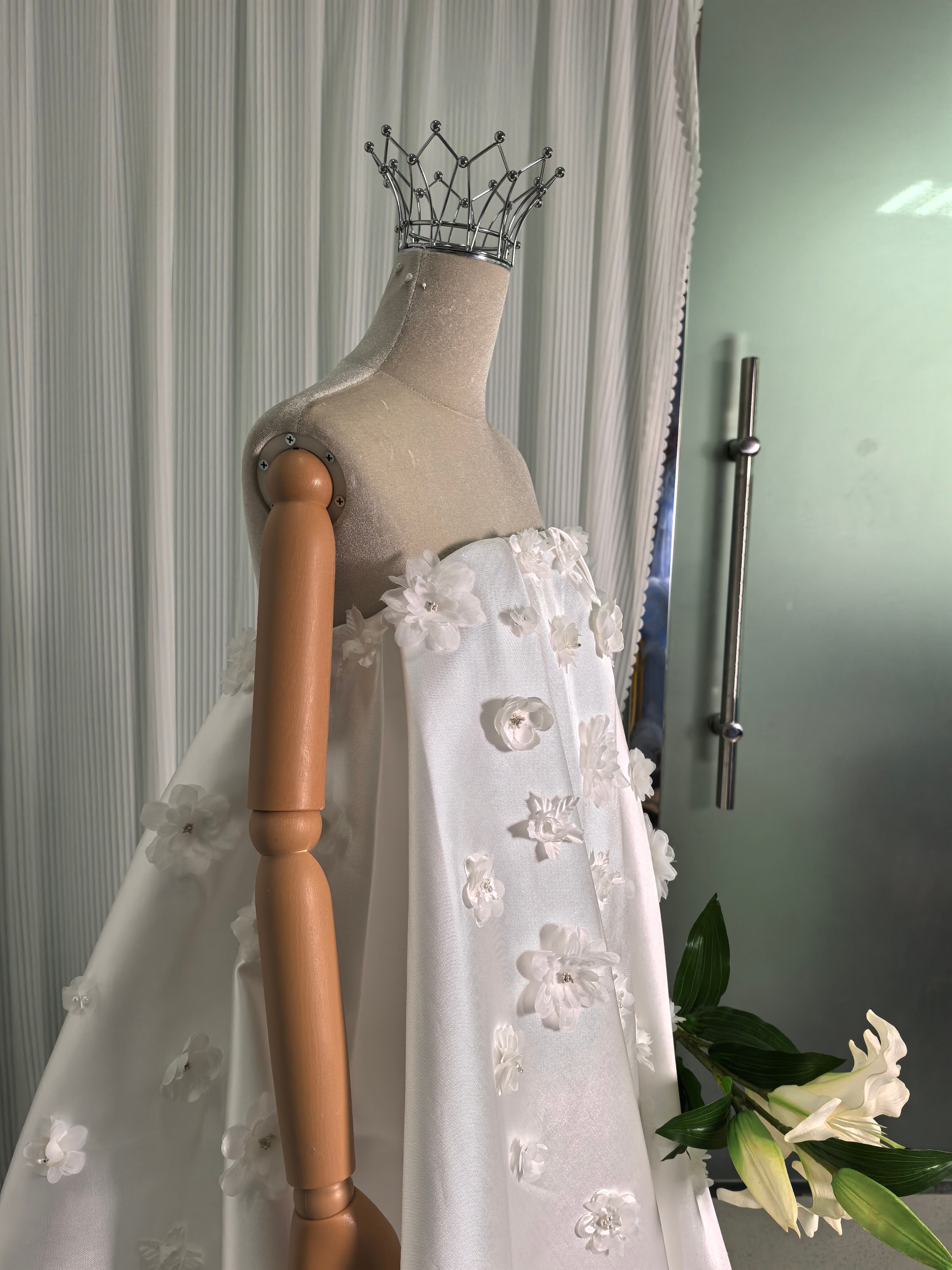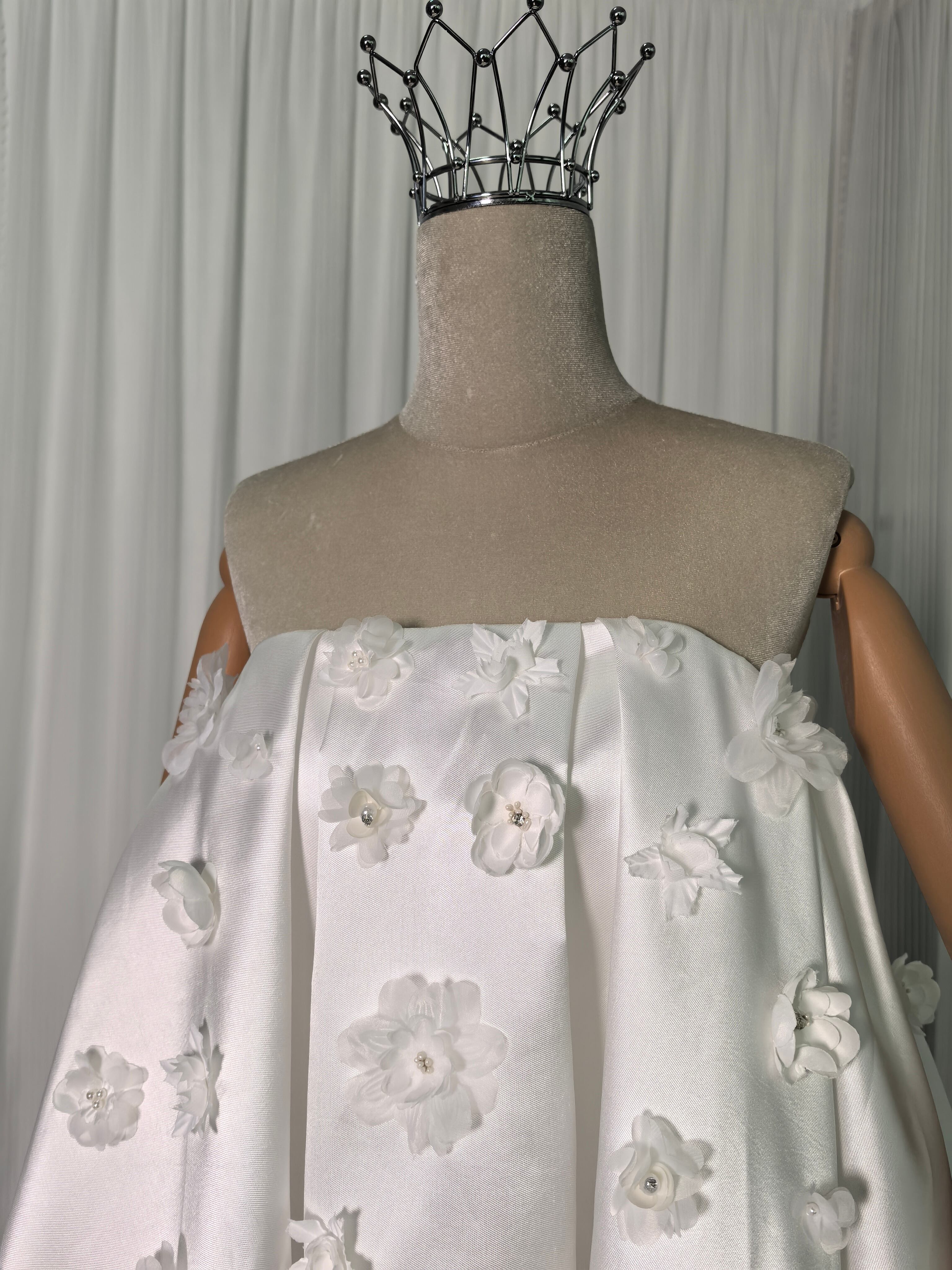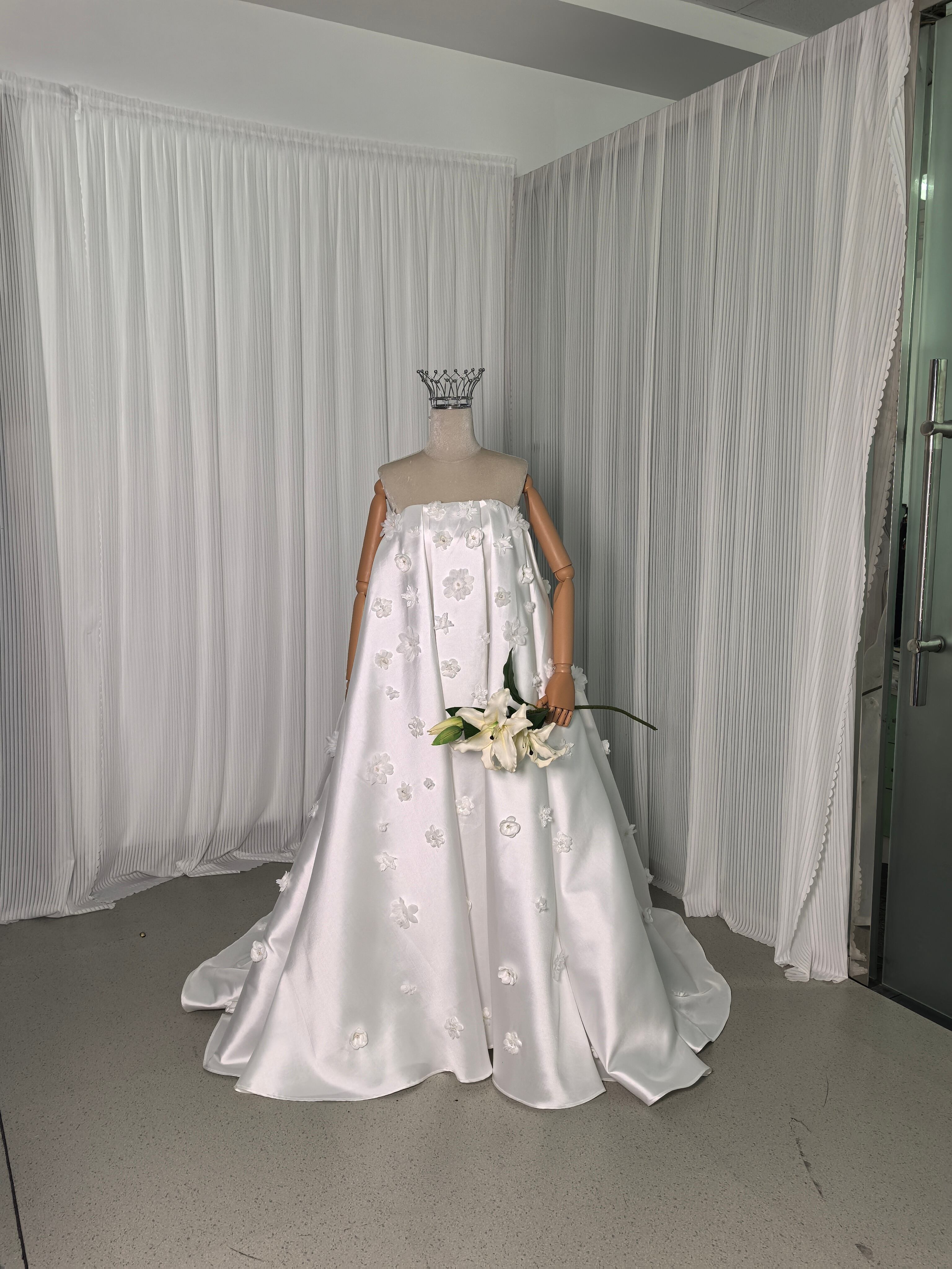輝きな光彩を放つ ベアトップ オフホワイト 花モチーフ ウエディングドレス 優雅 マタニティドレス 花嫁 結婚式/前撮り