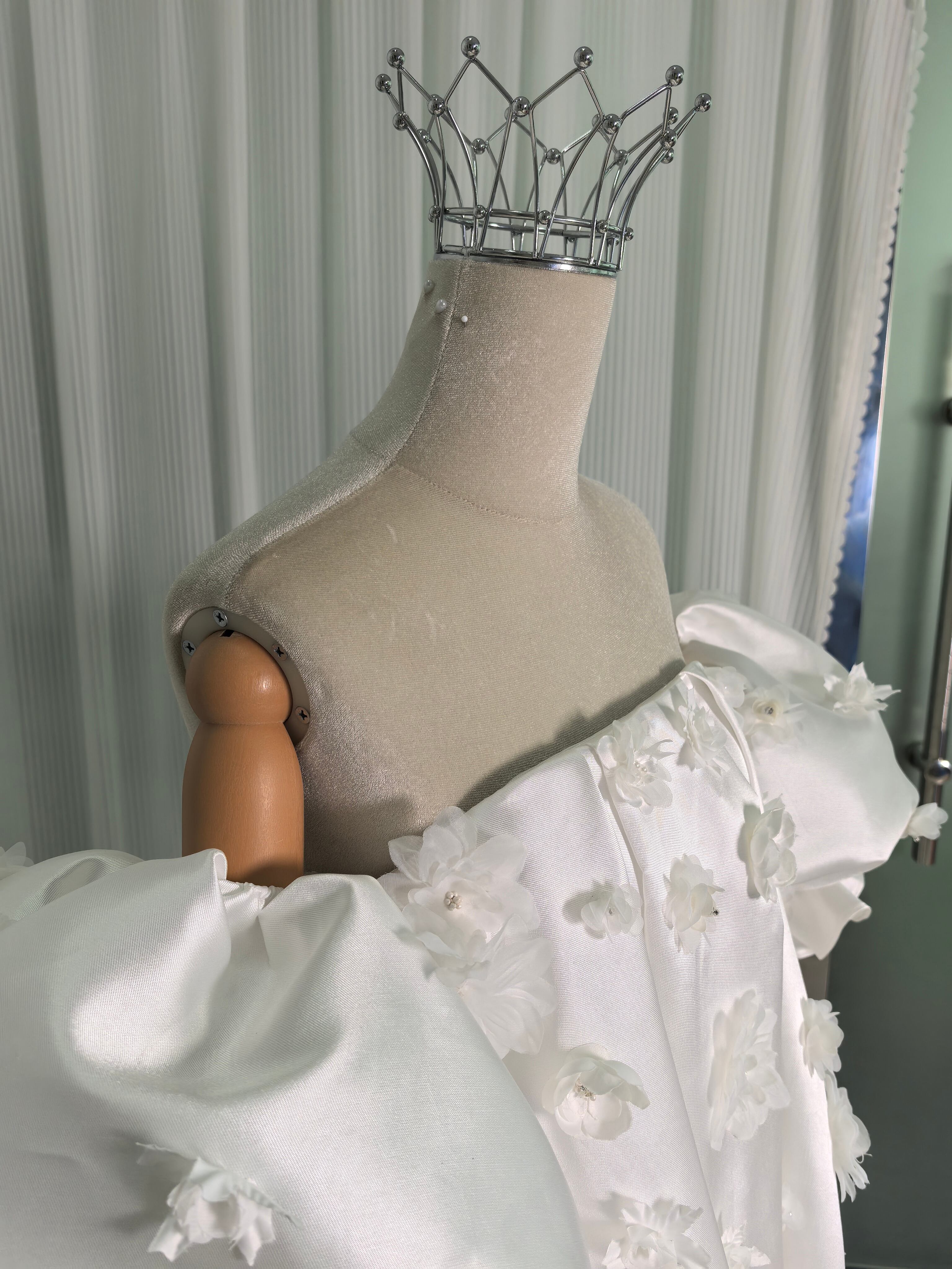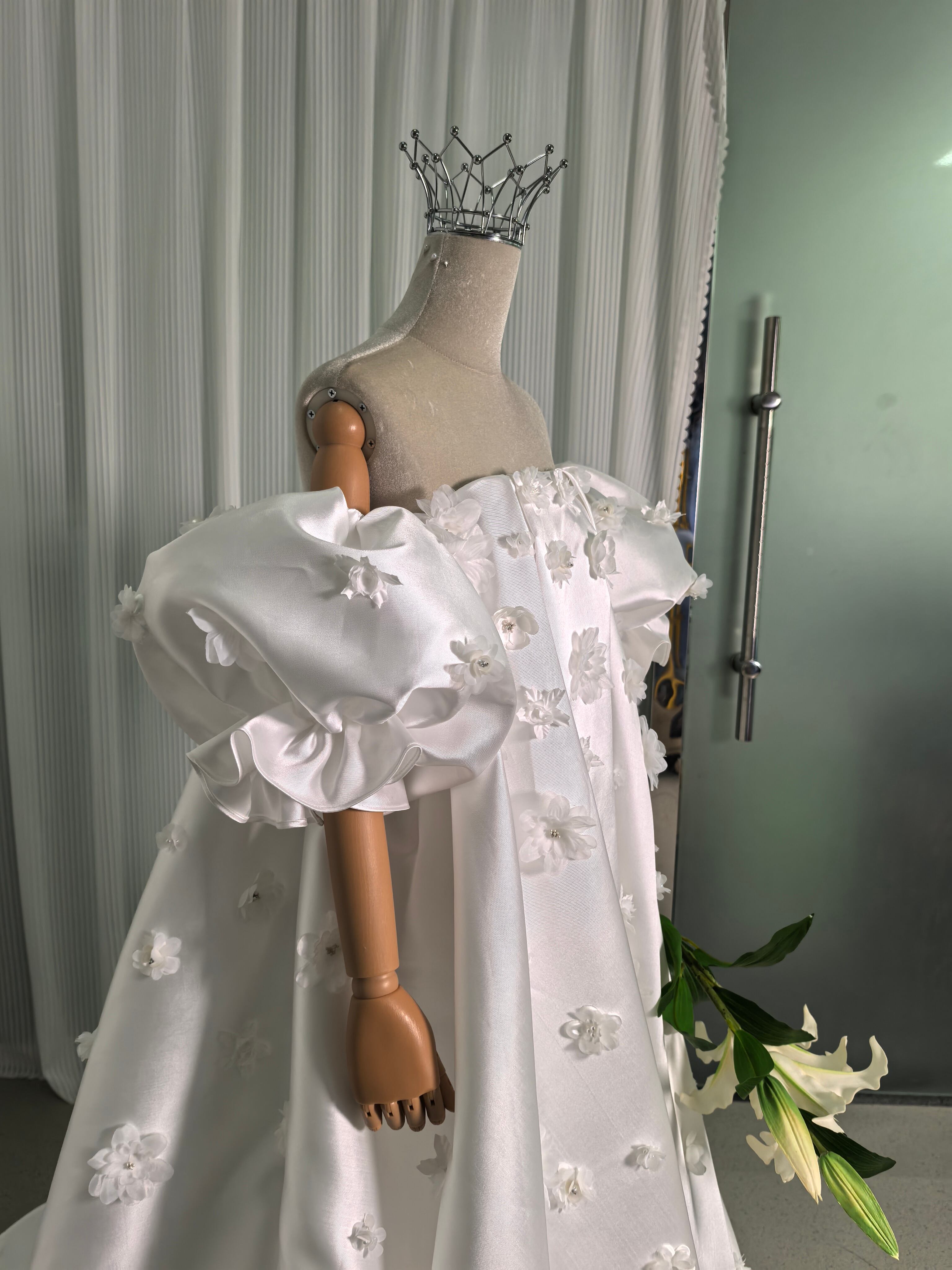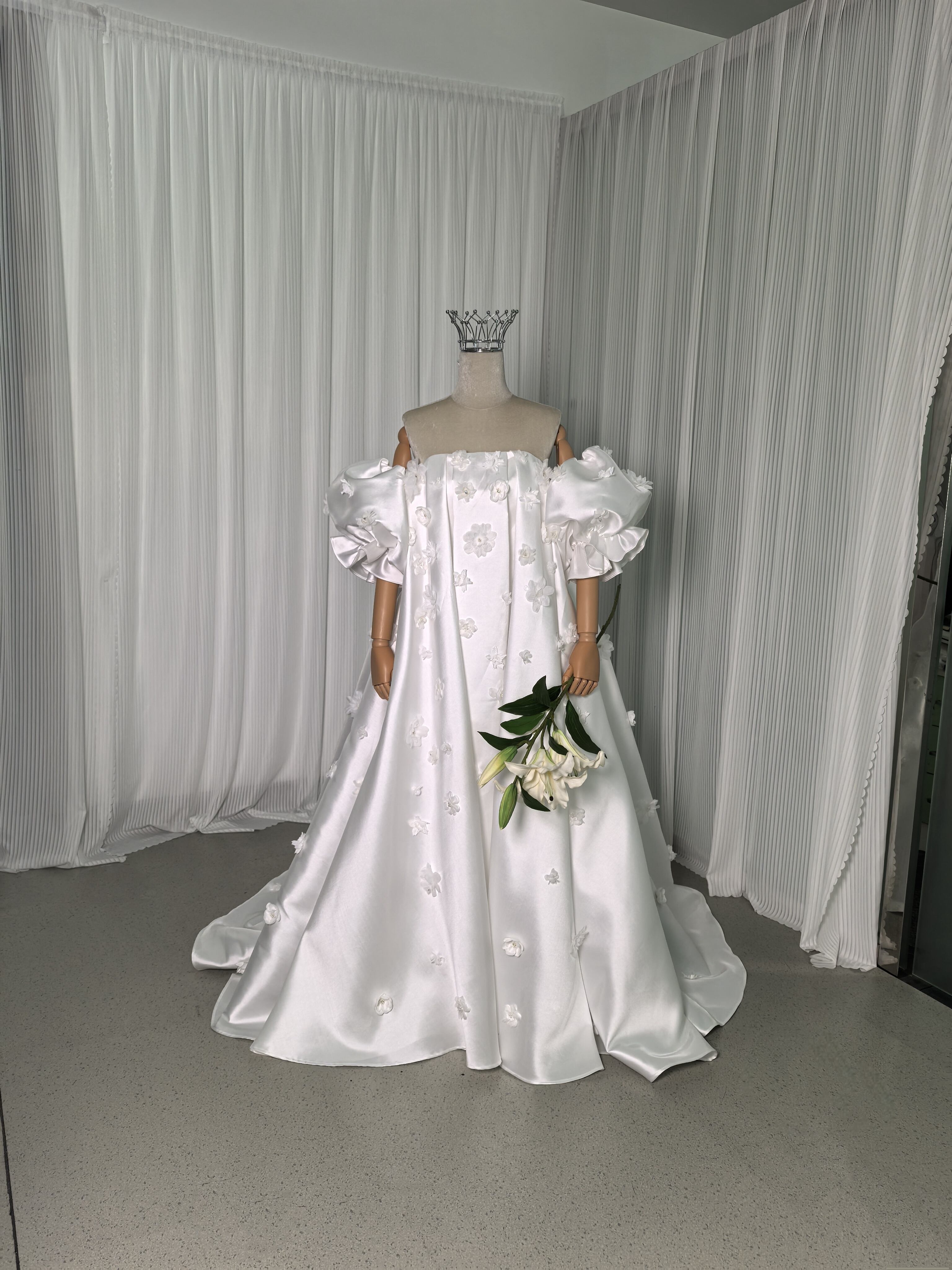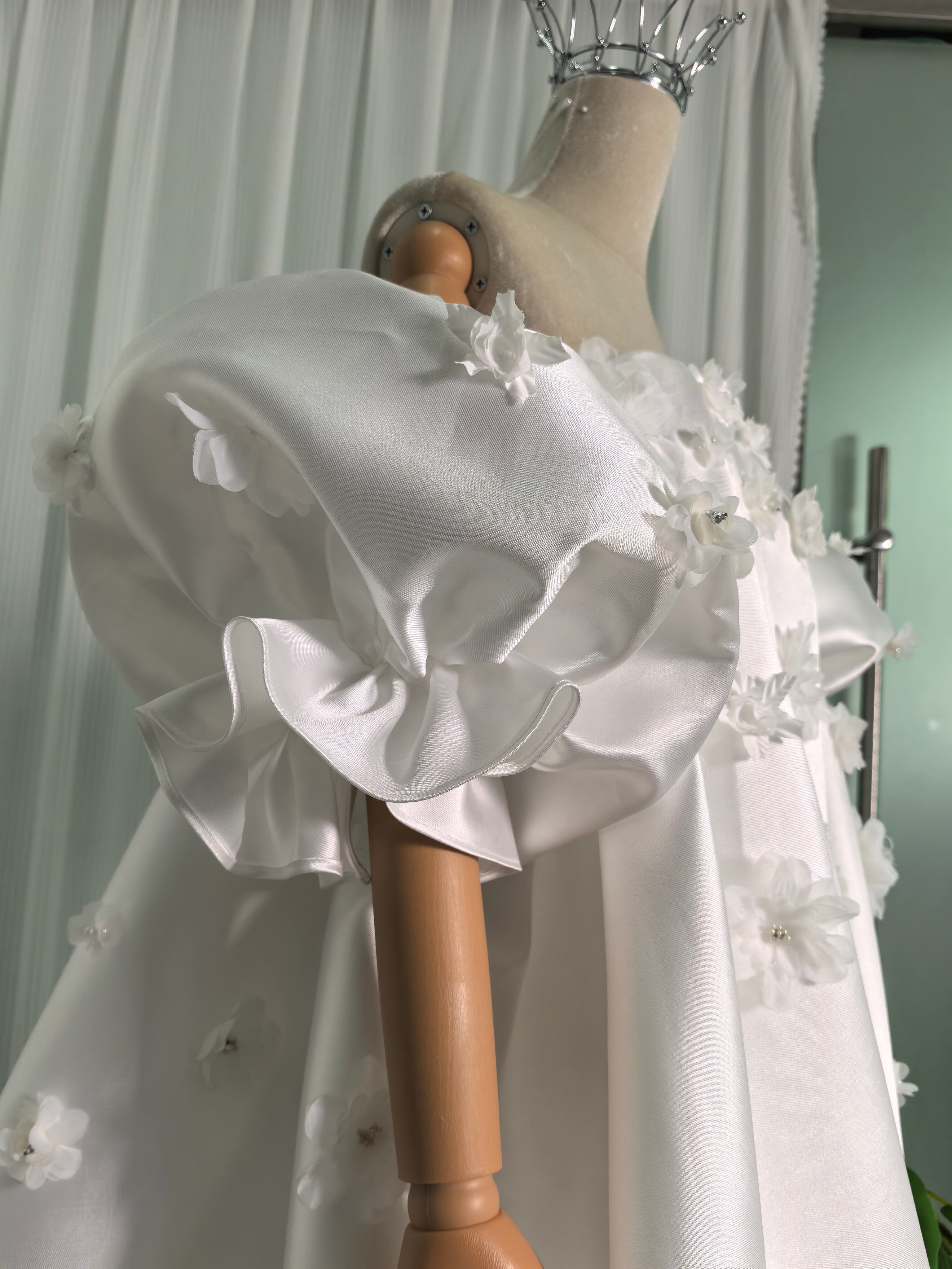 輝きな光彩を放つ ベアトップ オフホワイト 花モチーフ ウエディングドレス 取り外し袖 優雅 マタニティドレス 花嫁 結婚式/前撮り