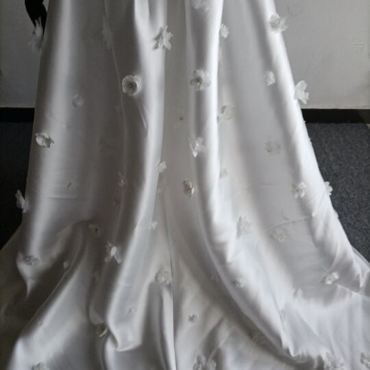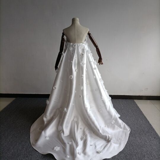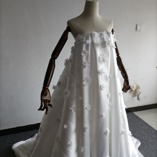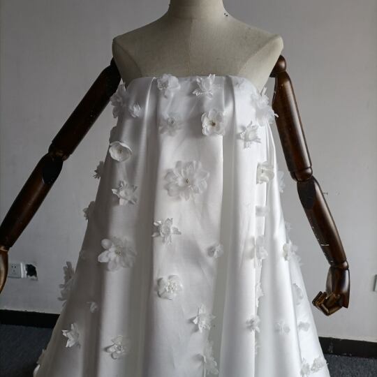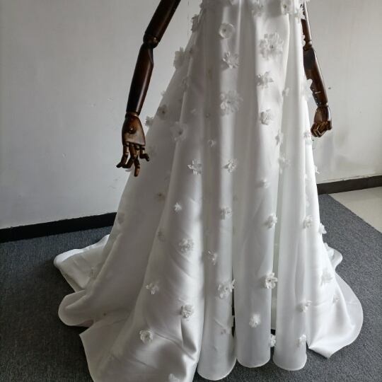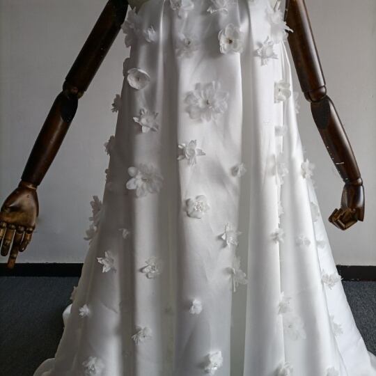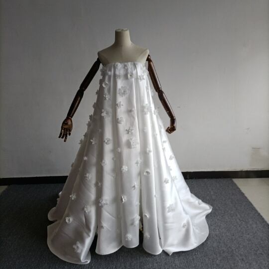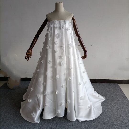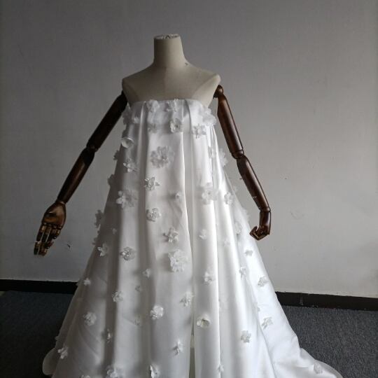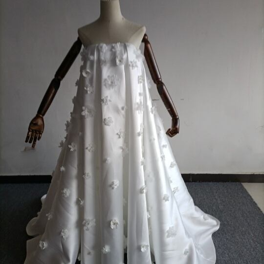 輝きな光彩を放つ ベアトップ オフホワイト 花モチーフ ウエディングドレス 優雅 ハンド花嫁 豪華 結婚式/前撮り