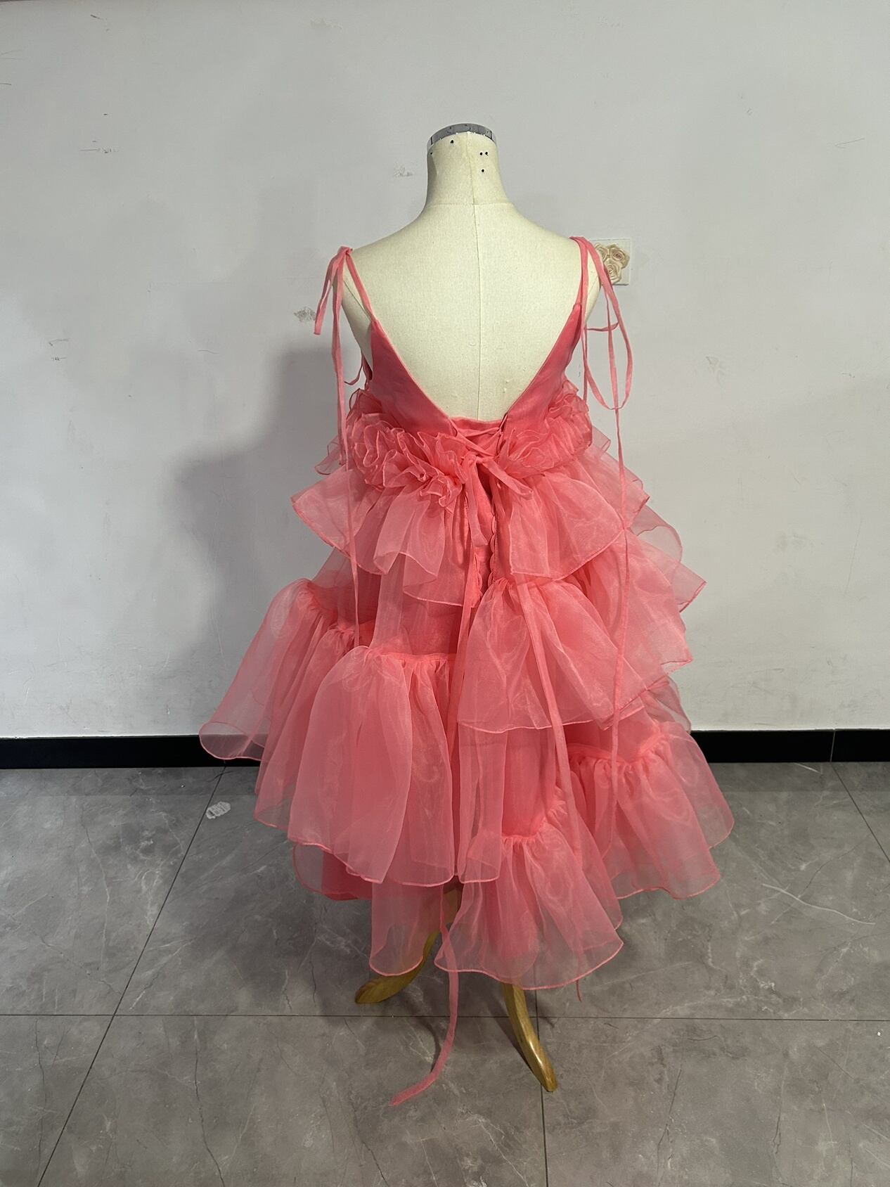 美品!キャミソール ピンクオレンジ色 カラードレス オーガンジー生地 ミニドレス ダンスドレス コンサート パーティードレス 結婚式/披露宴/前撮り | David1021k Dress(ダヴィドレス)