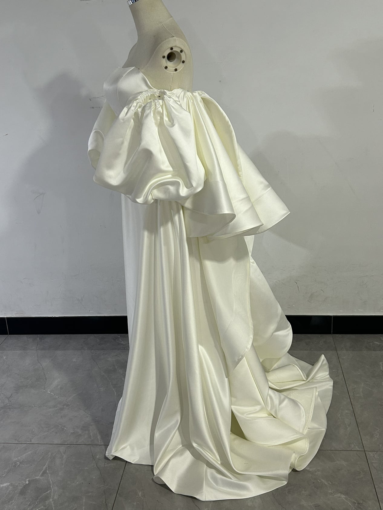 高級サテン アイボリーカラードレスふっくら柔らかなバックリボン /花嫁/結婚式/披露宴/