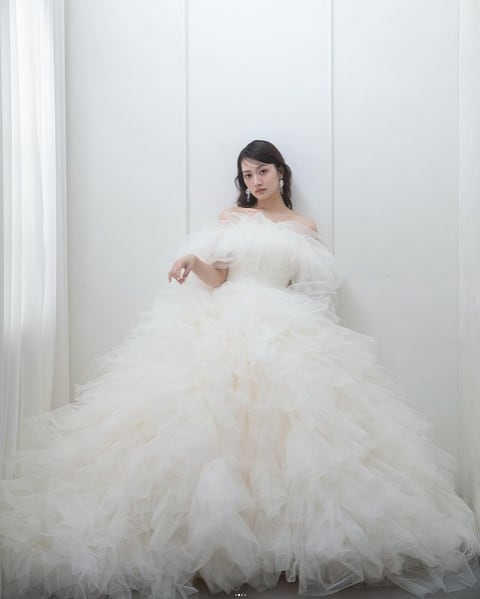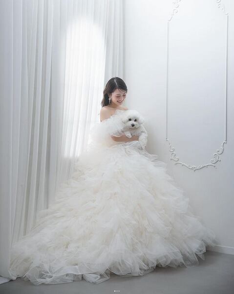 豪華!美品!もこもこウエディングドレス 柔らかく重ねたチュールドレス 韓国風ボリュームドレス オフショルダー ボリューミー エレガント 花嫁/挙式/前撮り/結婚式/披露宴