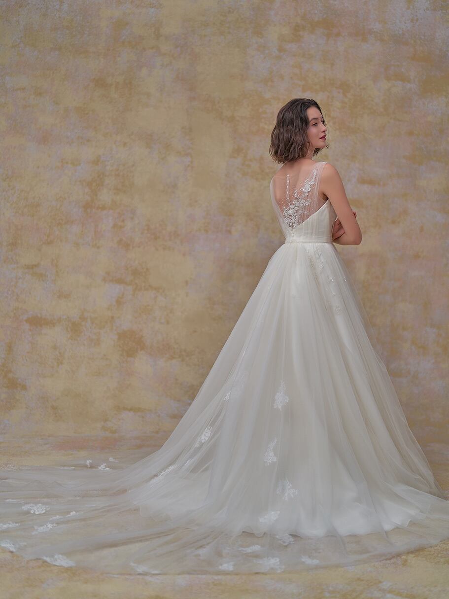 豪華!美品!ウエディングドレス オフホワイト ノースリーブ Aライン キラキラレース ロングトレーン ハンドメイド エレガント 花嫁/挙式/前撮り/結婚式/披露宴 | David1021k Dress(ダヴィドレス)