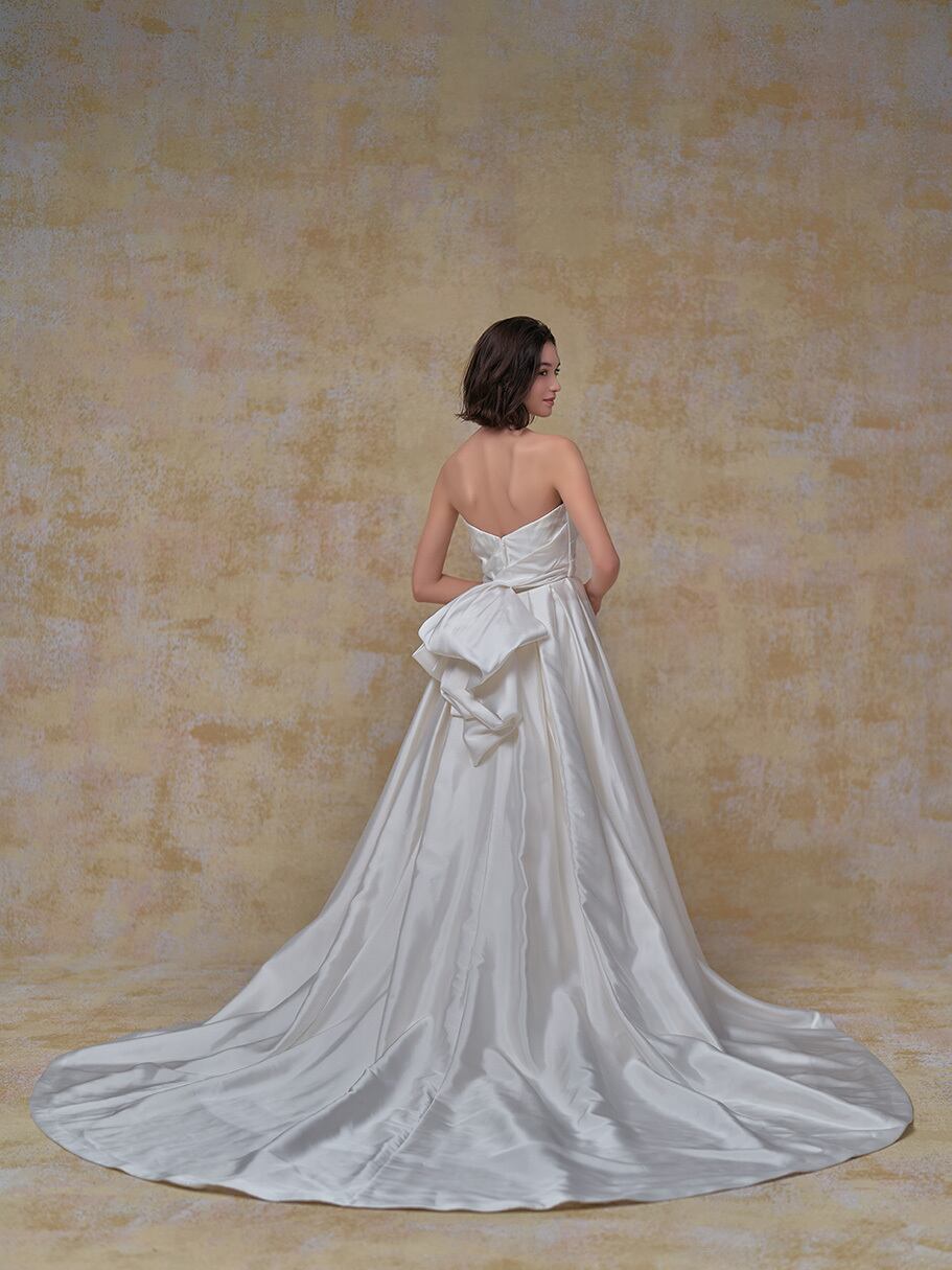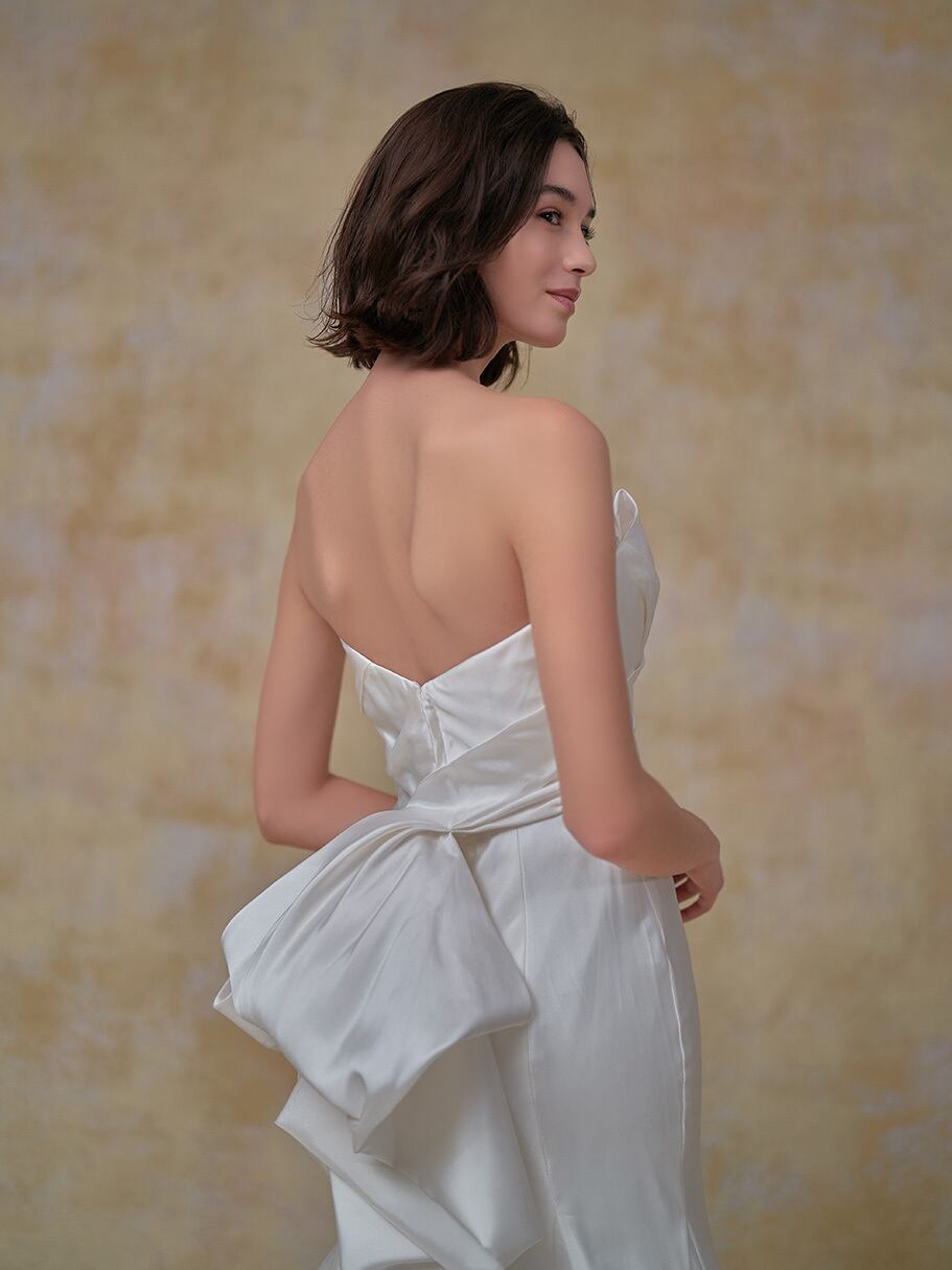 豪華!美品!ウエディングドレス オフホワイト マーメイドライン 光沢サテン バックリボン オーバースカート ロングトレーン ハンドメイド エレガント 花嫁/挙式/前撮り/結婚式/披露宴 | David1021k Dress(ダヴィドレス)