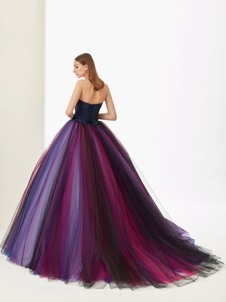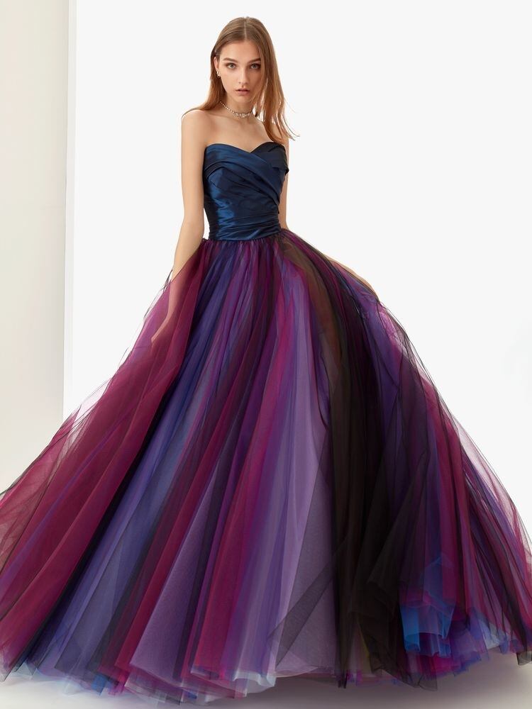 ゴージャス!美品!カラードレス パープル/紫 ネイビーブルー グラデーション パーティードレス ビスチェ ダンスドレス トレーン コンサート ステージ演出 花嫁/挙式/前撮り/結婚式/披露宴 | David1021k Dress(ダヴィドレス)