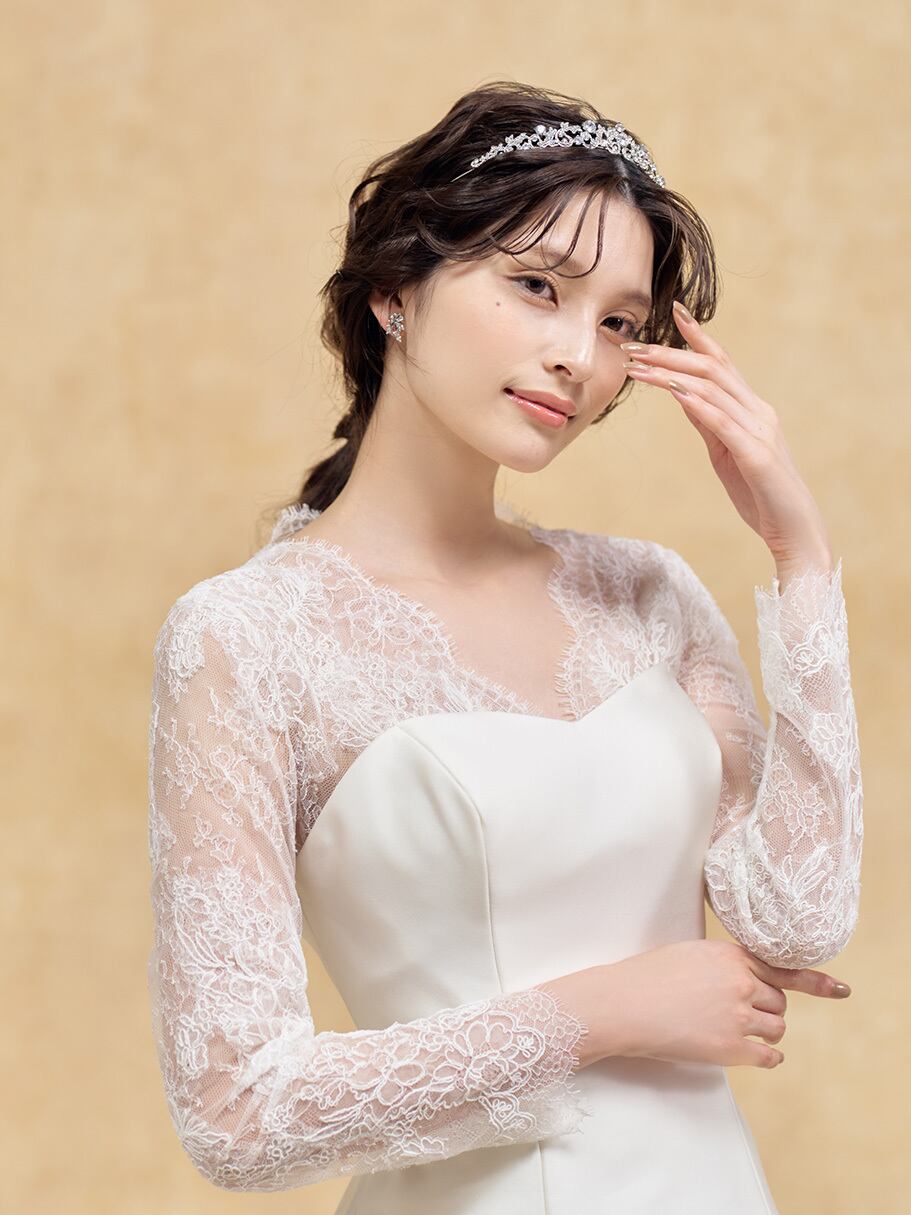 ゴージャス!美品!ウエディングドレス Aラインドレス 上品レースボレロ 長袖 パーティードレス エレガント ロングトレーン 花嫁/海外挙式/前撮り/結婚式/披露宴 | David1021k Dress(ダヴィドレス)
