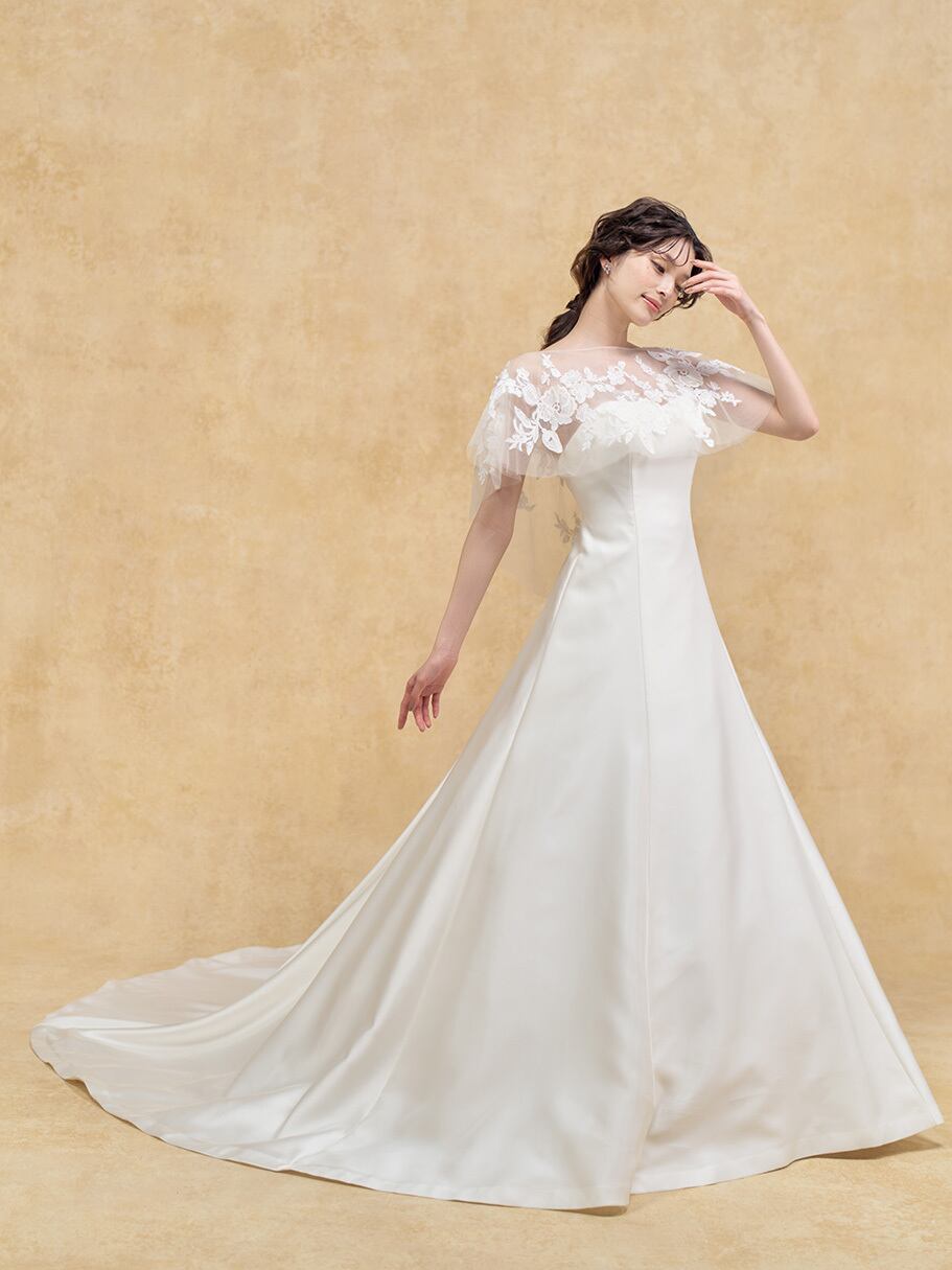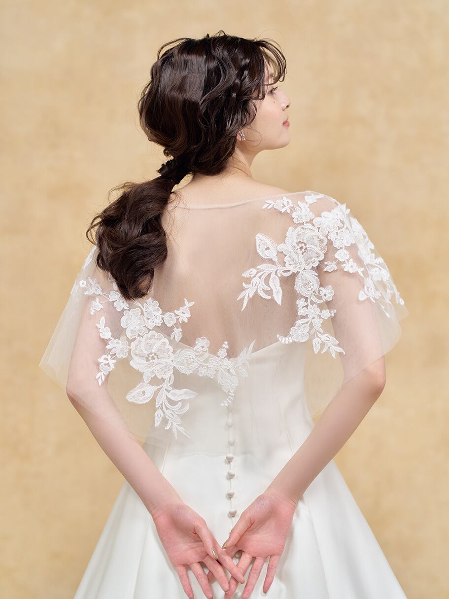 ゴージャス!美品!ウエディングドレス Aラインドレス 上品レーストップス ケープ 花モチーフ刺繡 エレガント ロングトレーン 花嫁/海外挙式/前撮り/結婚式/披露宴 | David1021k Dress(ダヴィドレス)