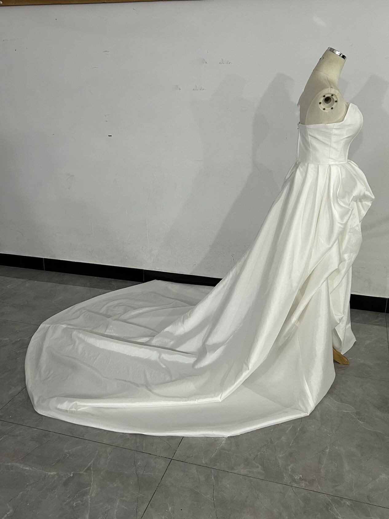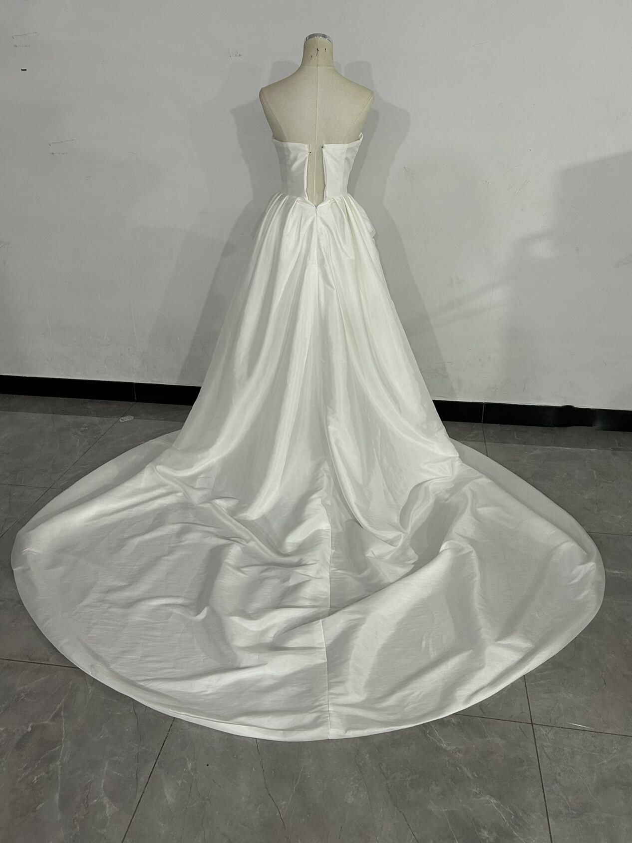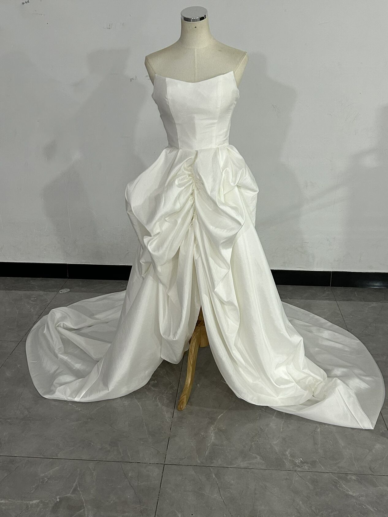 上品!2WA ベアトップ オフホワイト シルクタフタ ウエディングドレス ショートインロングドレス結婚式/披露宴/前撮り