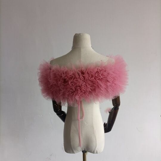 ウエディングドレス オフショルダー お色直し サイズ調整可能 ふわふわ襟 二の腕カバー カラードレス