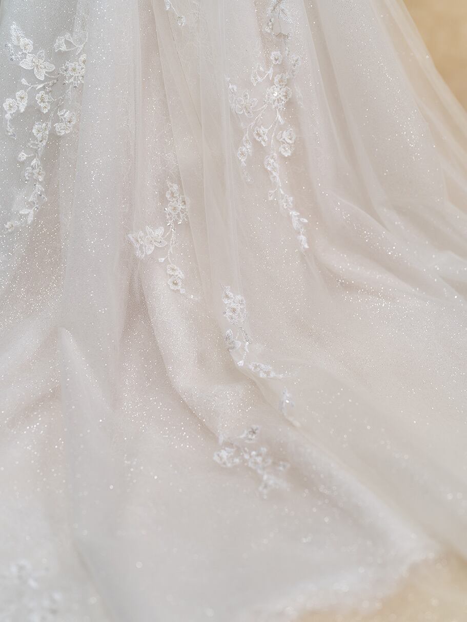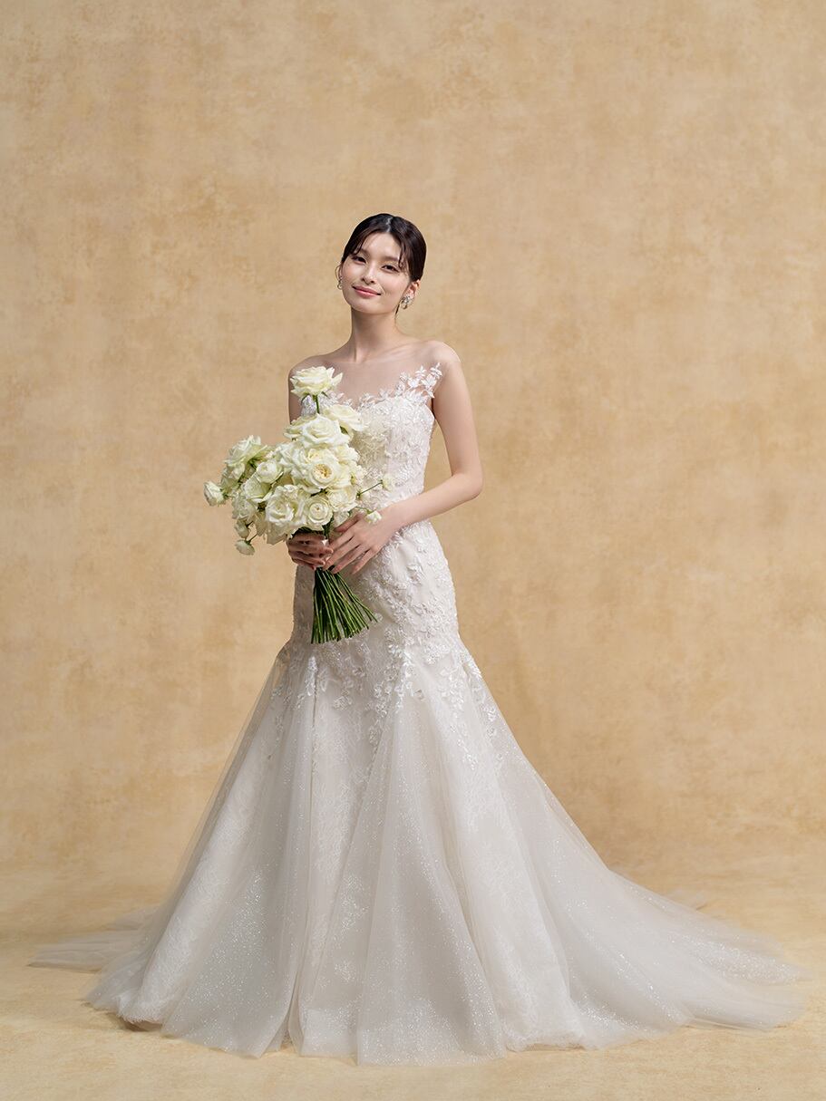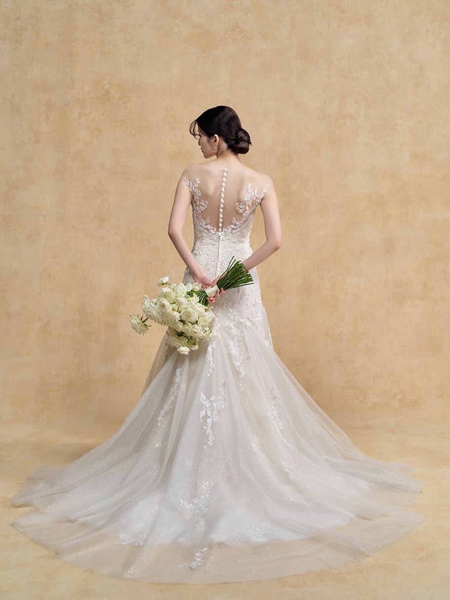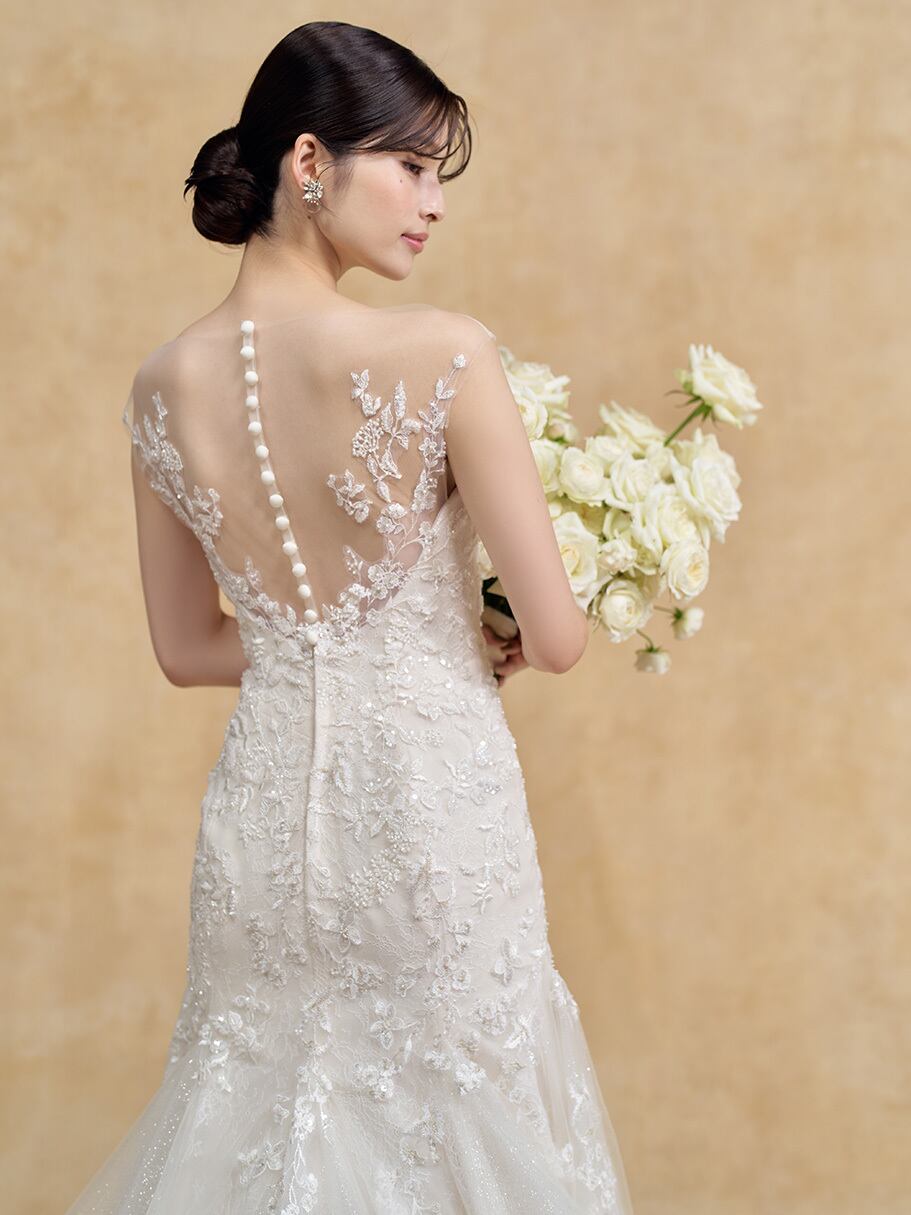 美品!ウエディングドレス ノースリーブ 花モチーフ刺繡【ドレスオーダーメイド】マーメードドレス 繊細レースドレス 優雅なシルエット キラキラグリッターチュール エレガント ロングトレーン 花嫁/海外挙式/前撮り/結婚式/披露宴