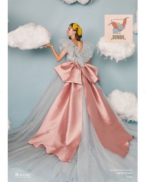 美品!オーダーメイド!3WAY水色カラードレス ブルー/青 Vネック 半袖 キラキラグリッターチュール 取り外しバックリボン ロングトレーン パーティードレス コンサート 花嫁/前撮り/結婚式/披露宴
