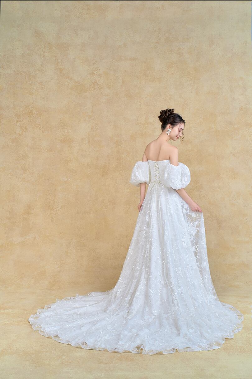 人気上昇!ウエディングドレス Aラインドレス パフスリーブ 付け袖 繊細レースドレス キラキラスパコール ストレートライン ロングトレーン エレガント かわいい 花嫁/海外挙式/前撮り/結婚式/披露宴 | David1021k Dress(ダヴィドレス)