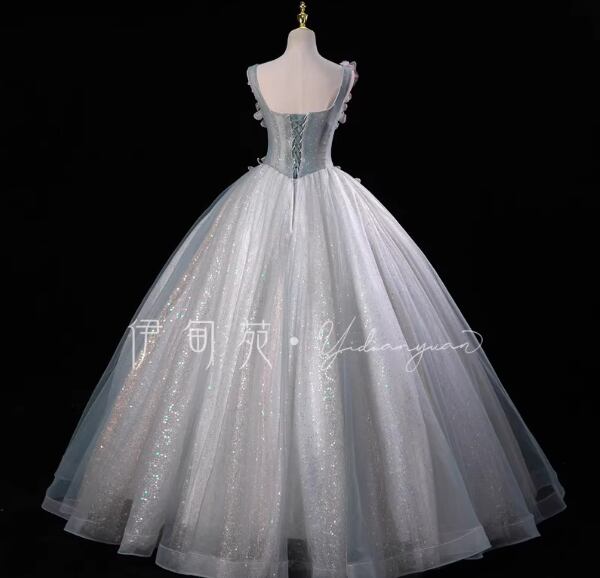 新品!美品!パーティードレス ウエディングドレス 花びらのカラードレス ホワイト 3D立体レース刺繍 ノースリーブ キャミソール Aラインドレス ロング キラキラグリッターチュール 写真撮影 花嫁/前撮り/披露宴 | David1021k Dress(ダヴィドレス)
