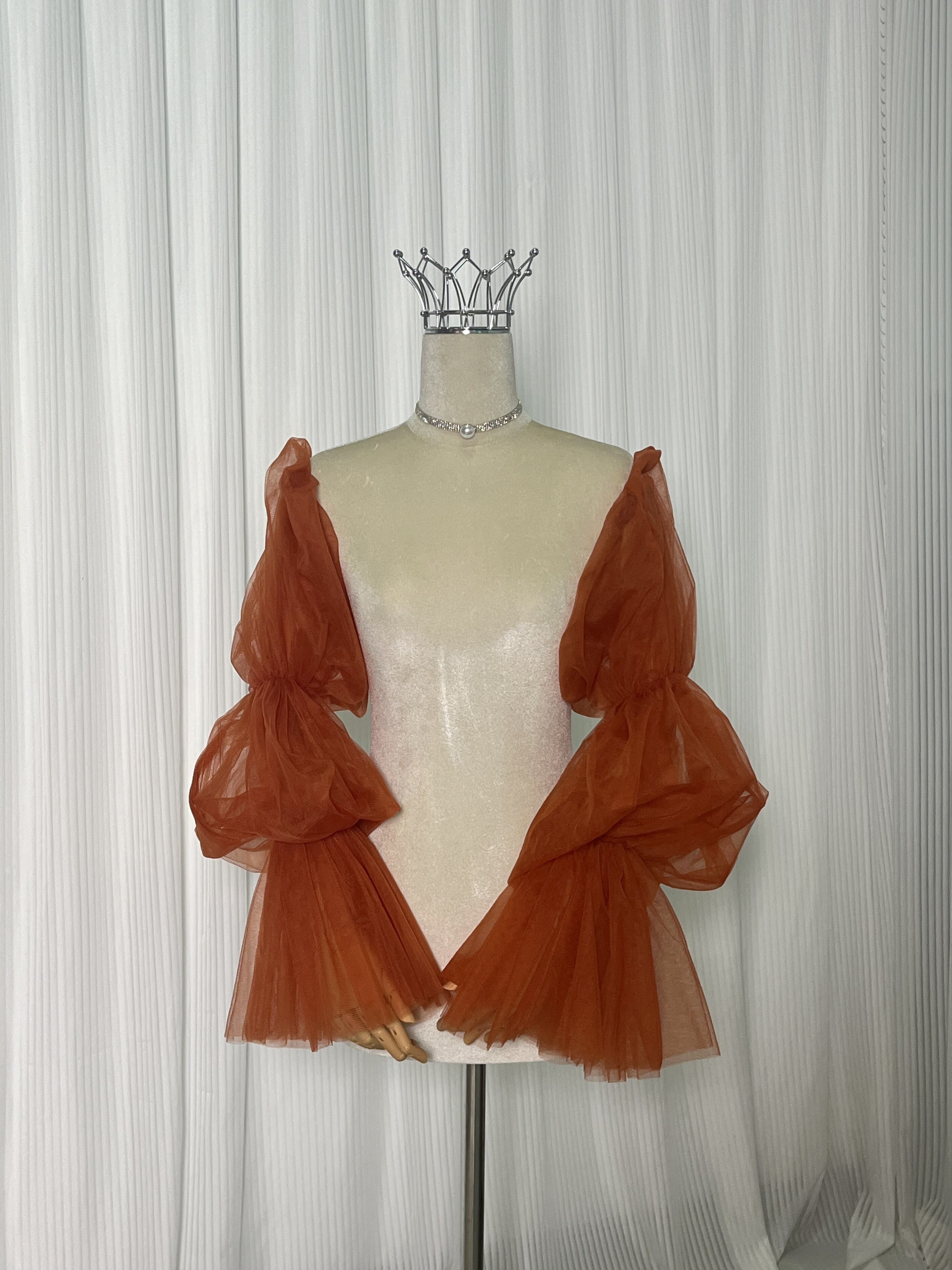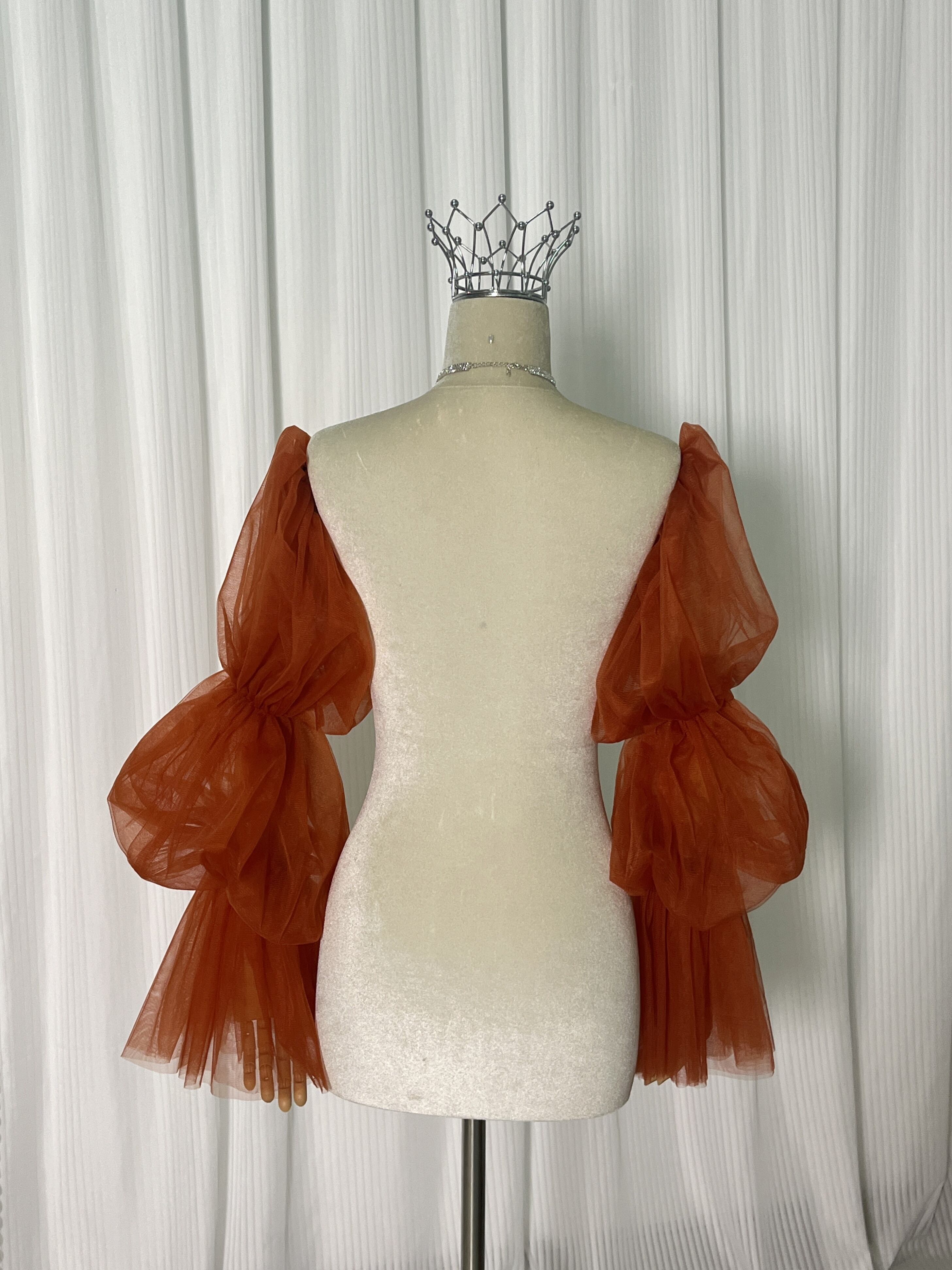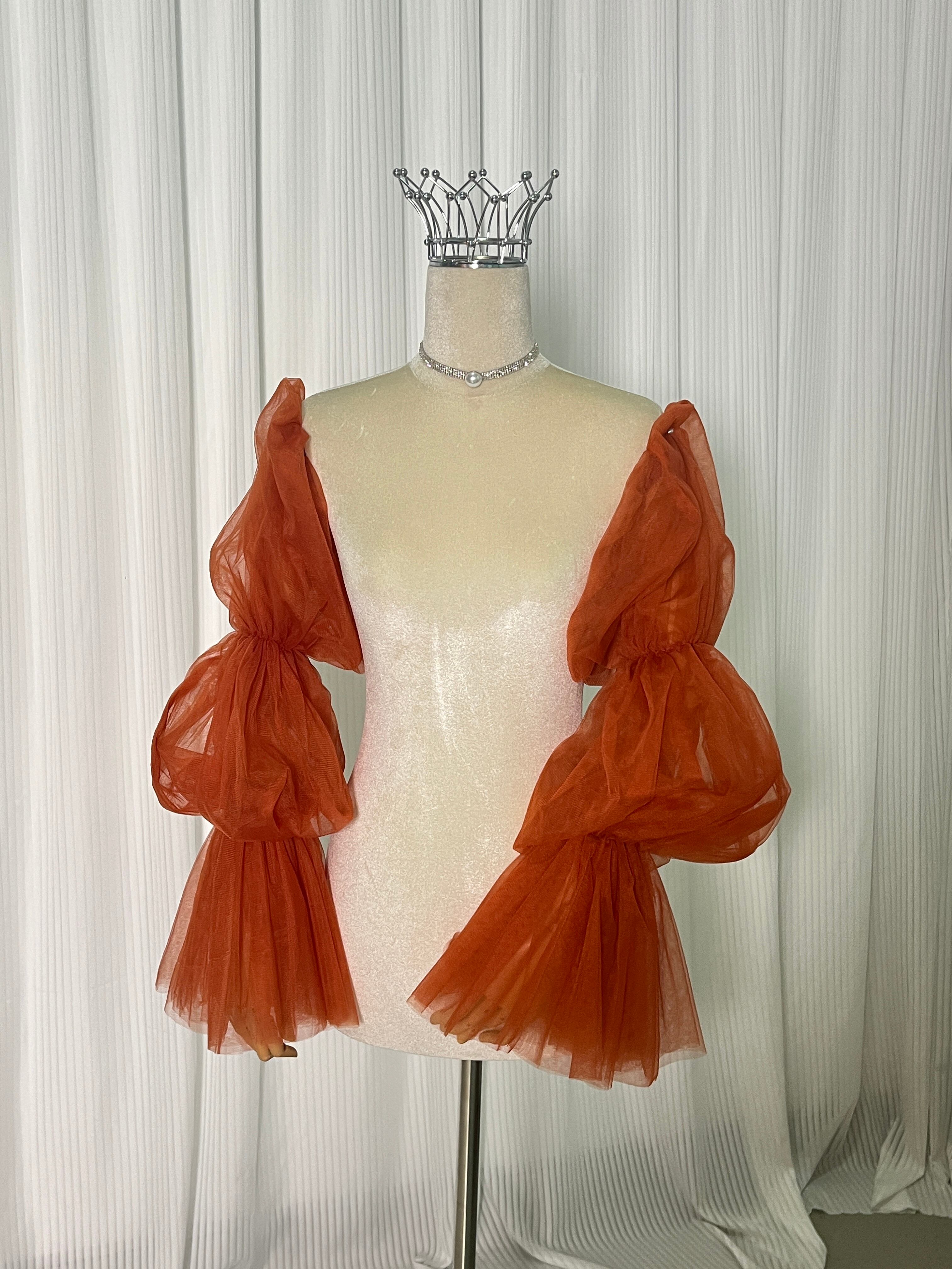 大人気上昇 オレンジ ワインレッド ボブスリーブ 取り外し袖 ショルダーの付け袖 パフスリーブ オーダー可能 二の腕を隠せるお袖