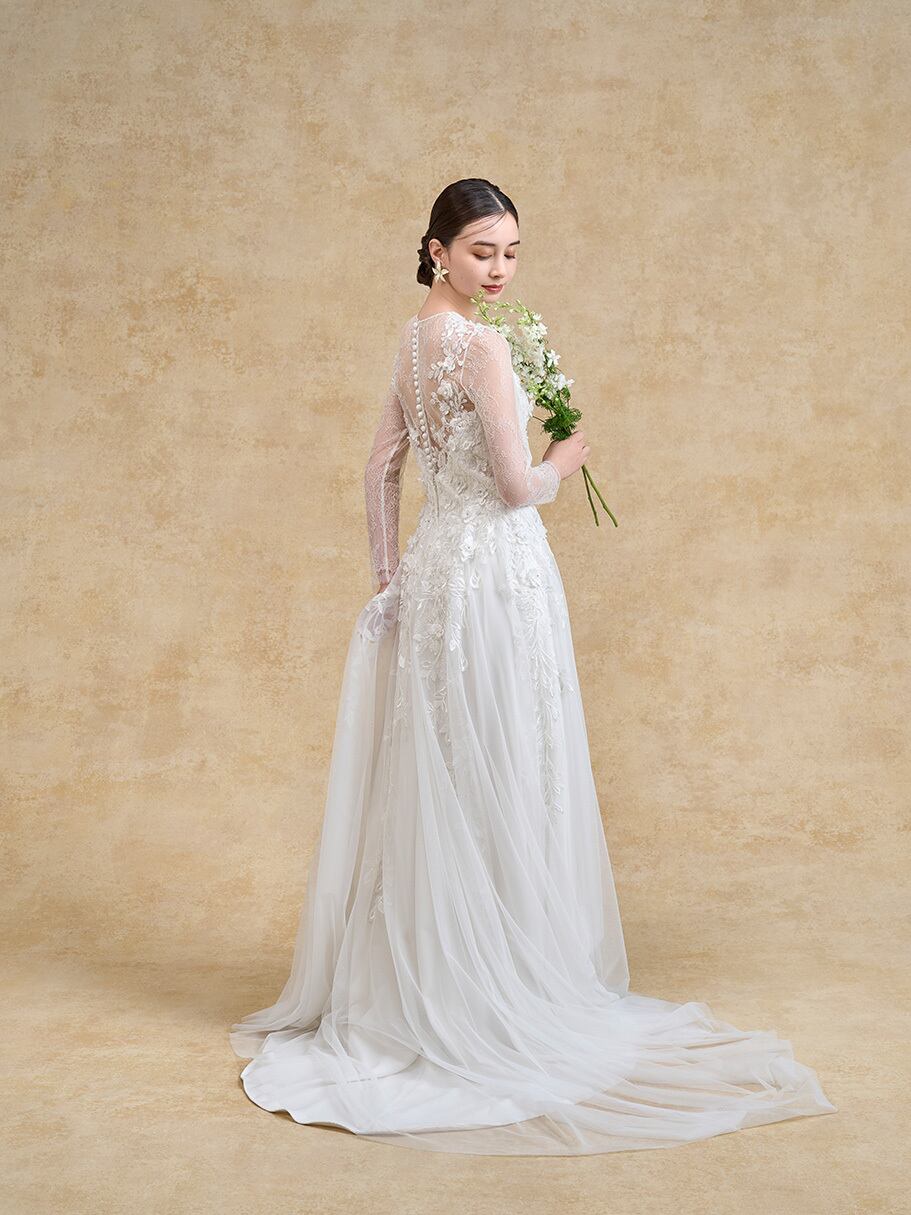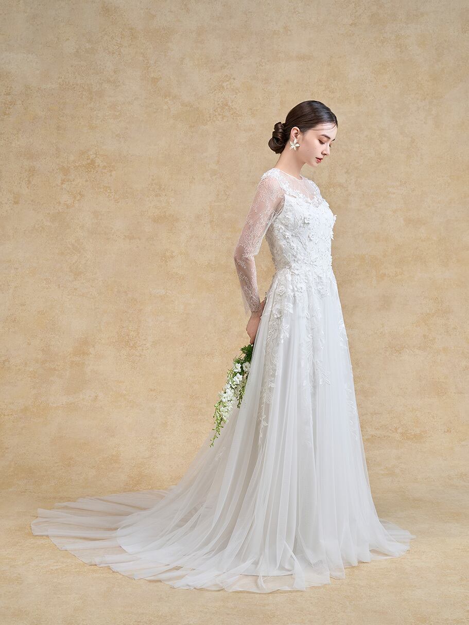 新品!人気上昇!ウエディングドレス 繊細レース Aラインドレス 3D立体レース刺繍 スレンダーライン ロングトレーン 優雅なシルエット エレガント 花嫁/挙式/前撮り/結婚式 | David1021k Dress(ダヴィドレス)