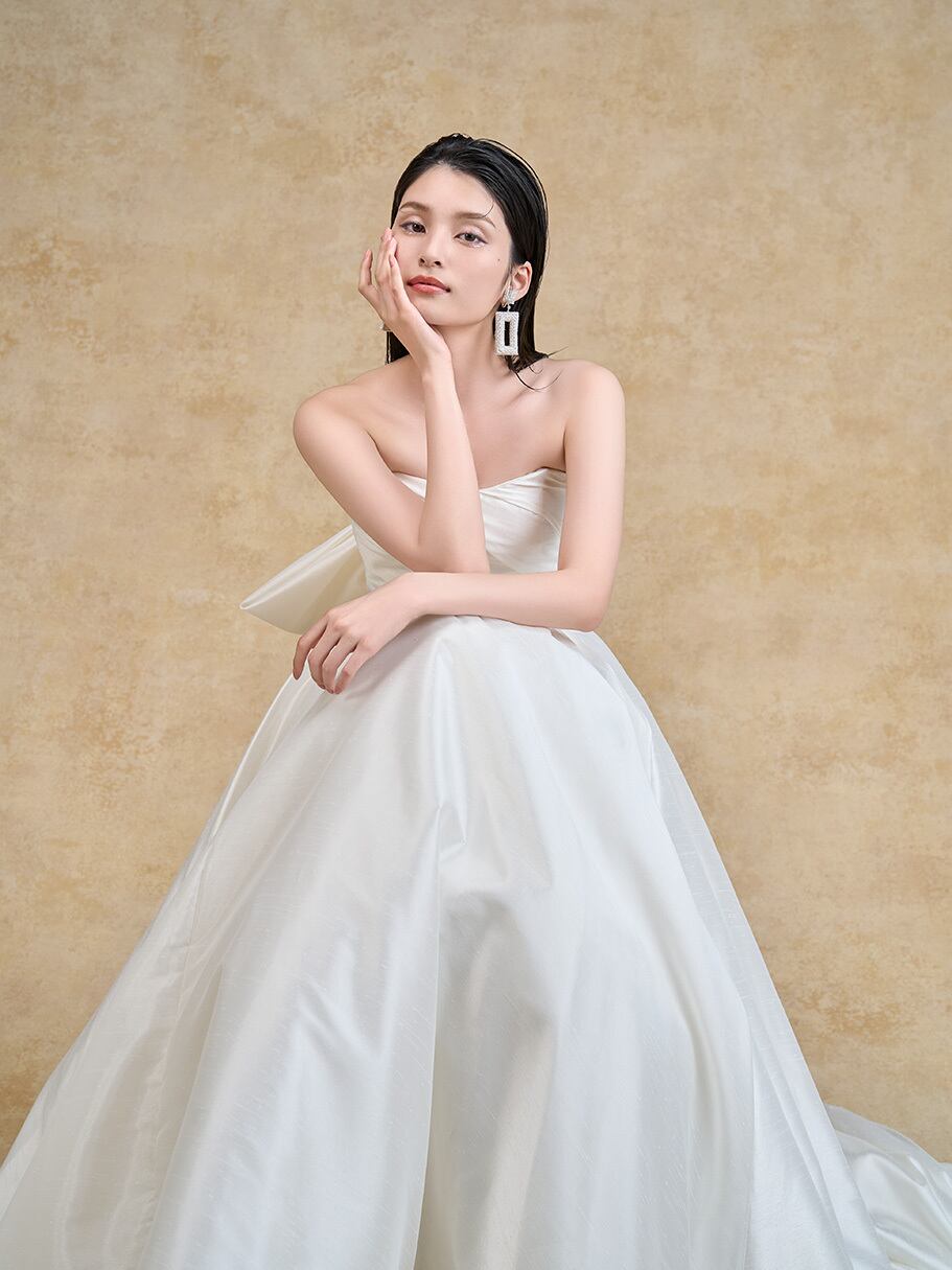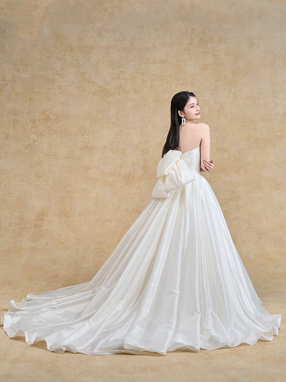 オーダーメイド!人気上昇!ウエディングドレス Aラインドレス シルクサテンドレス スレンダーライン ロングトレーン バックリボン エレガント 花嫁/挙式/前撮り/結婚式 | David1021k Dress(ダヴィドレス)