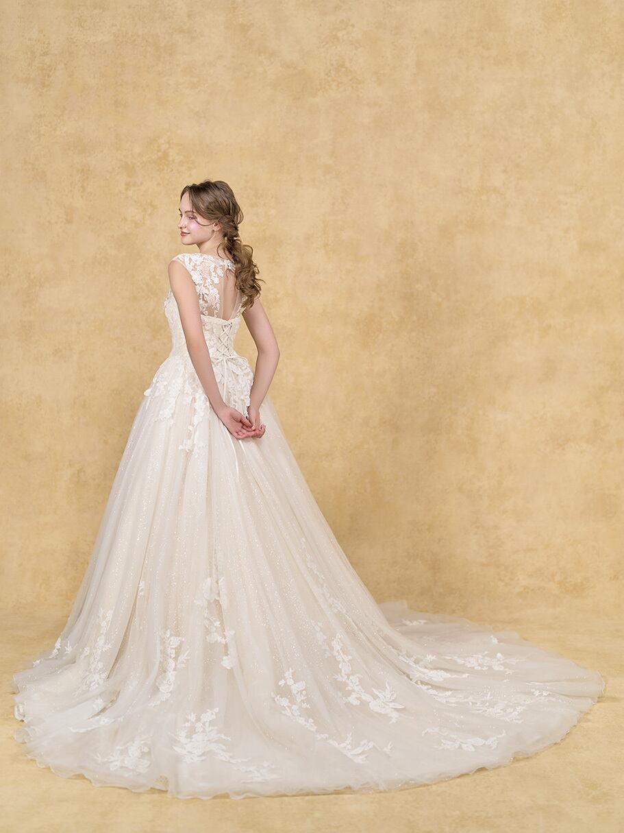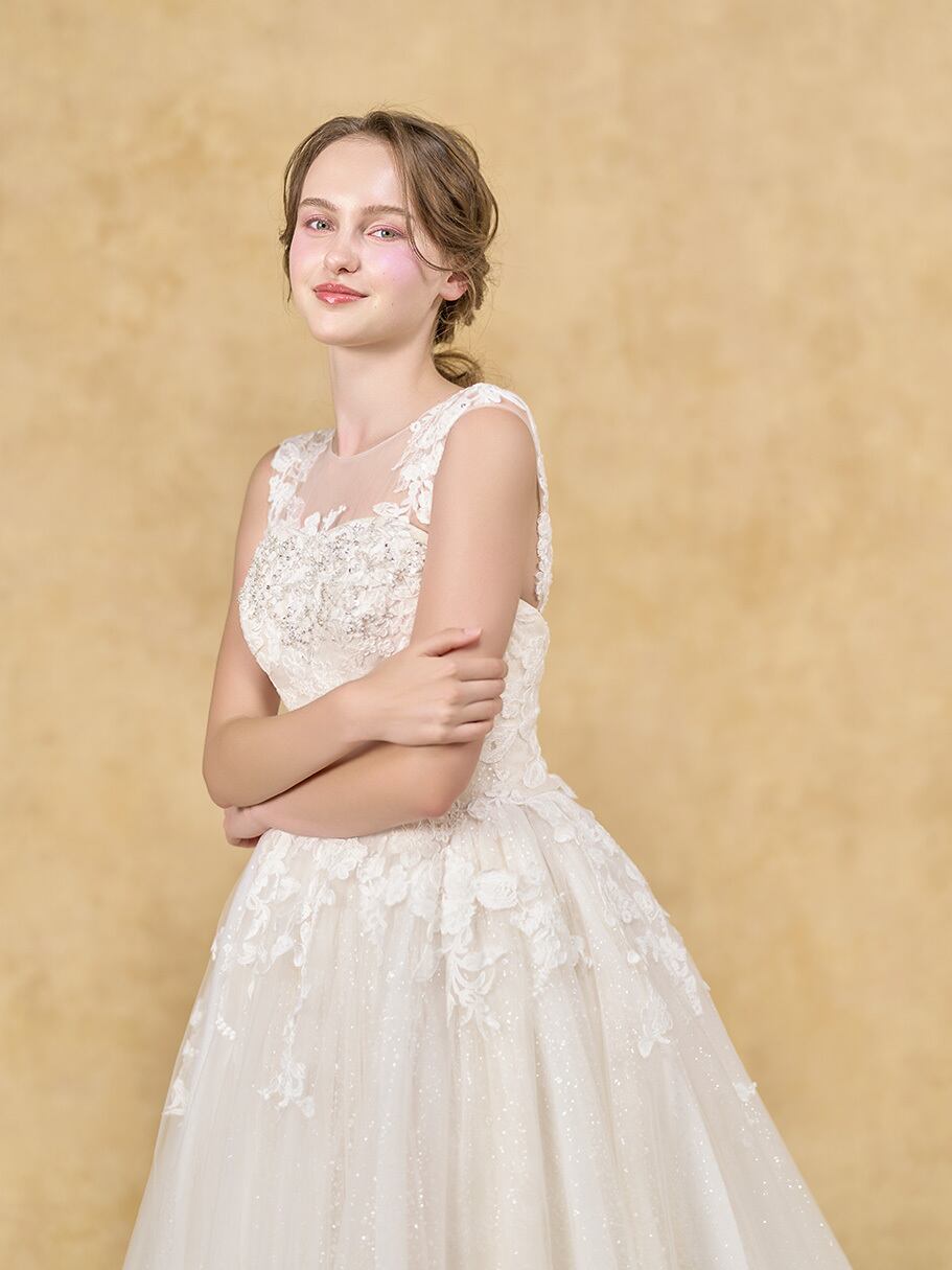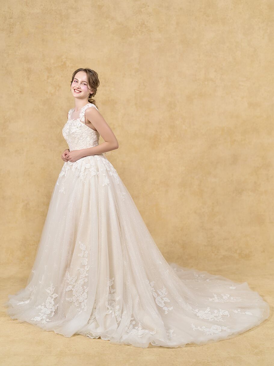 人気上昇!2WAYウエディングドレス アイボリー色/シャンパン色 繊細レースボレロ チュールドレス Aラインドレス 花モチーフ刺繡 ノースリーブ ロングトレーン 花嫁/挙式/前撮り/結婚式/披露宴 | David1021k Dress(ダヴィドレス)