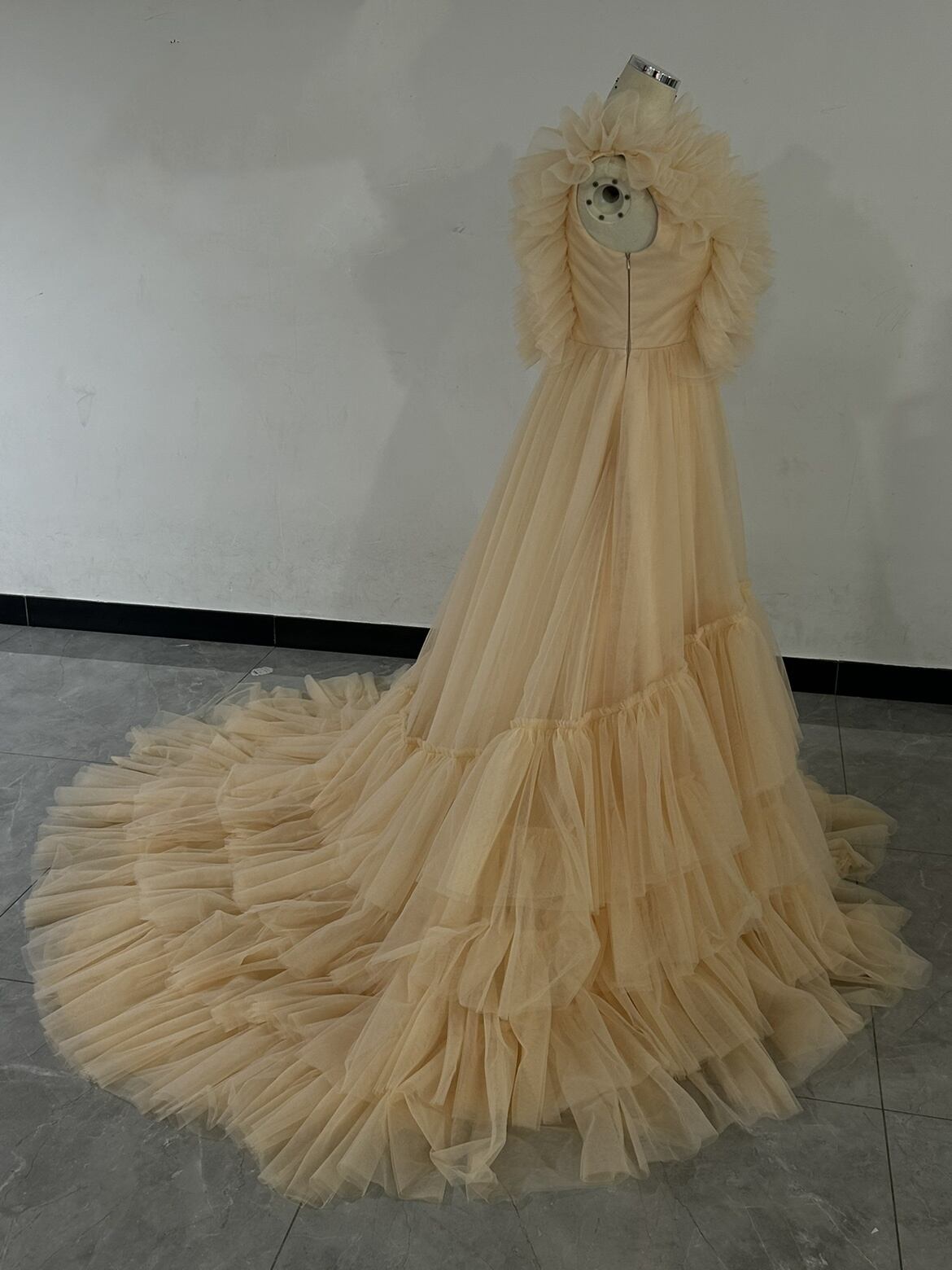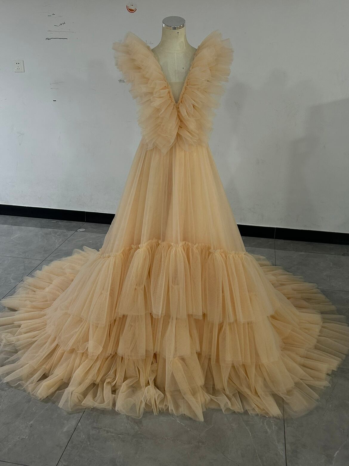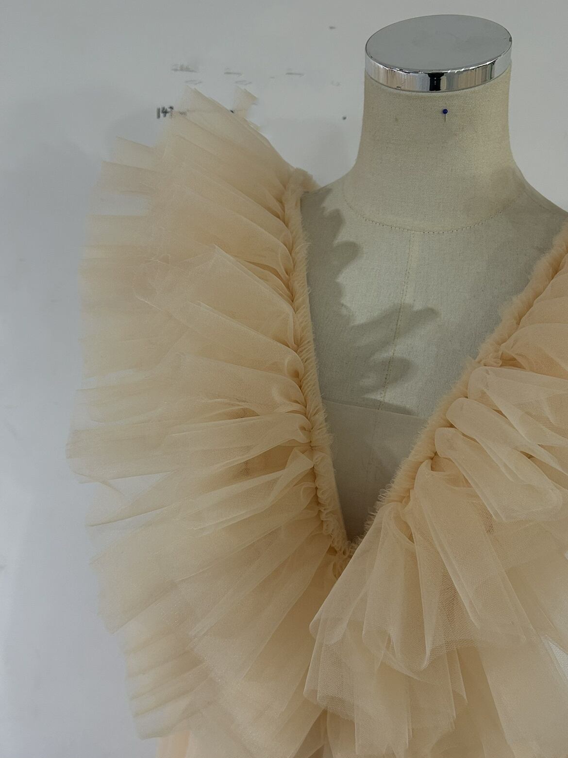カラードレス シャンパン Vネック ウエディングドレス キャミソール 柔らかく重ねたチュールスカート 花嫁/前撮り