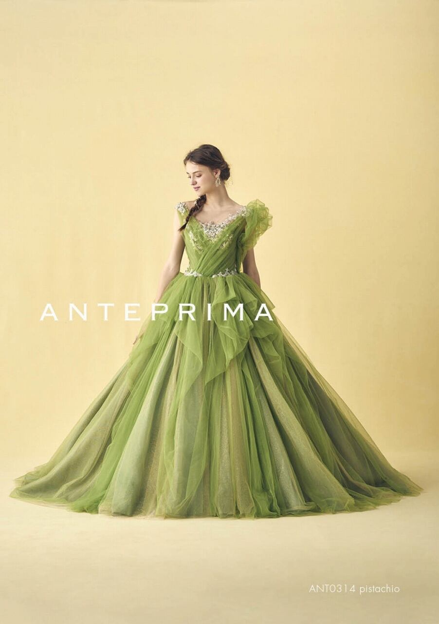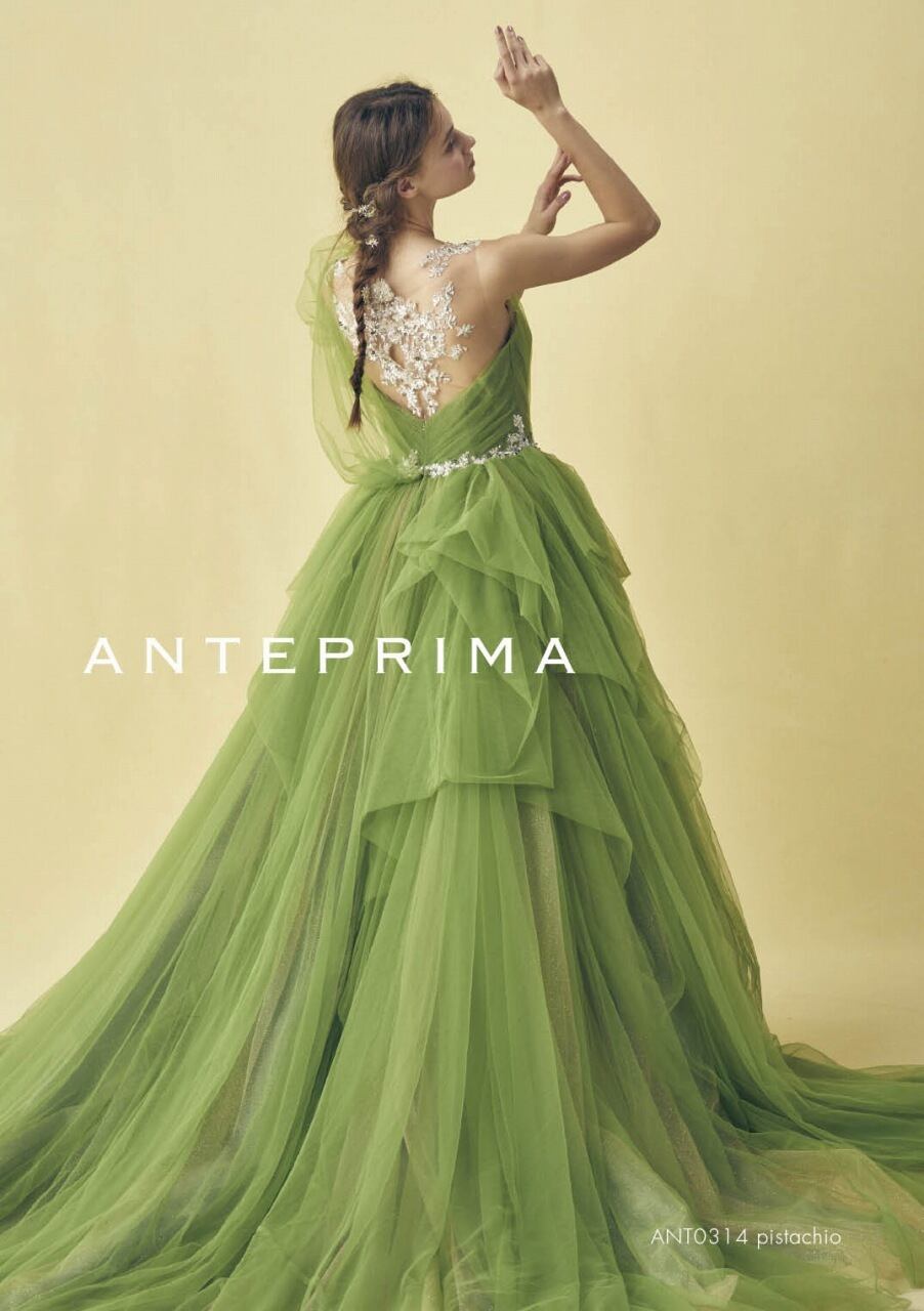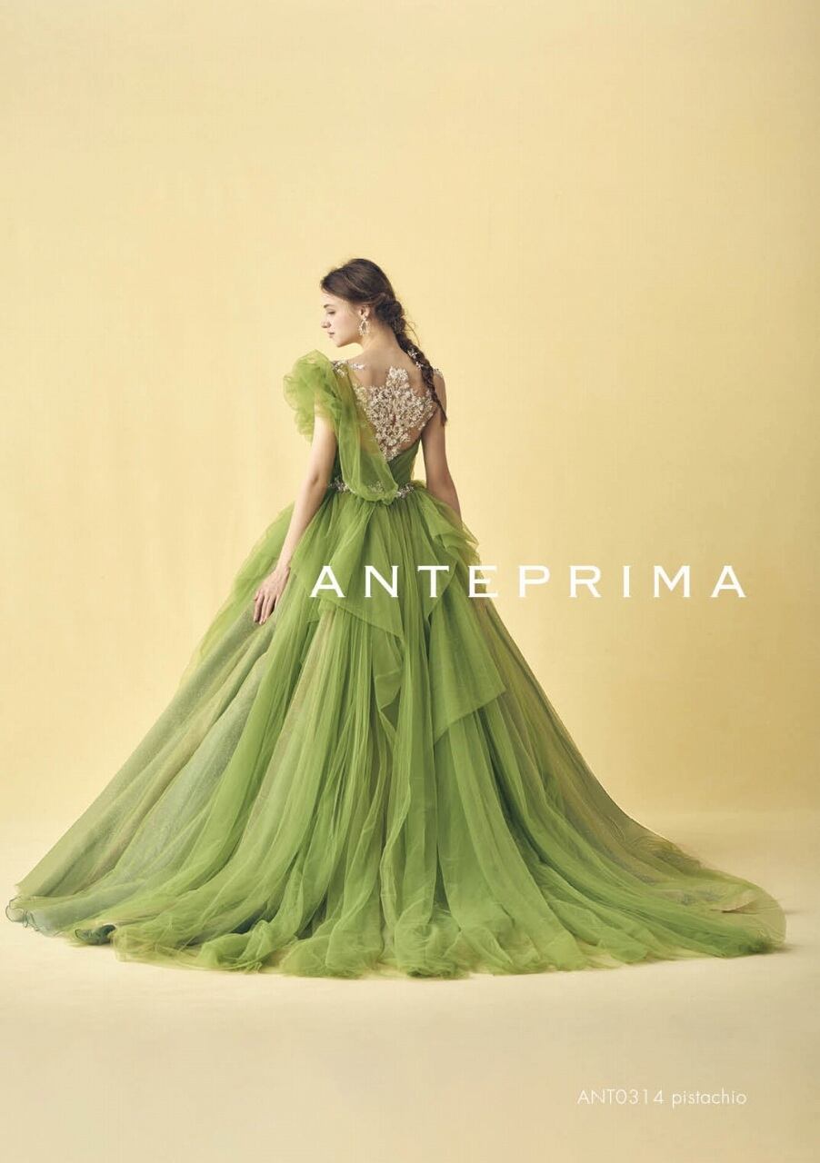 高品質!緑色カラードレス ライトグリーン フリル チュールドレス 森/フォレスト ロングトレーン お色直し フォトウエディング/前撮り【オーダーメイド】