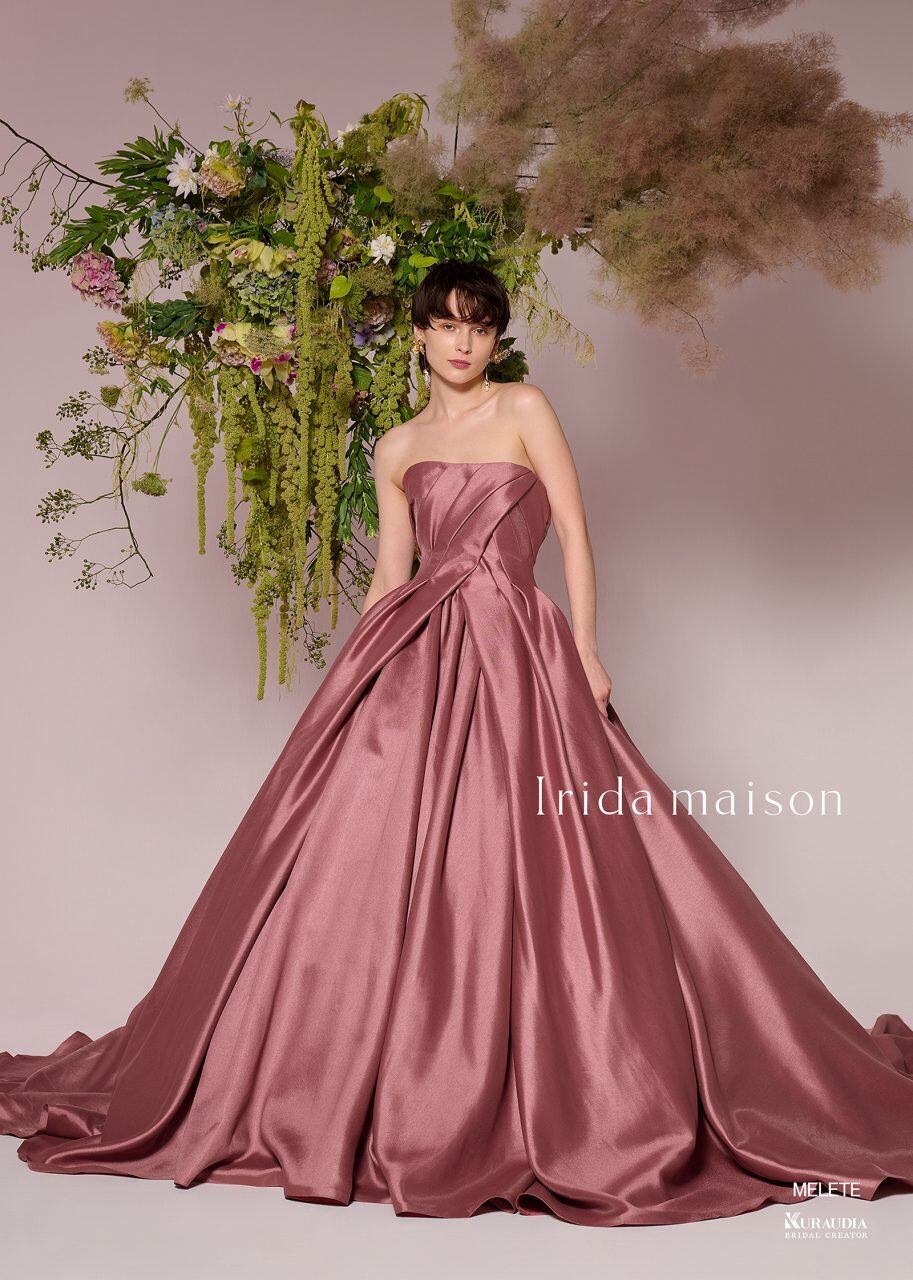 高品質!オールドローズピンク カラードレス あずきピンク シルクサテンドレス ロングトレーン ビスチェドレス 挙式/前撮り/披露宴【オーダーメイド】 | David1021k Dress(ダヴィドレス)