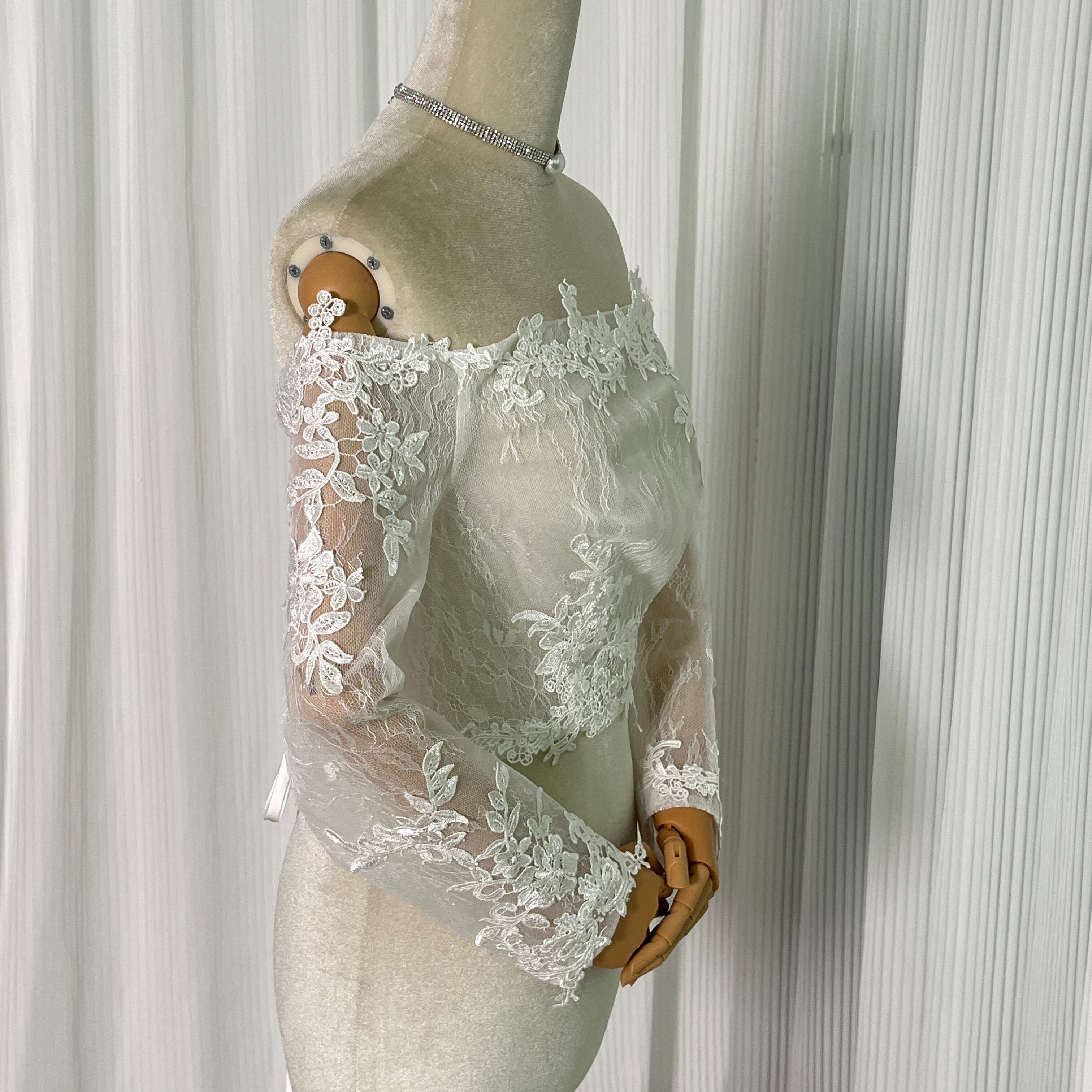 可愛い オフショルダー トップス ブラウス 上品透け袖 3D立体レース刺繍 長袖