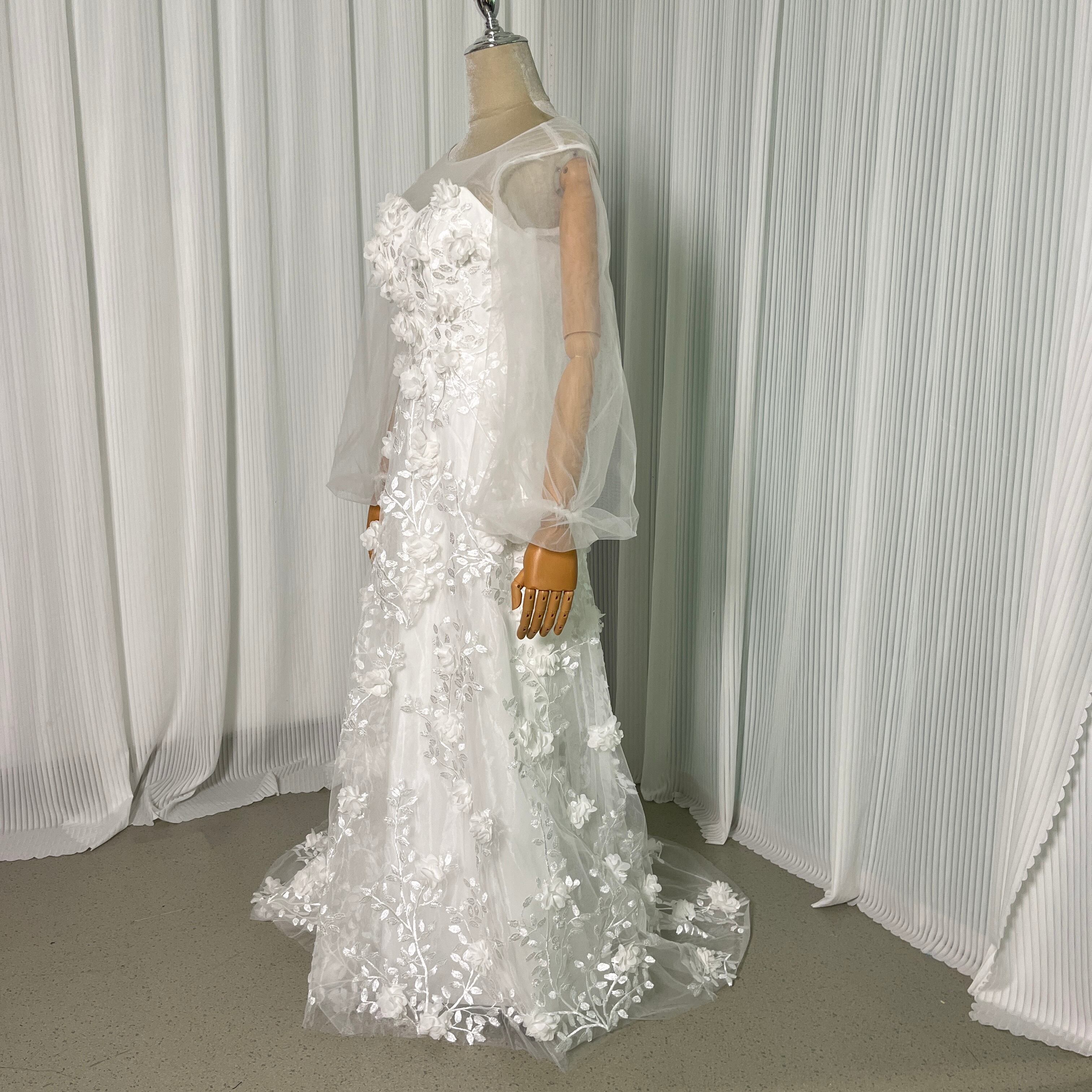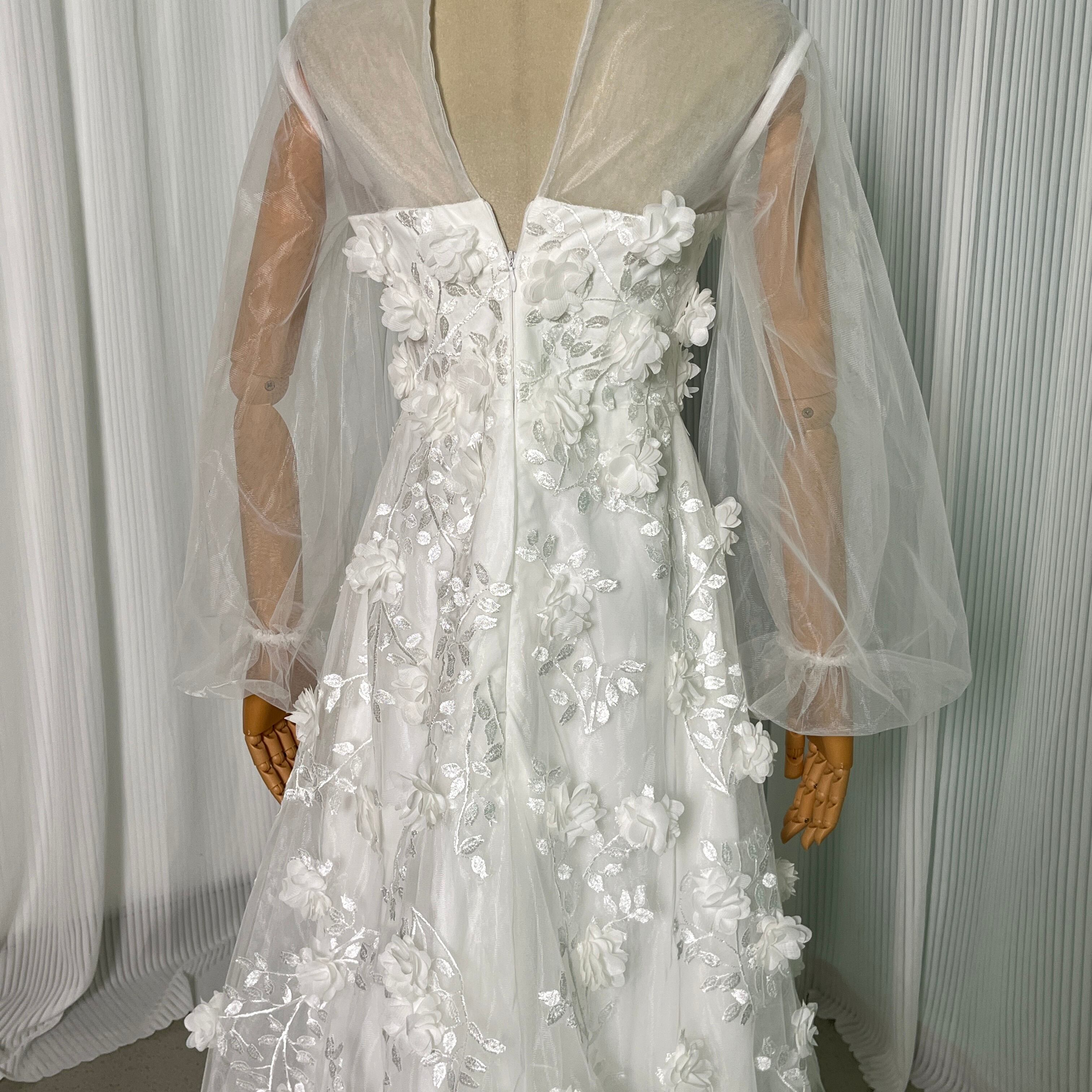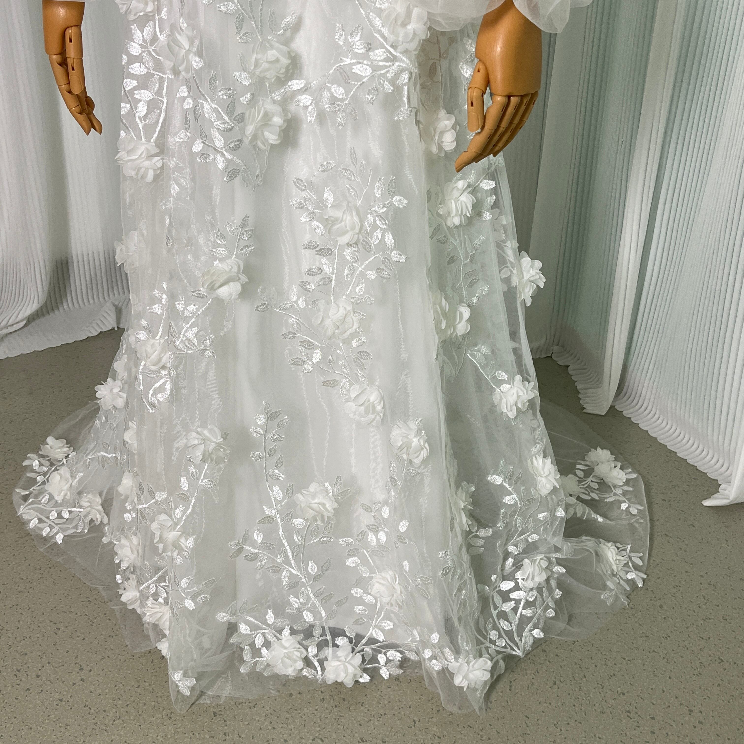 輝きな光彩を放つ ウエディングドレス ベアトップ オフホワイト 花モチーフ マタニティ ドレス 花嫁 結婚式/前撮り