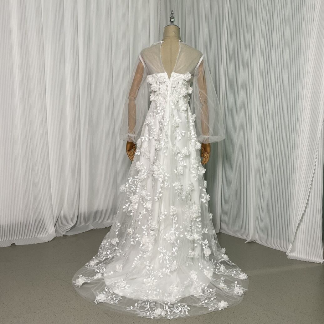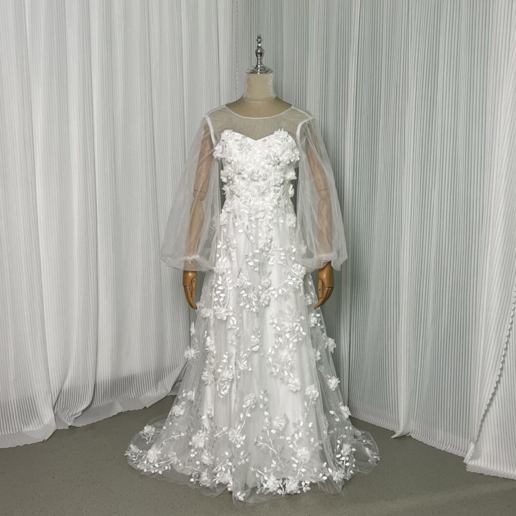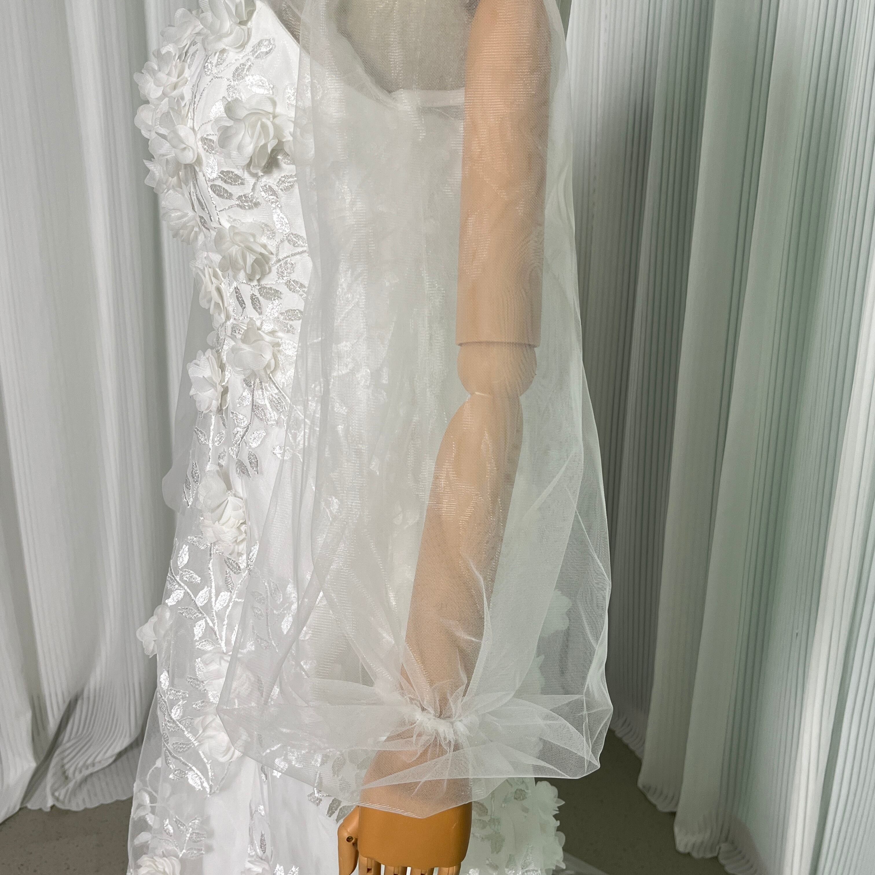 輝きな光彩を放つ ウエディングドレス ベアトップ オフホワイト 花モチーフ マタニティ ドレス 花嫁 結婚式/前撮り