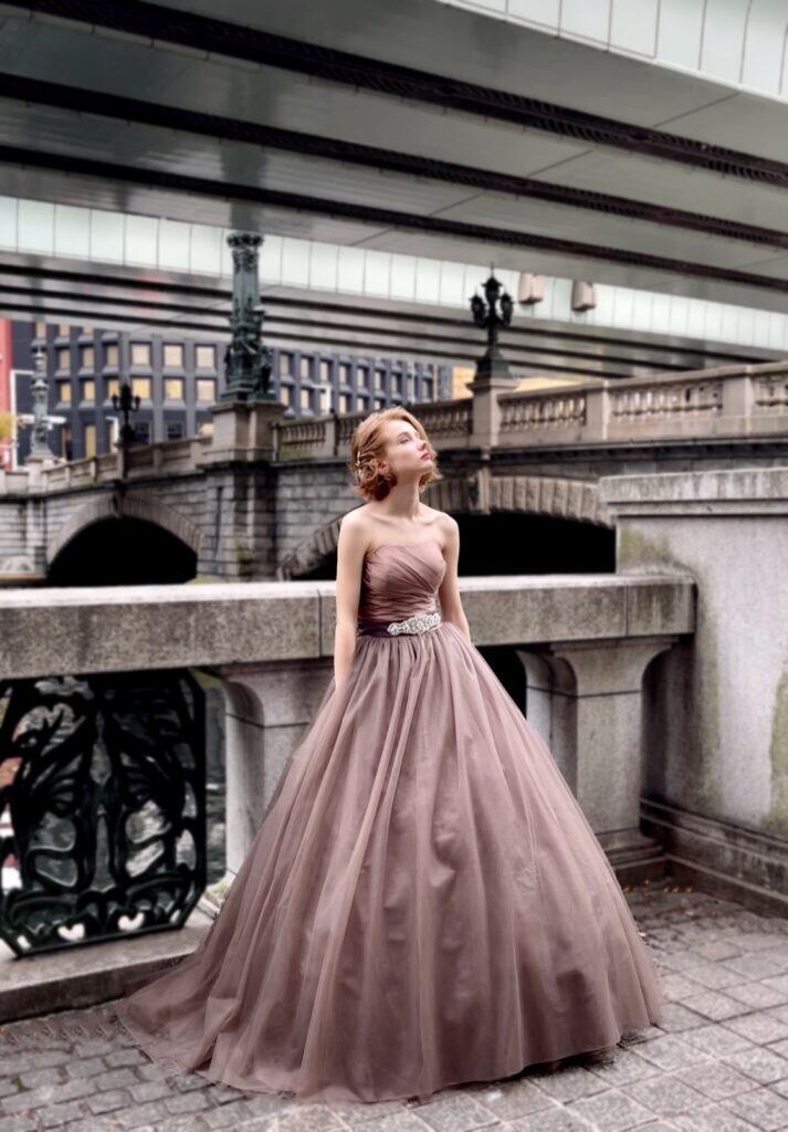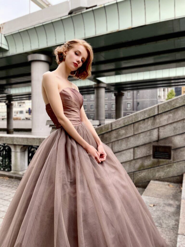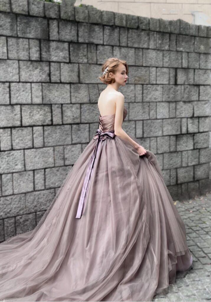 美品!ブラウン/コーヒー色 カラードレス ビスチェドレス チュールドレス ロングトレーン コンサート フォトウェディング パーティードレス 前撮り【オーダーメイド】 | David1021k Dress(ダヴィドレス)
