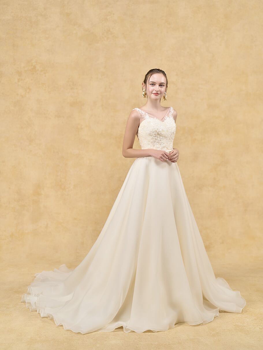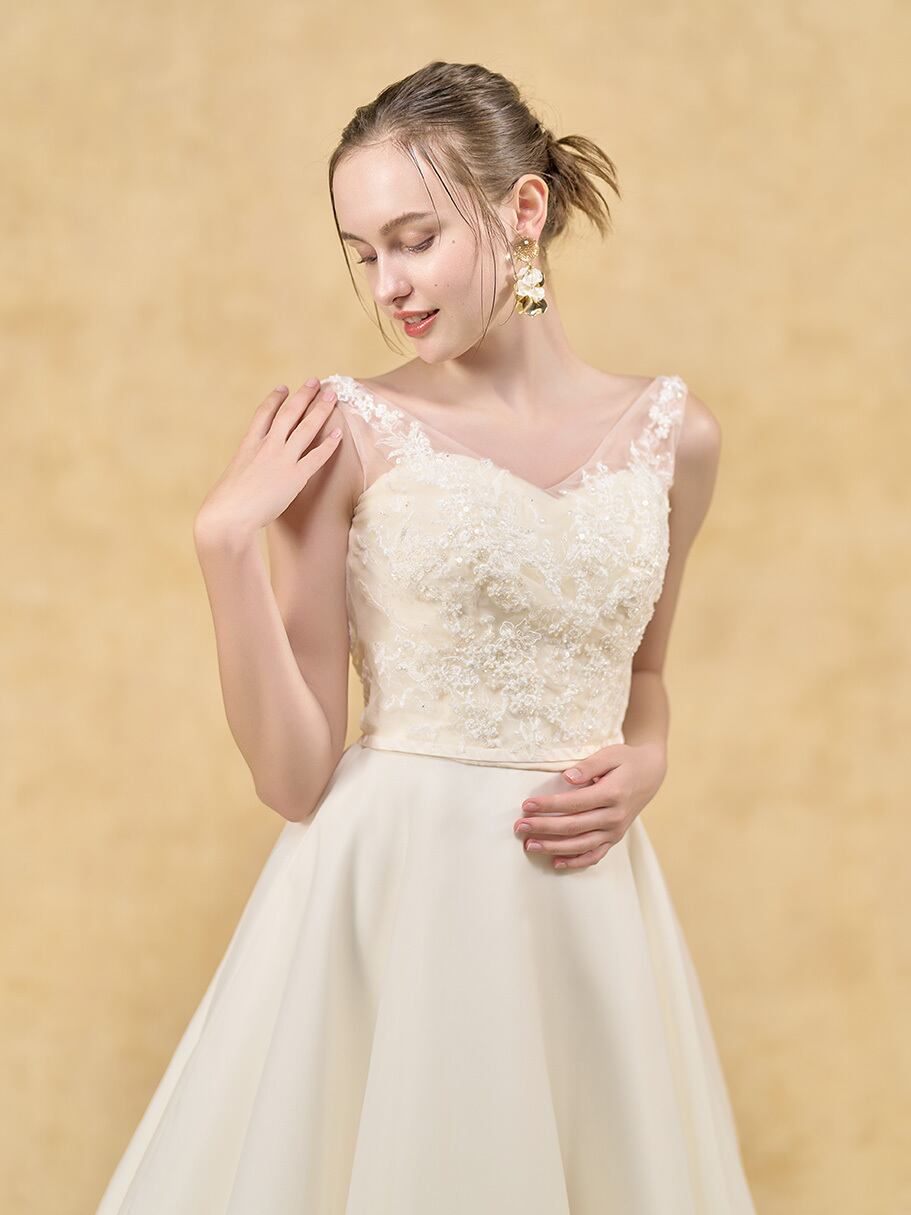 上品!ノースリーブ 2WAYウエディングドレス 繊細レースボレロ バックリボン トップス スレンダーライン シルクドレス エンパイアライン 花嫁/前撮り/春婚【オーダーメイド】 | David1021k Dress(ダヴィドレス)