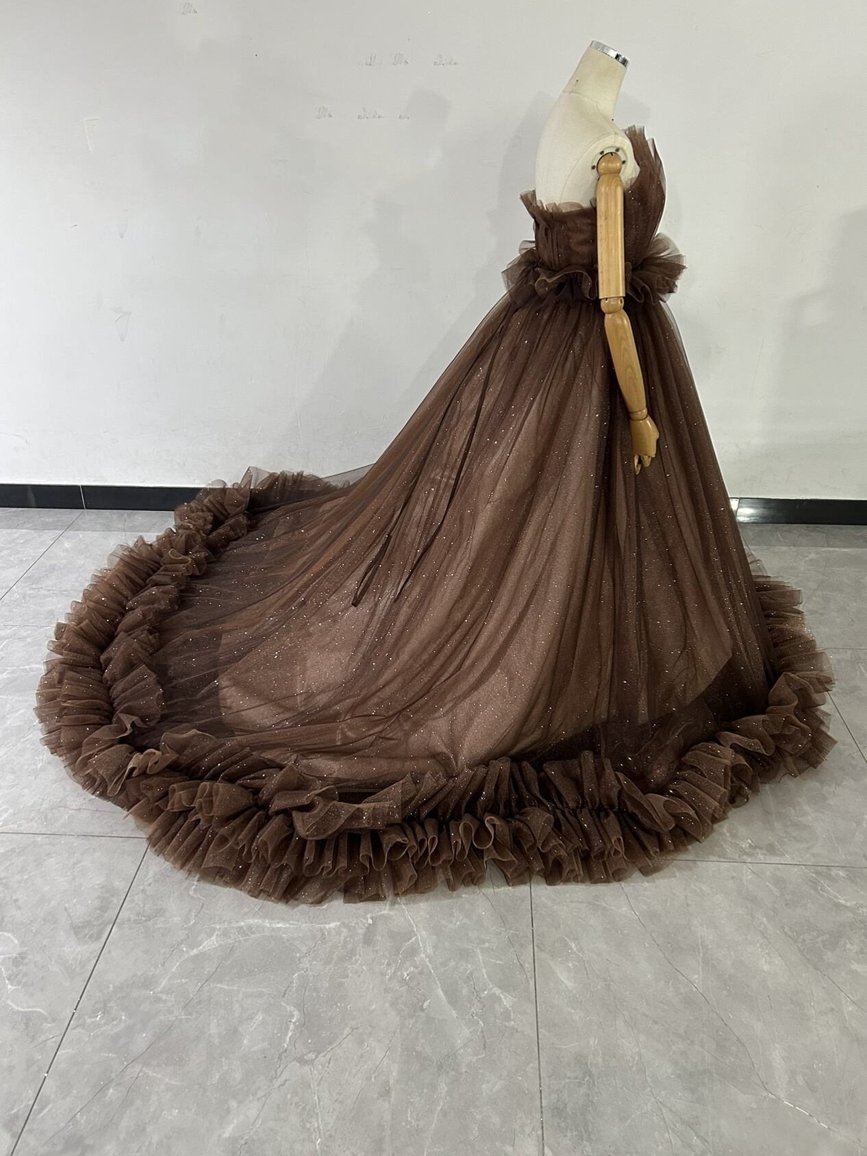 送料無料!コーヒーの色 キラキラチュール カラードレス ソフィア ソフトチュール 前撮り 結婚式披露宴