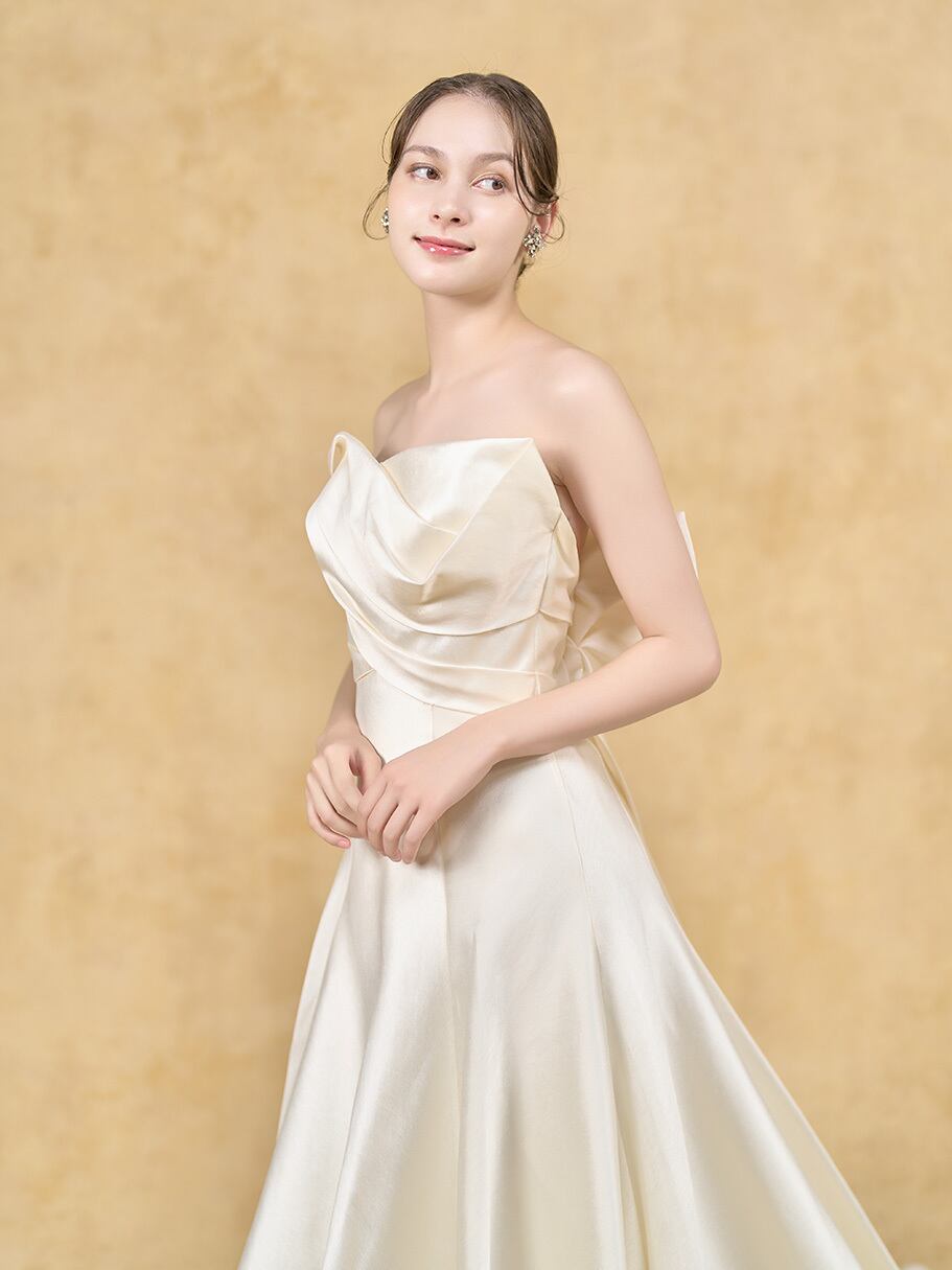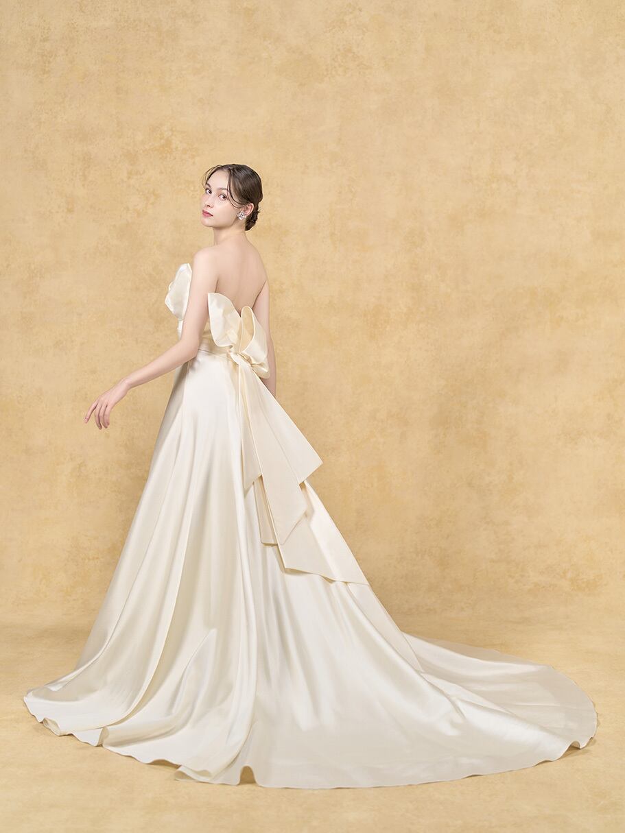 上品!取り外しバックリボン ウエディングドレス Aラインドレス 優雅なシルエット スレンダーライン 花嫁/前撮り/春婚【オーダーメイド】